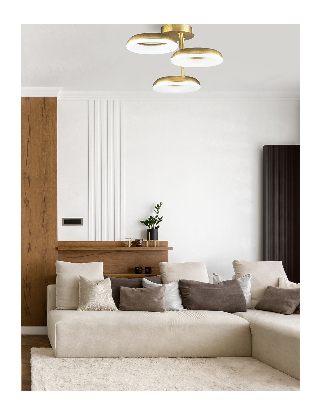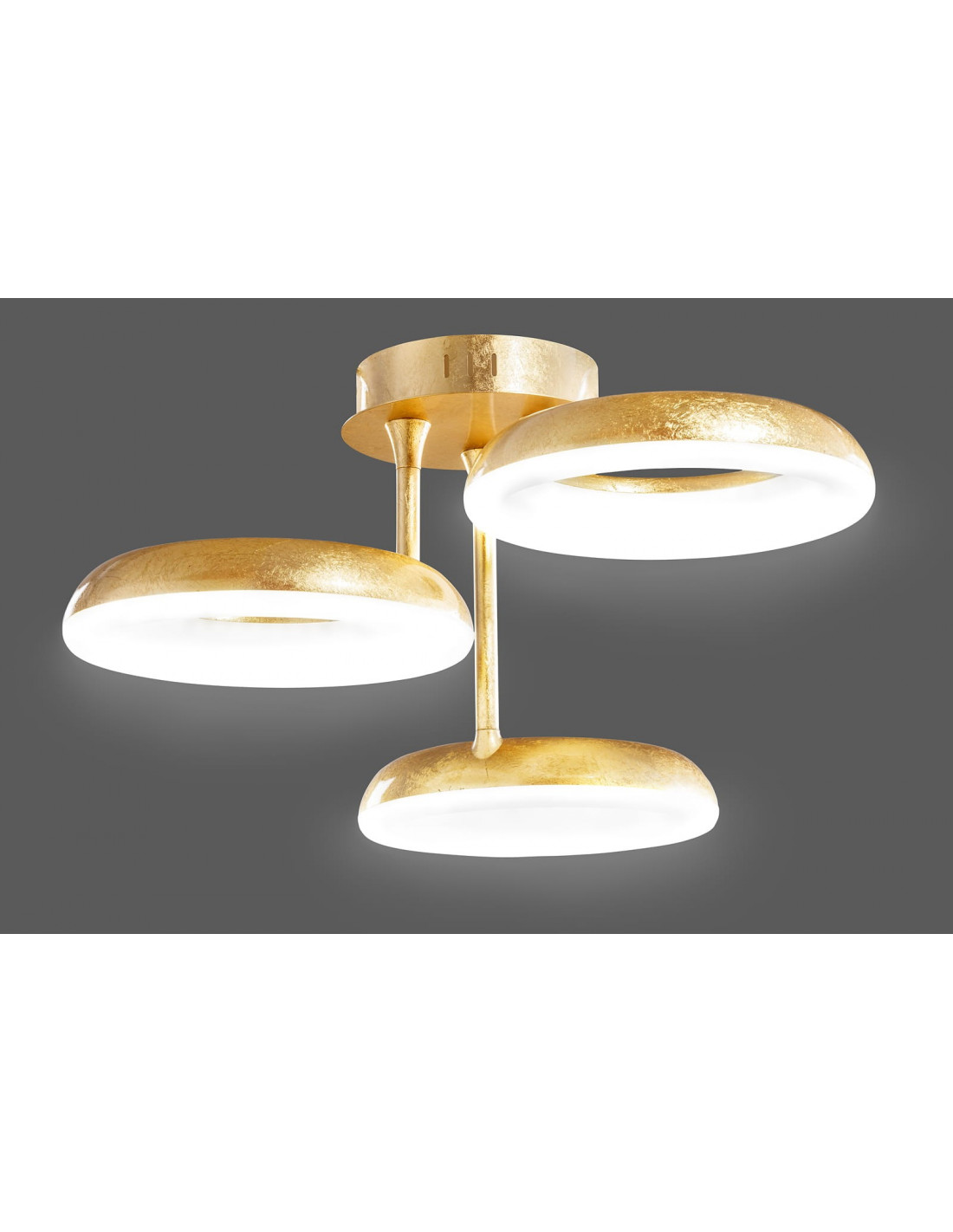 Szukasz oszałamiającego rozwiązania oświetlenia w Twoim wnętrzu ? Nasza nowość ROMA to idealny i trafiony wybór. Niesamowity plafon złożony z trzech kloszy, w którym umieszczone jest zintegrowane źródło światła LED. W całości wykonana z metalu oraz nałożonych na niego płatków złota patynowego i właśnie dlatego to propozycja nie do odrzucenia.