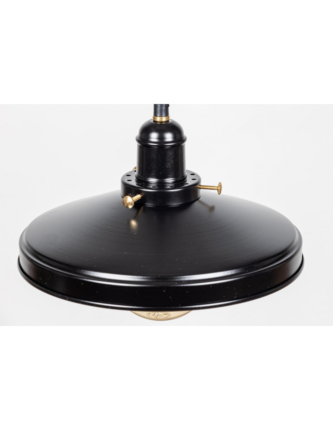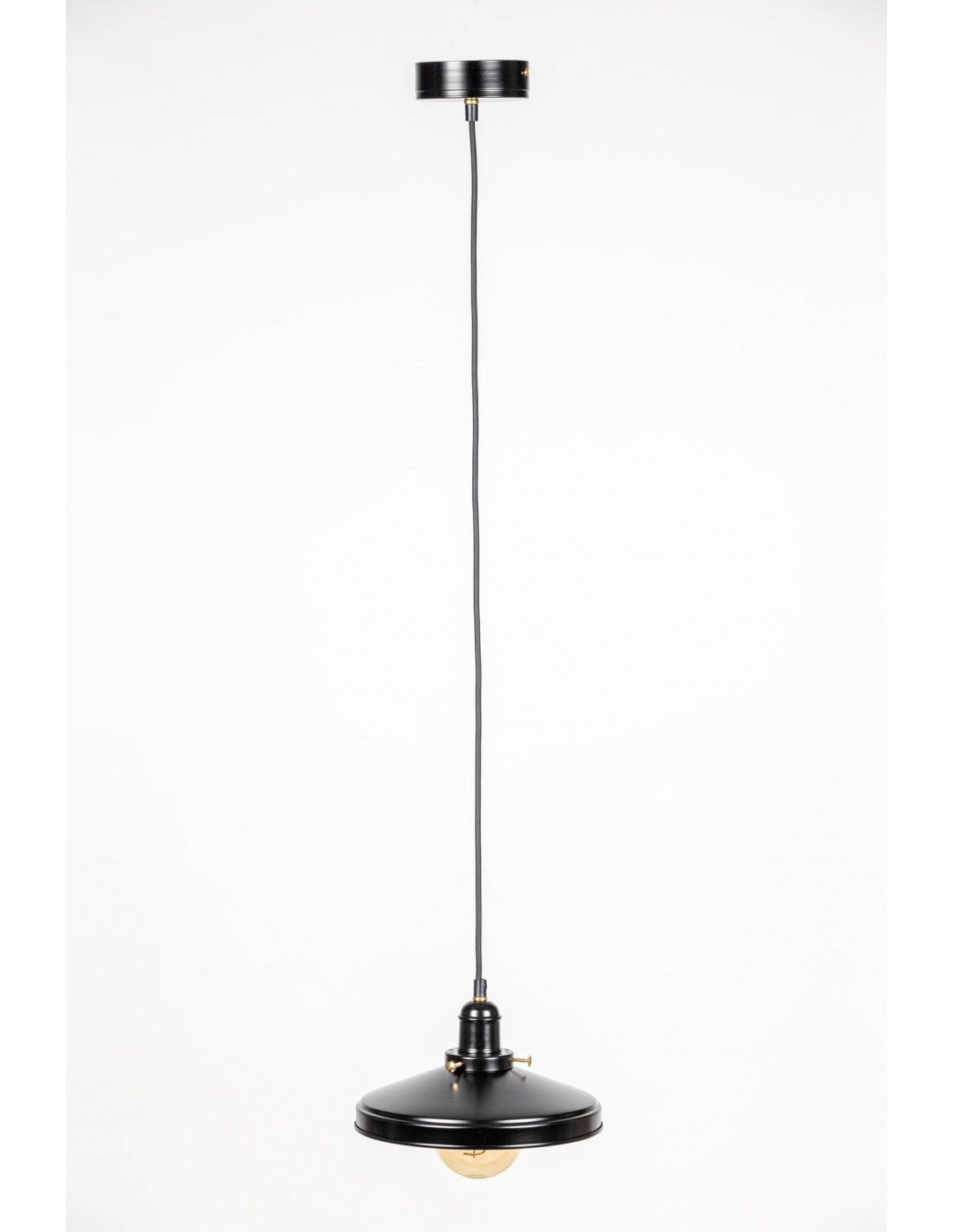 Lampa industrialno-loftowa TB/SPS/TPD wykonana jest w całości ze stali.Klosz i podsufitka zostały połączone kablem czarnym w bawełnianym oplocie.By uzyskać efekt taki jak widzimy,blacha została poddana ręcznemu wyoblaniu.Całość lampy została pomalowana w kolorze półmatu czarnego i uzupełniona elementami z mosiądzu.  Regulacja wysokości na kablu góra/dół.Oprawka schowana w podkloszówce na duży gwint.