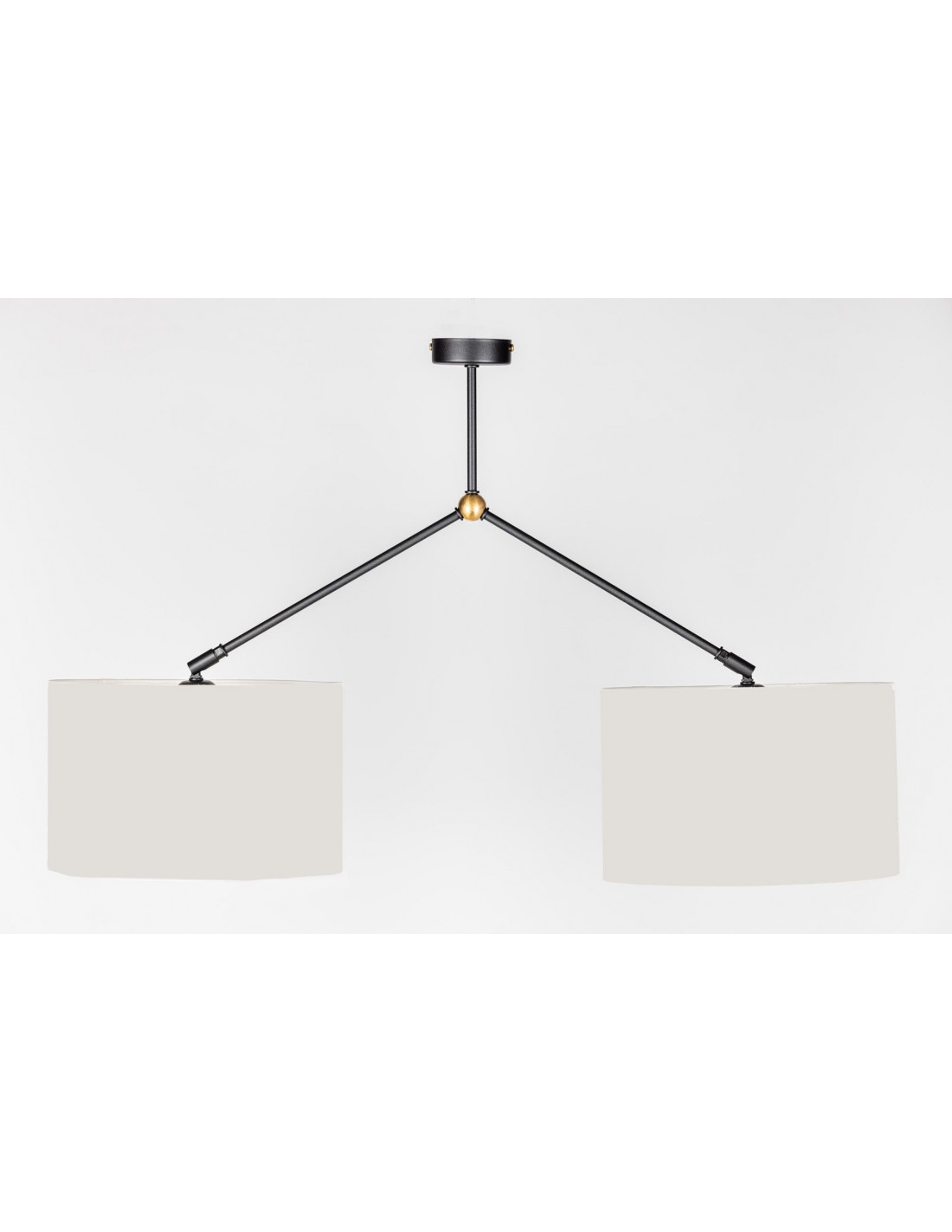 Lampa wisząca DENISA 2PKT wyposażona została w okrągłą podsufitkę, z której wychodzi jedna prosta rurka zakończona kulą z mosiądzu a z niej dwa symetryczne ramiona zakończone przegubem obrotowo-kątowym, które umożliwiają  finezyjnie ustawienia abażurów. Takie rozwiązanie sprawi, że lampa wypełni Twoje wnętrze łagodnie rozproszonym światłem, jednocześnie stając się ciekawie wyglądającym akcentem w pokoju,kuchni. Lampa ta  spisze się wyśmienicie zawieszona w centralnym punkcie Twojego wnętrza.