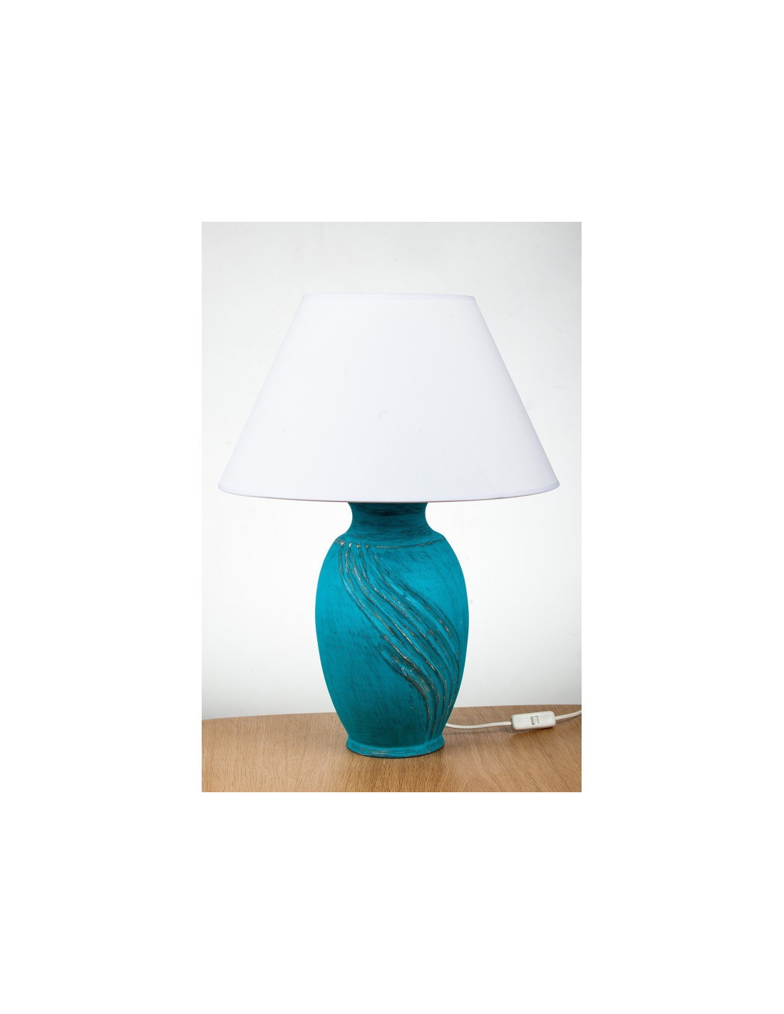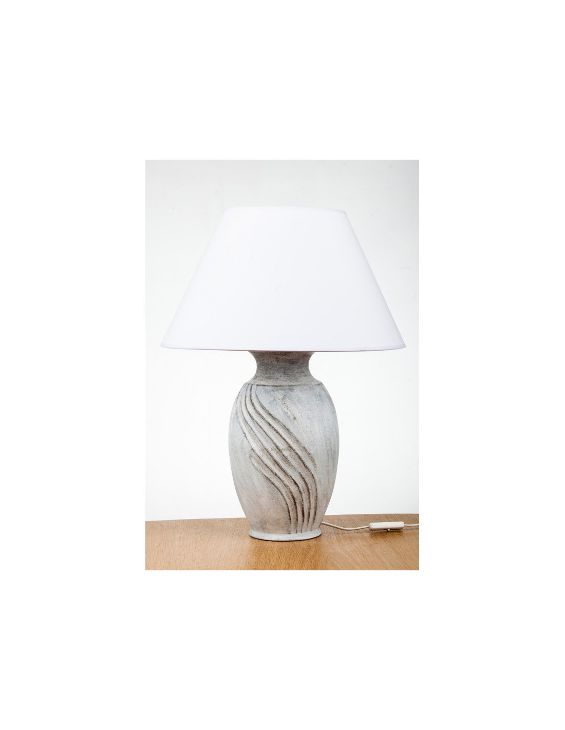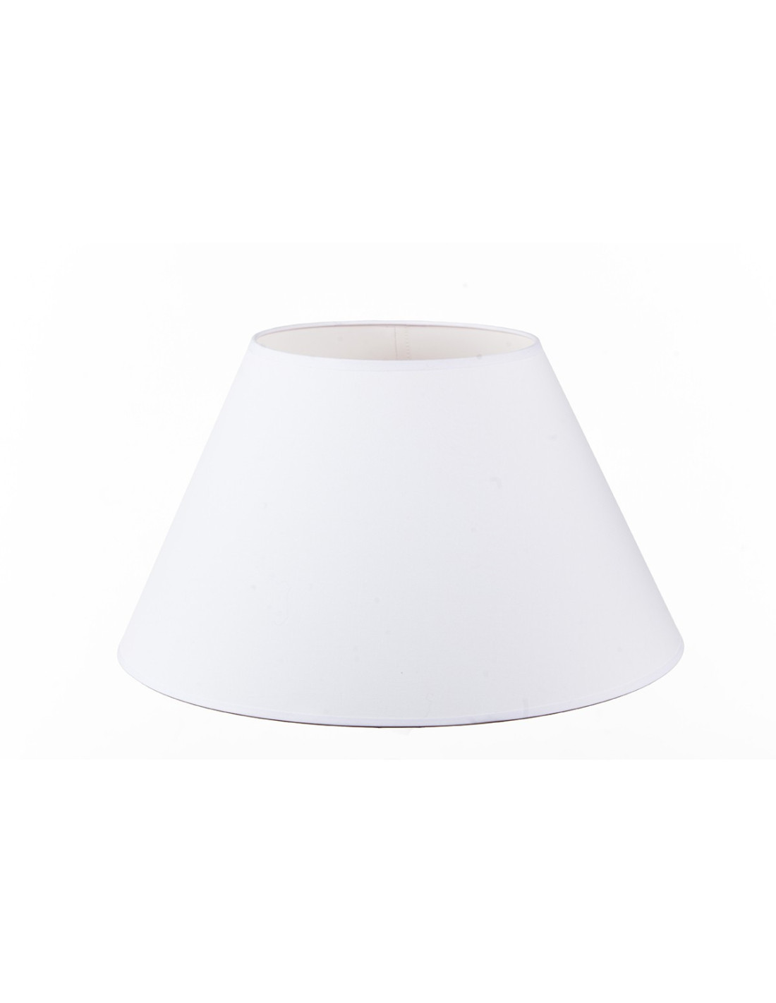 Abażur materiałowy len biały z rodziny stożków, podklejony białą folią pcw szyty ręcznie. Zastosowanie:większe lampy ceramiczne lub lampy stojące.