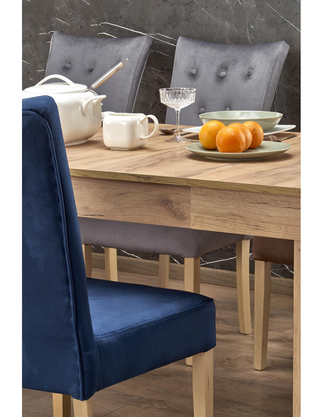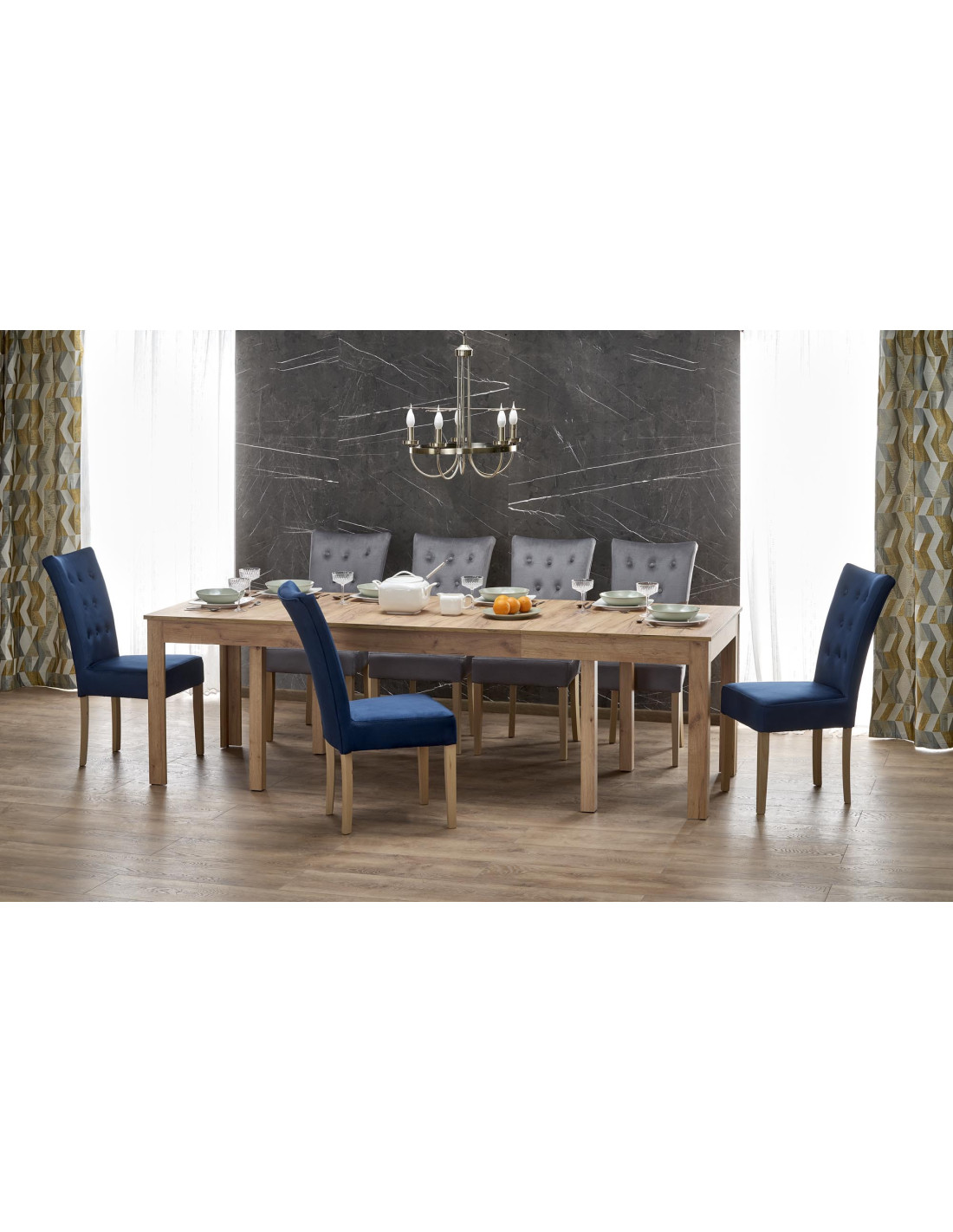 Stół SEWERYN wyposażony jest w innowacyjny mechanizm rozkładania, który pozwala na łatwe dostosowanie jego długości od 160 cm do imponujących 298 cm. Dzięki trzem wkładkom, które można schować wewnątrz stołu, stół staje się niezwykle praktyczny - doskonały zarówno na codzienne posiłki, jak i na większe spotkania z bliskimi.