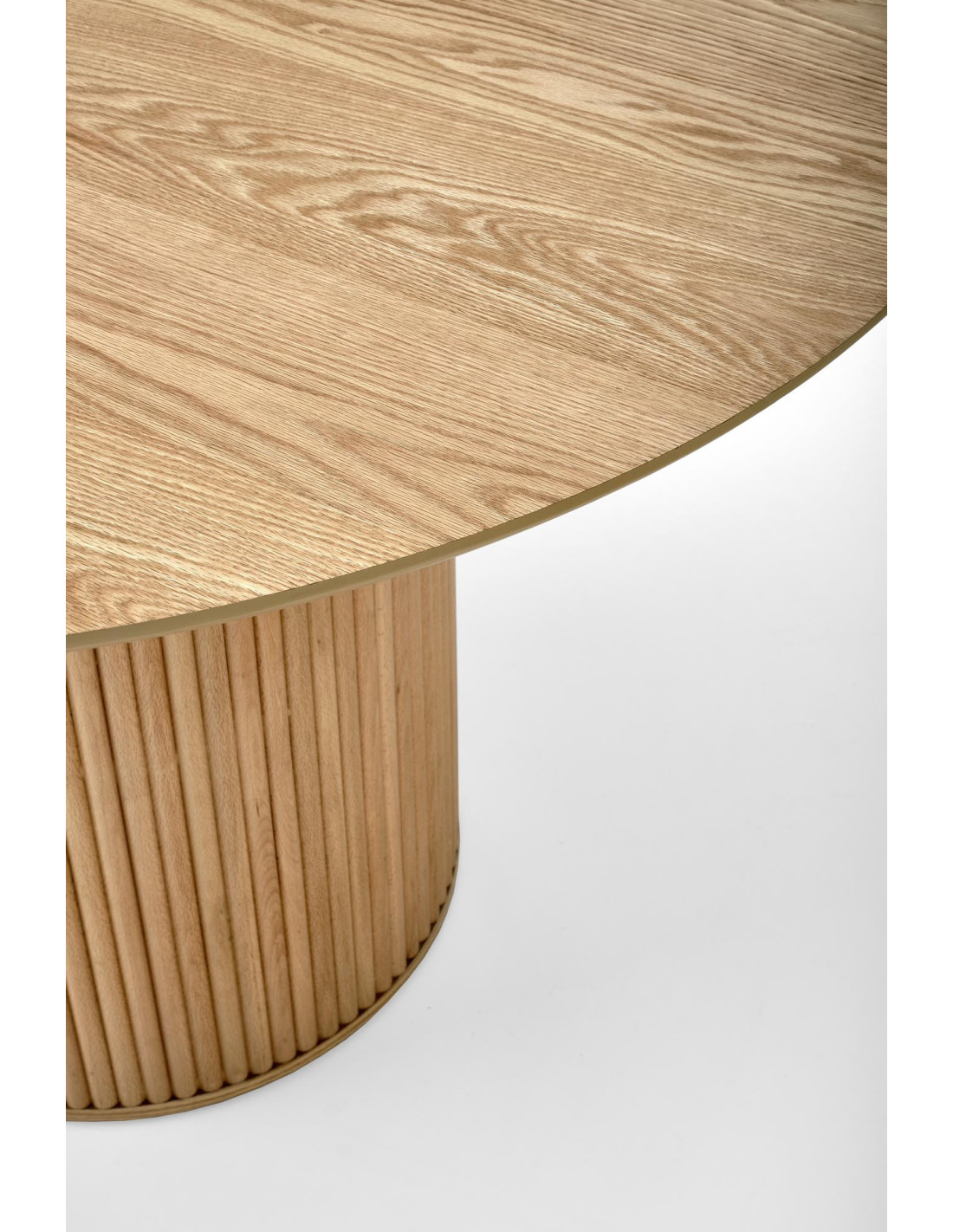 LOPEZ Stół Okrągły Fi120cm z Walcową Ryflowaną Podstawą Kolor Dąb Naturalny – Elegancja i Funkcjonalność