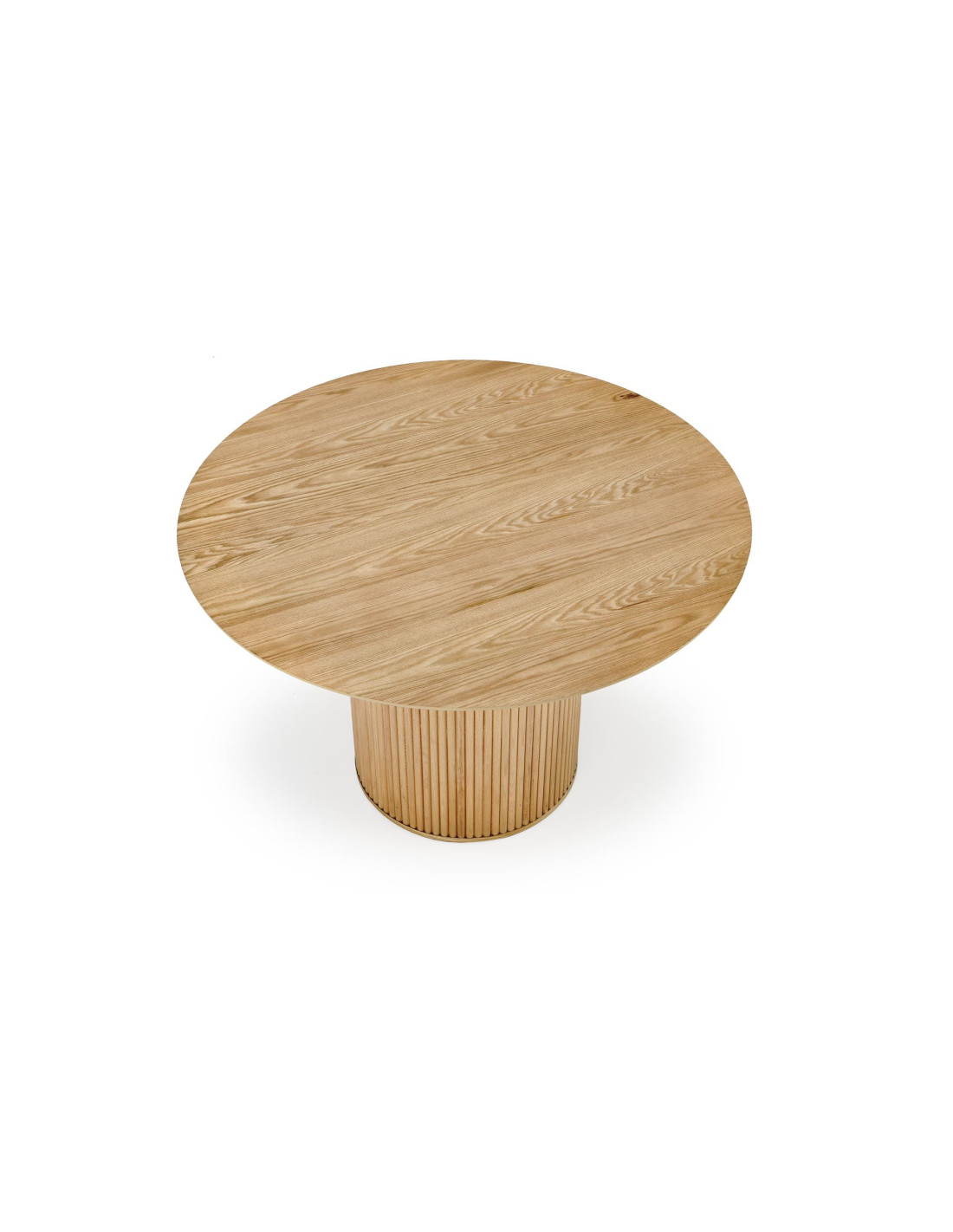 LOPEZ Stół Okrągły Fi120cm z Walcową Ryflowaną Podstawą Kolor Dąb Naturalny
