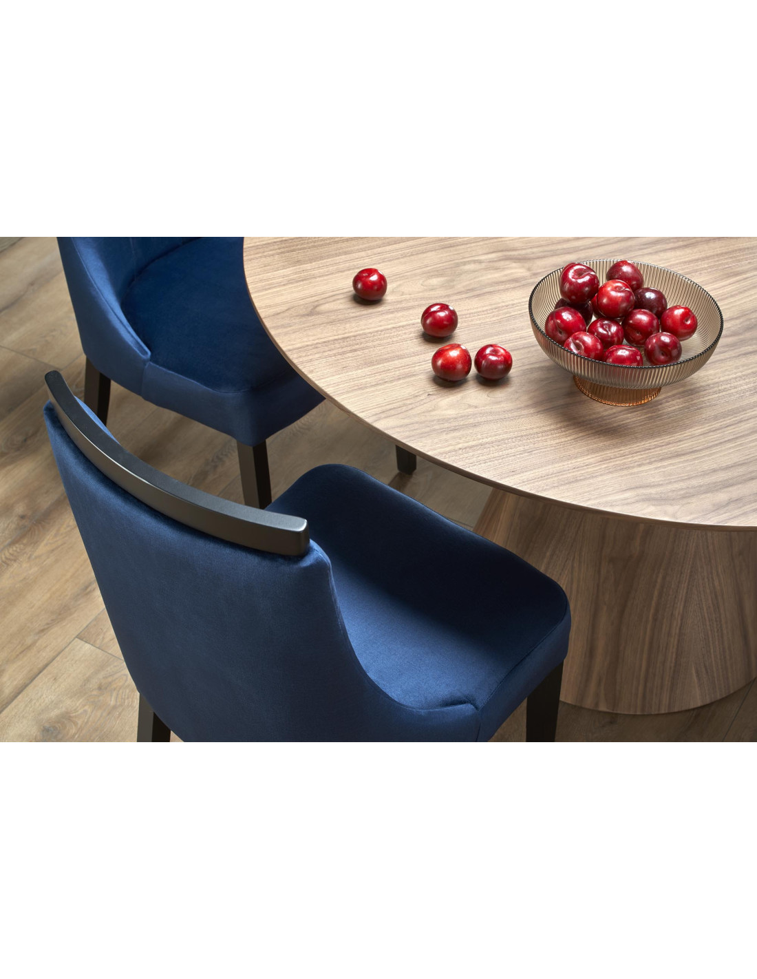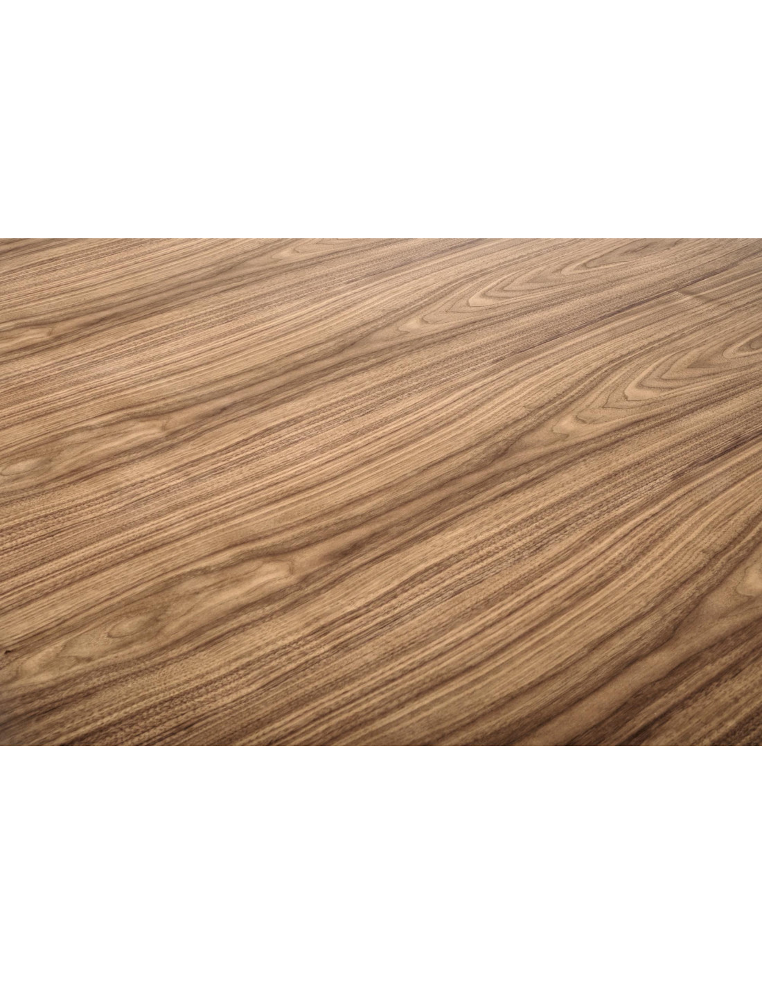 Stół wykonany jest z MDF pokrytego okleiną naturalną w kolorze orzechowym.