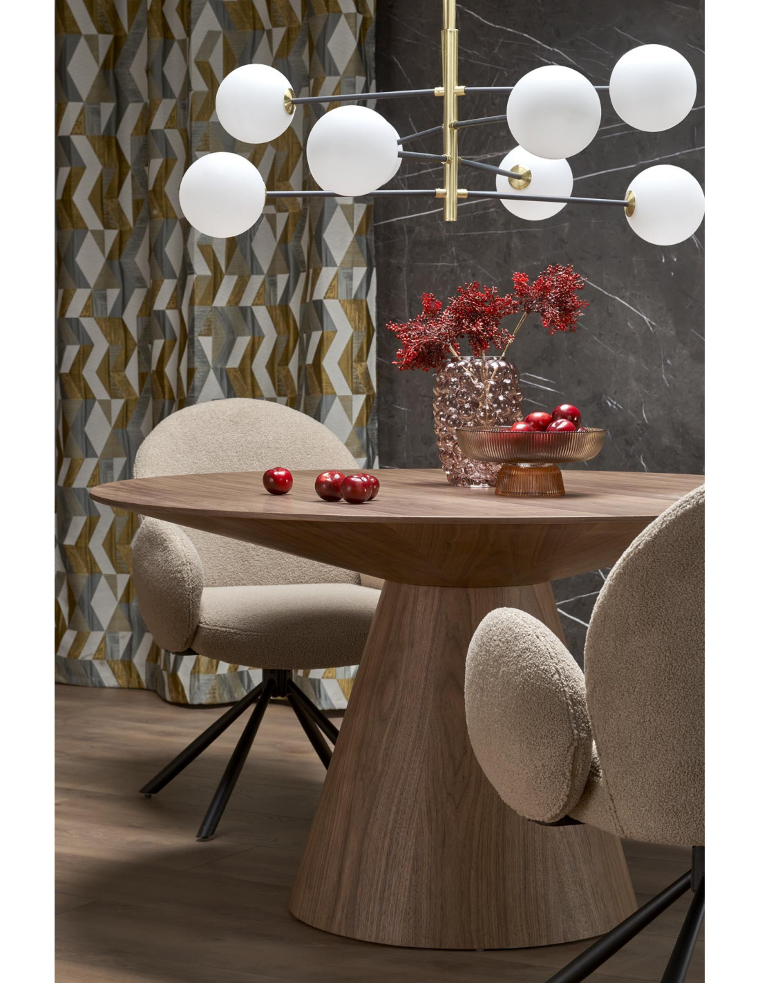 HENDERSON Stół Okrągły Fi136cm Orzechowy ze Stożkową Podstawą - Gustowny