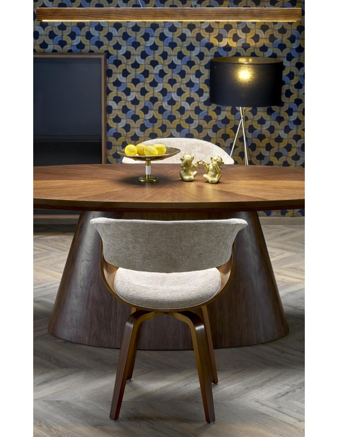 Stwórz doskonałe wnętrze z eleganckim stołem VAGNER, który łączy nowoczesny design z praktycznością. Ten owalny stół wykonany z MDF z naturalną okleiną w kolorze orzechowym to idealna propozycja do współczesnych przestrzeni mieszkalnych. Prostota formy oraz stożkowata stalowa noga sprawiają, że stół prezentuje się wyjątkowo stylowo, a jednocześnie jest funkcjonalny.