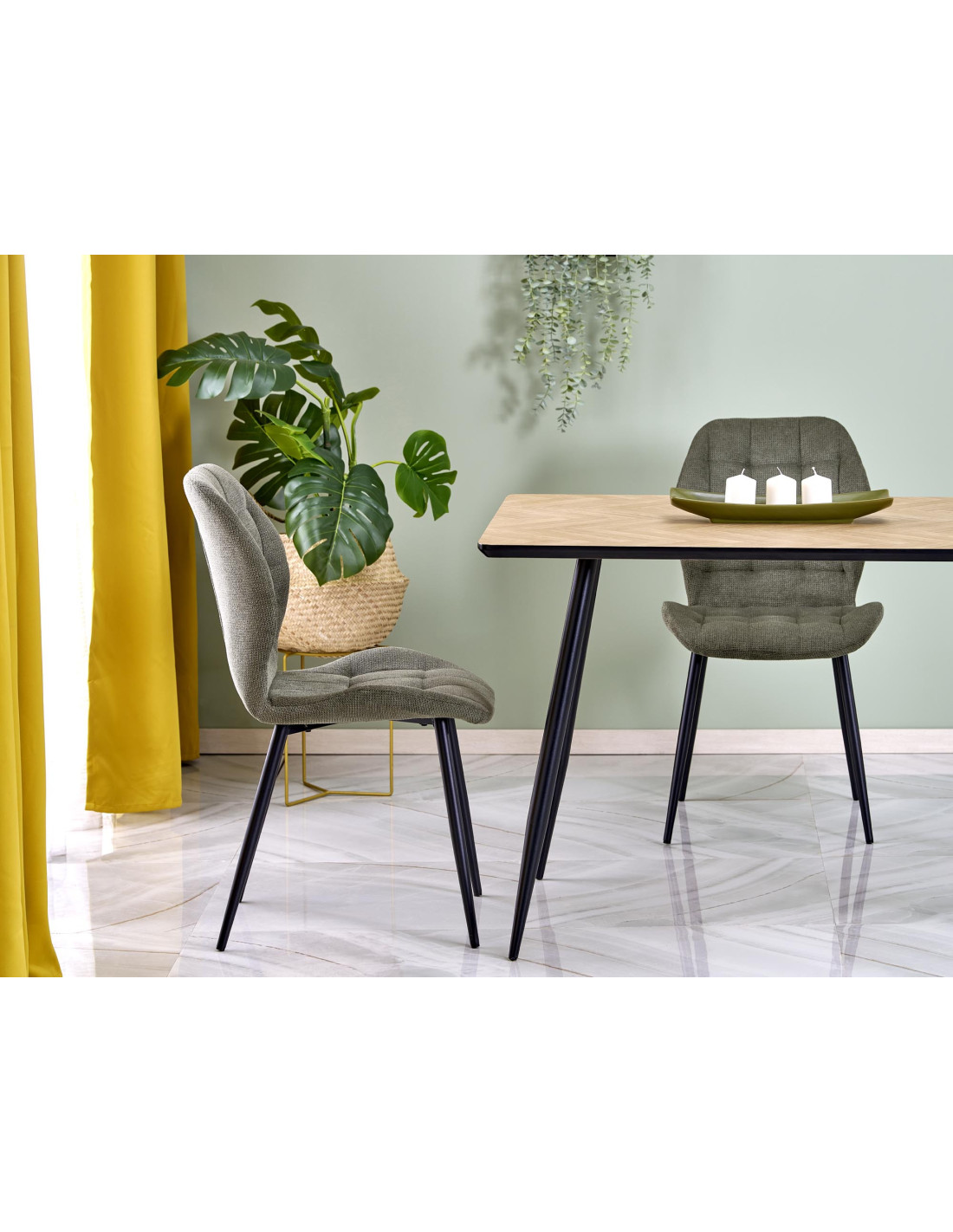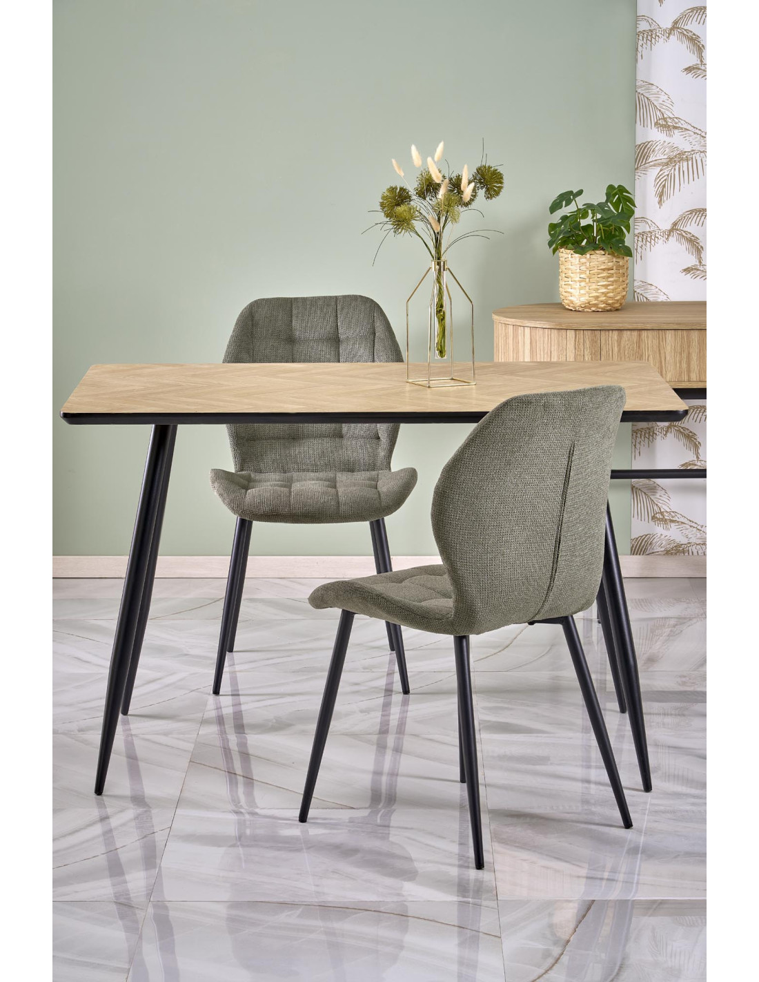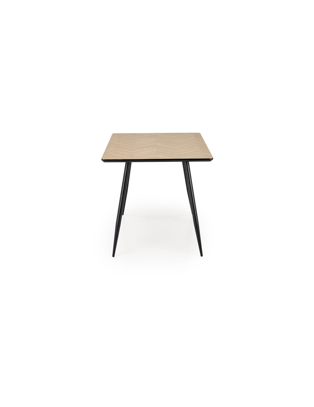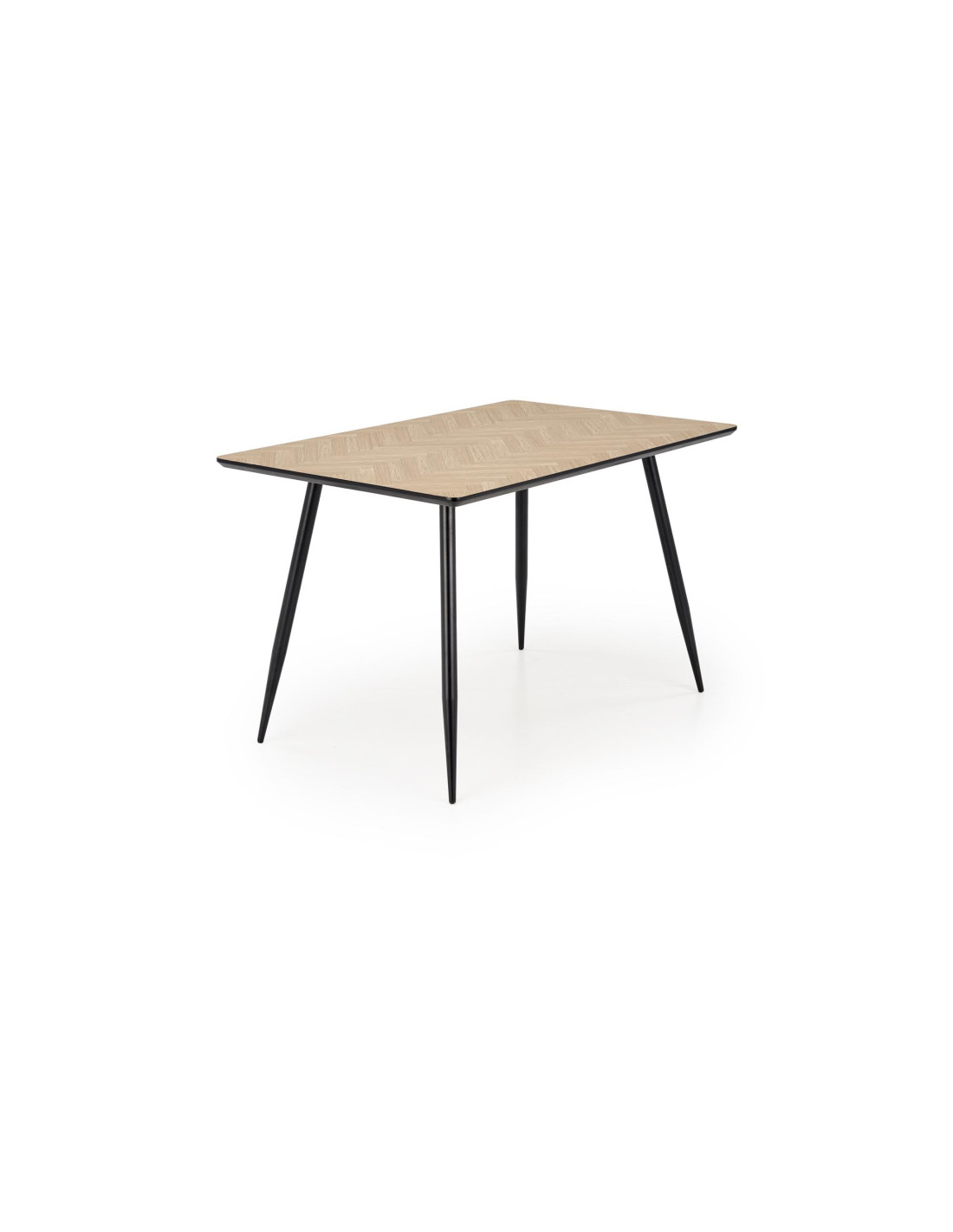 Sprawdź prostokątny stół BERTO, który doda Twojemu wnętrzu elegancji i klasyki. Blat wykonany z MDF okleinowanego w naturalnym kolorze z jodełkowym wzorem przyciąga wzrok i wprowadza ciepło do każdego pomieszczenia. Nogi ze stali w czarnym kolorze nadają mu nowoczesnego charakteru, tworząc idealne połączenie stylu i funkcjonalności.