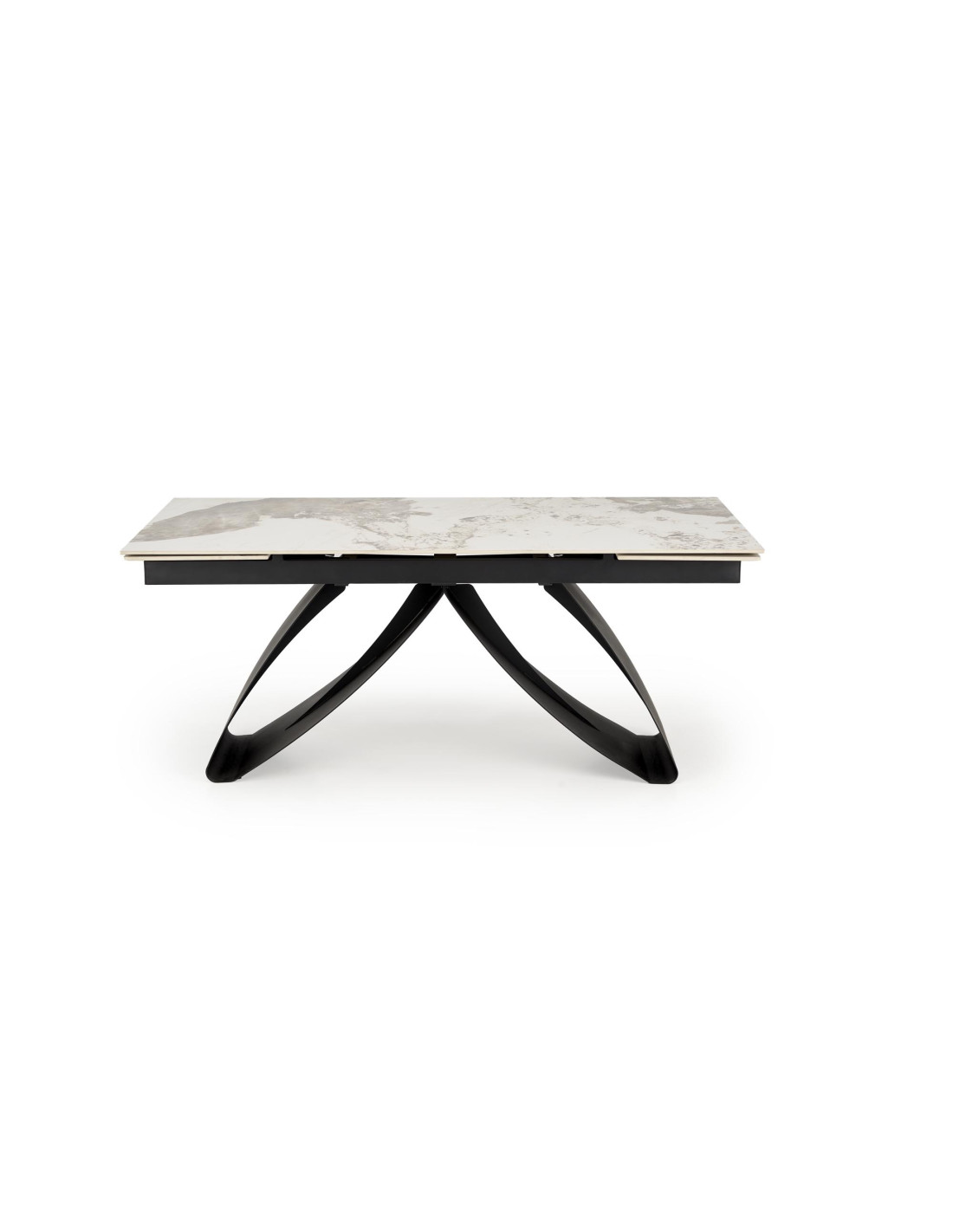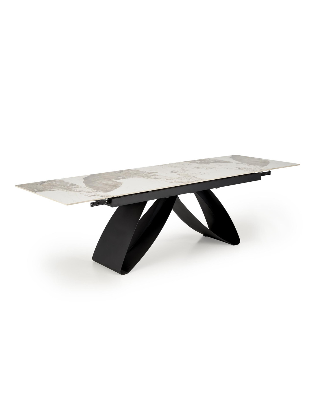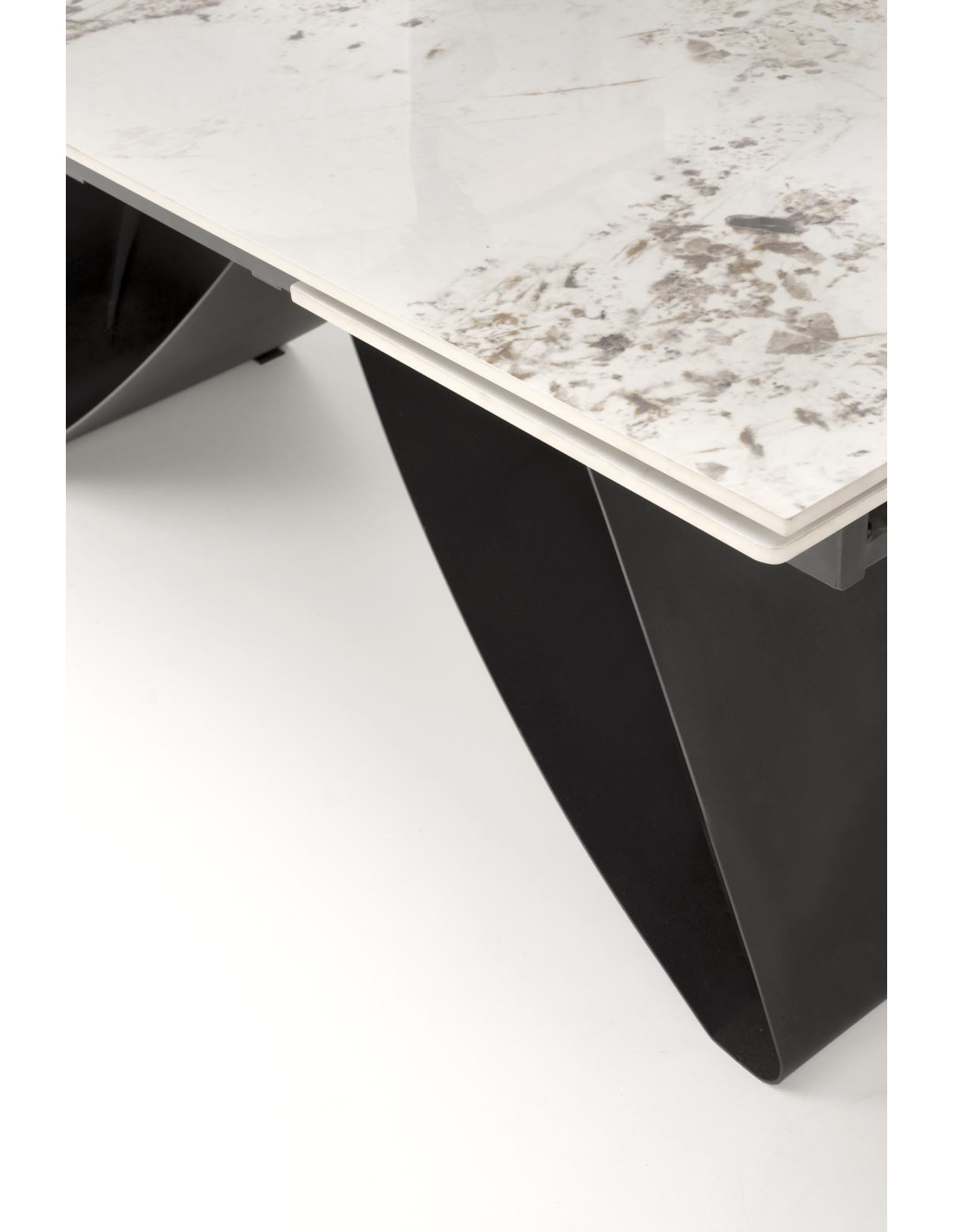 HILARIO Stół Rozkładany 180-260cm - Biały Marmur i Czarne Stalowe Nogi