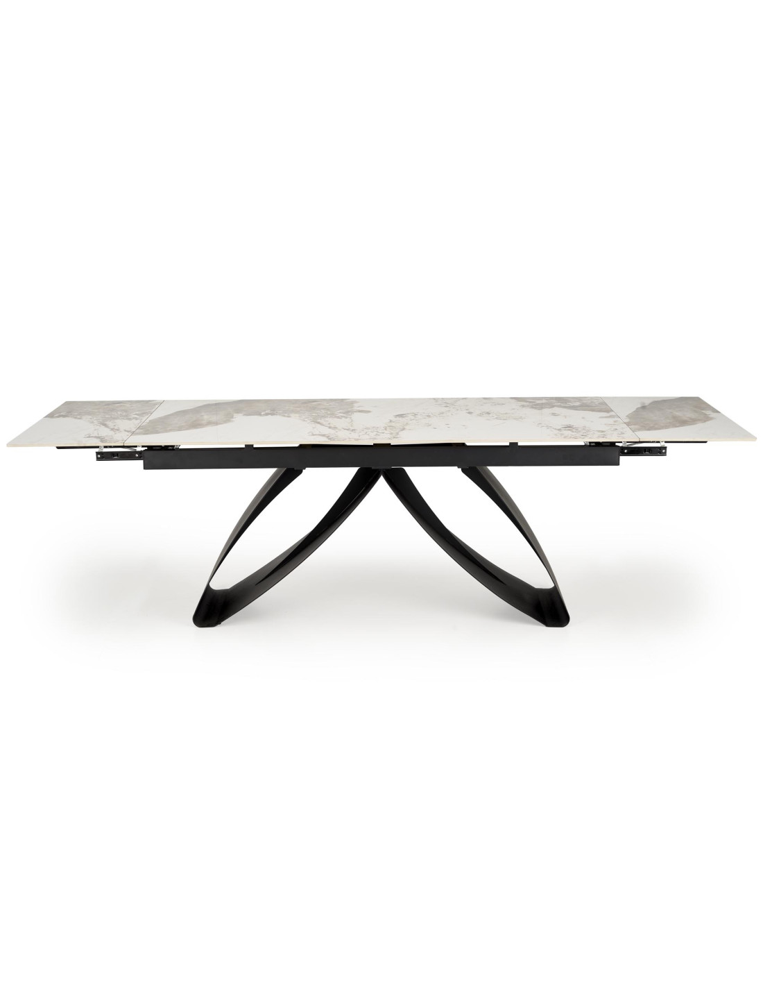 HILARIO Stół Rozkładany 180-260cm Spiek Biały Marmur | Nogi Stalowe Czarne