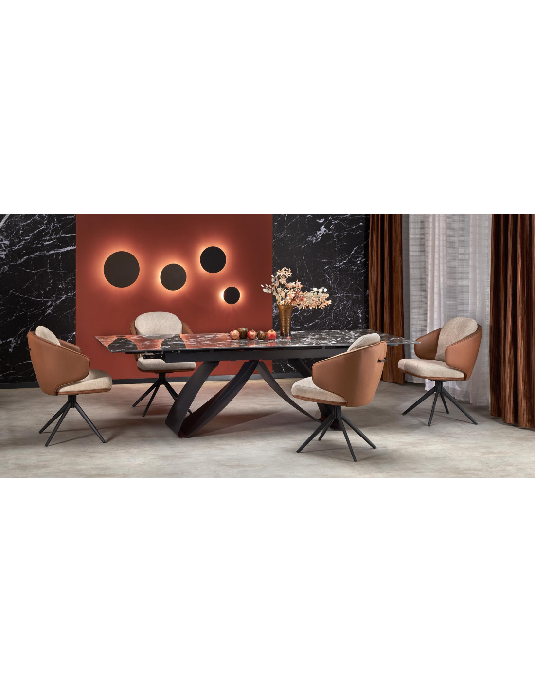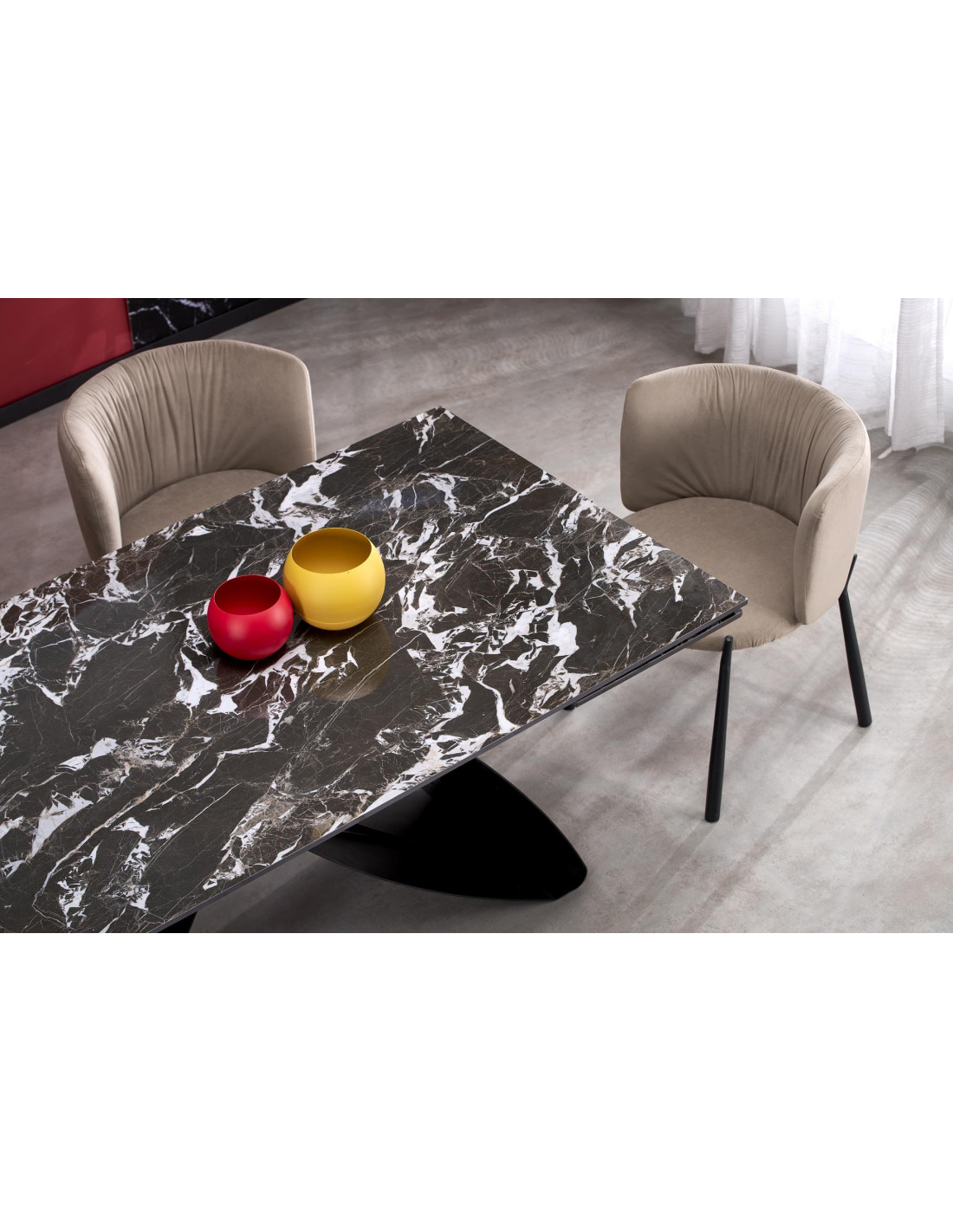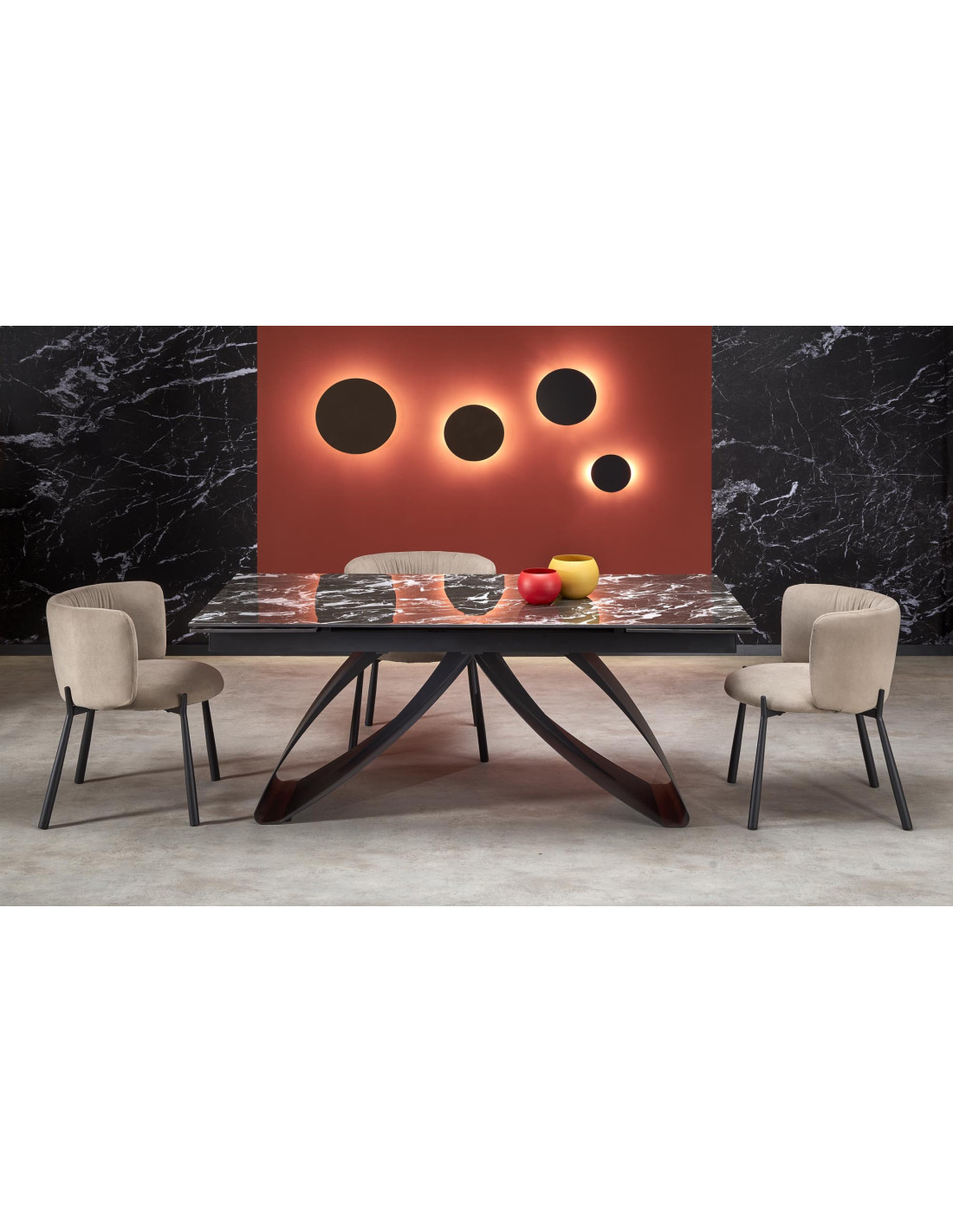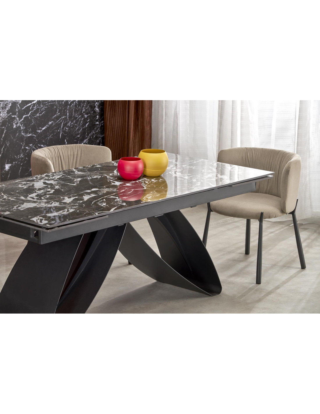 Stół HILARIO wykonany jest z wysokiej jakości spieku oraz stali malowanej proszkowo.
