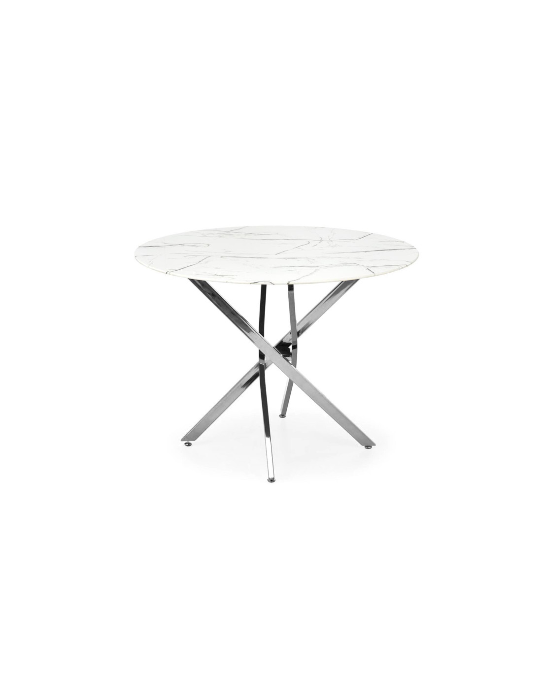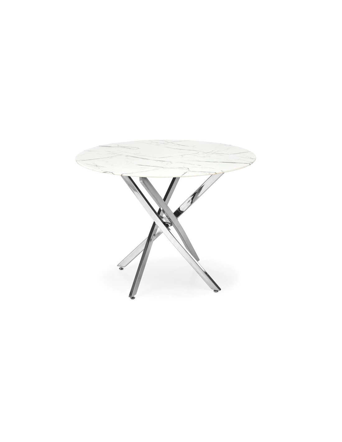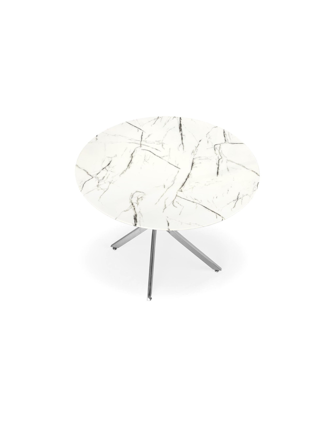 RAYMOND_3 Stół Okrągły Szklany fi100 cm Blat Biały Marmur Nogi Chromowane