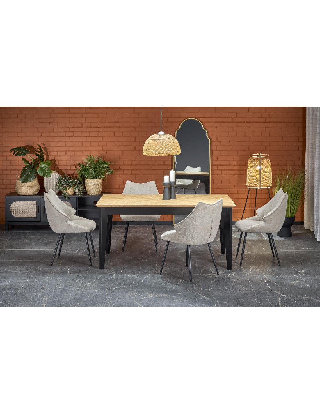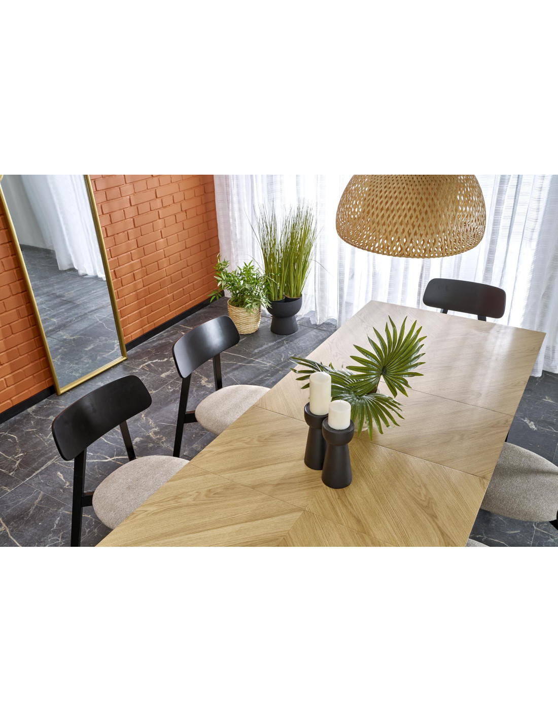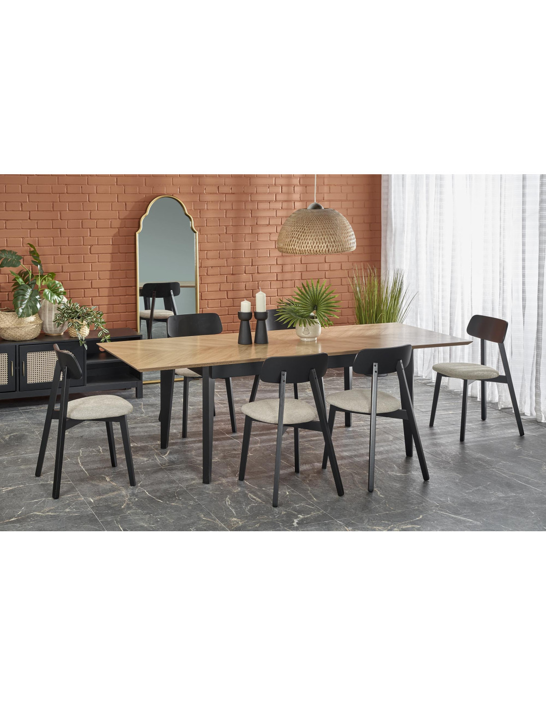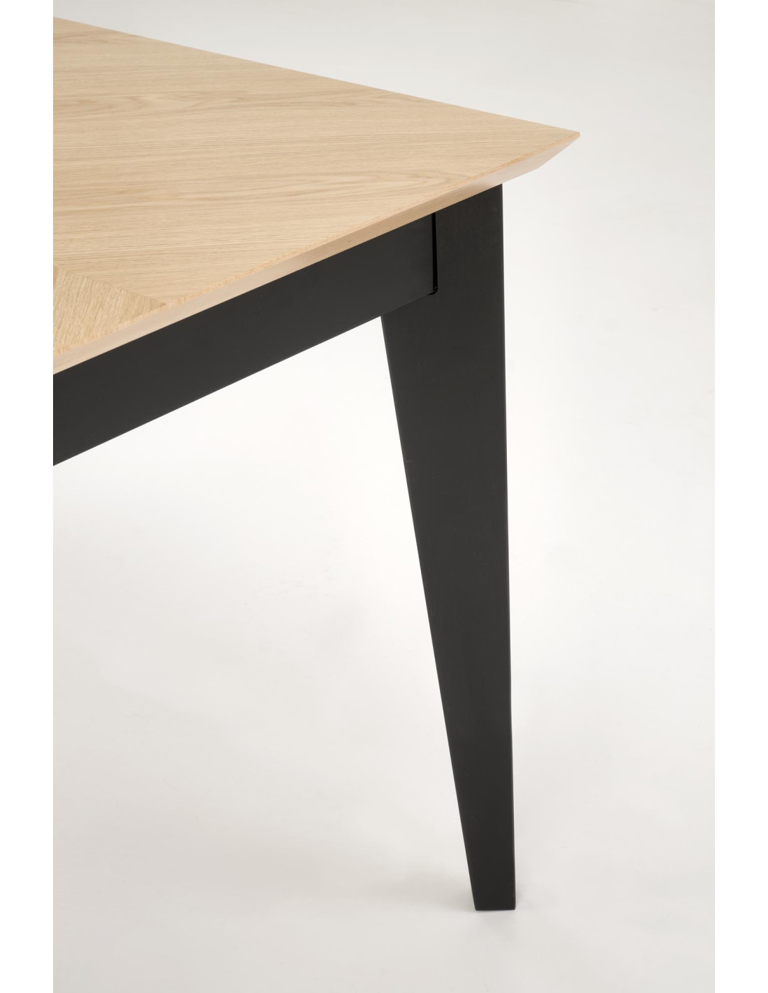 Stół EDMONDO występuje w naturalnym dębie z czarnymi nogami, co czyni go uniwersalnym meblem pasującym do wielu stylów.