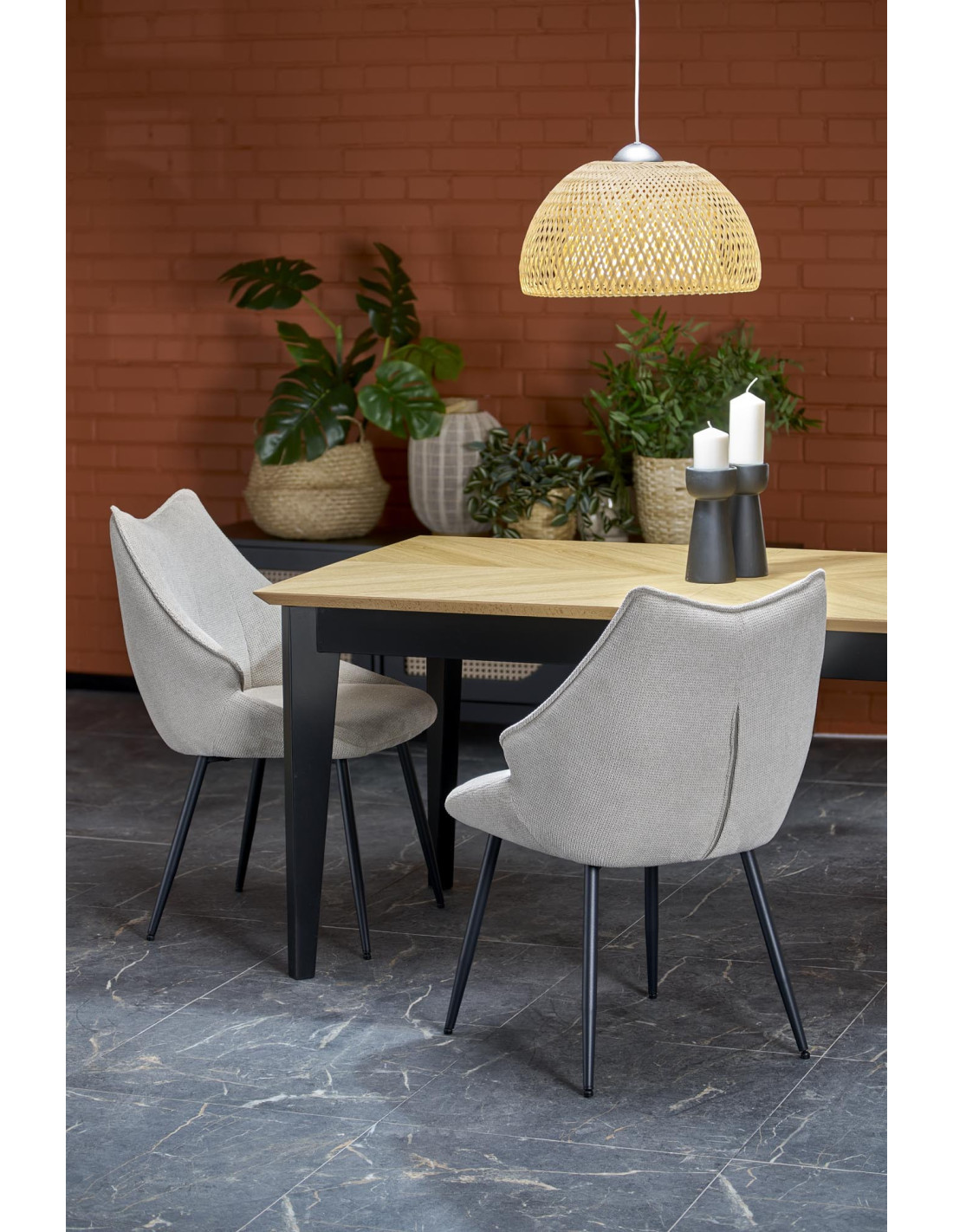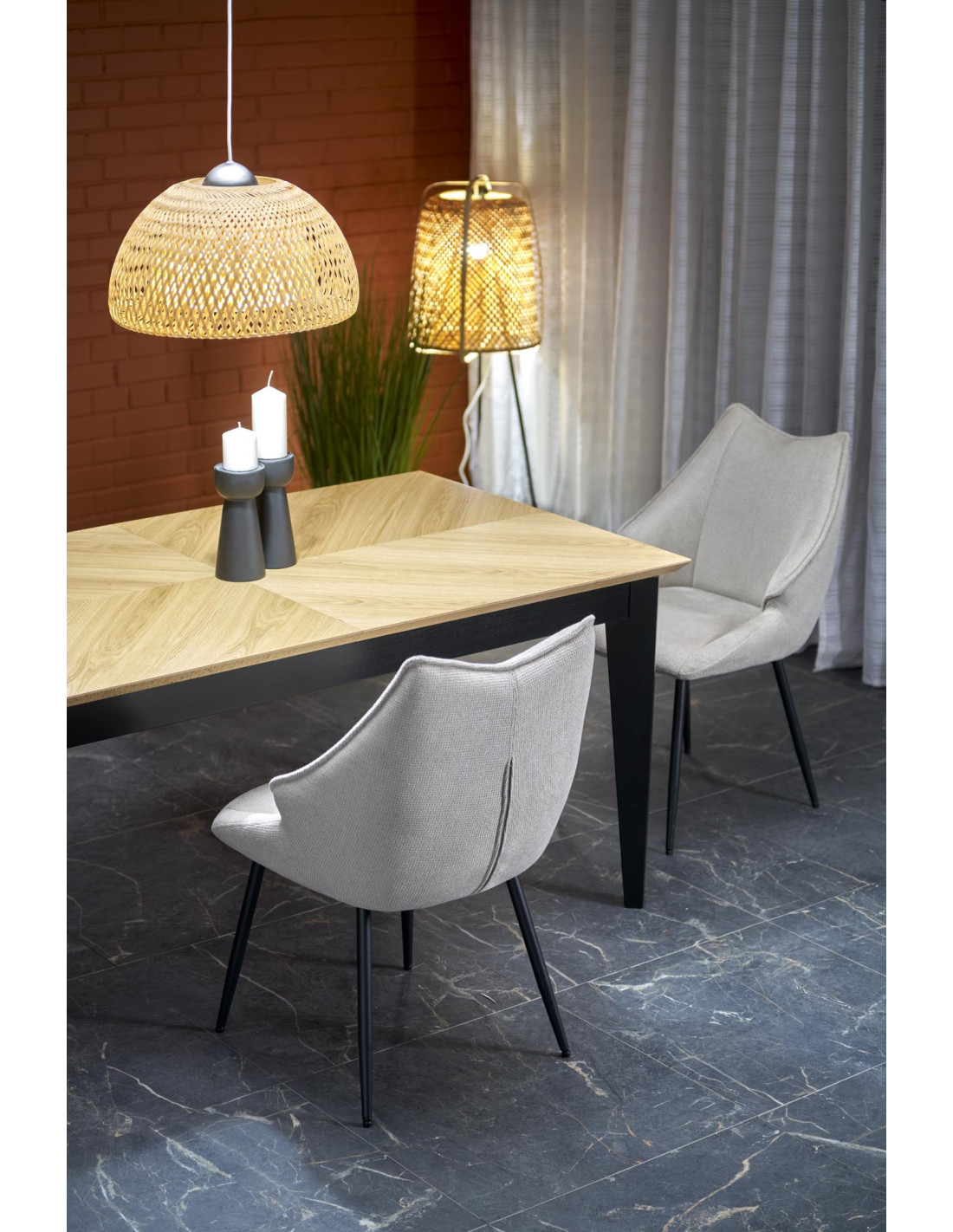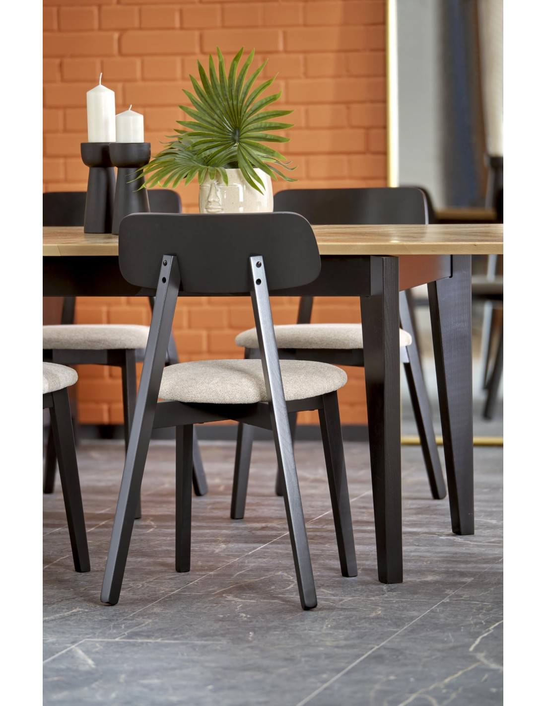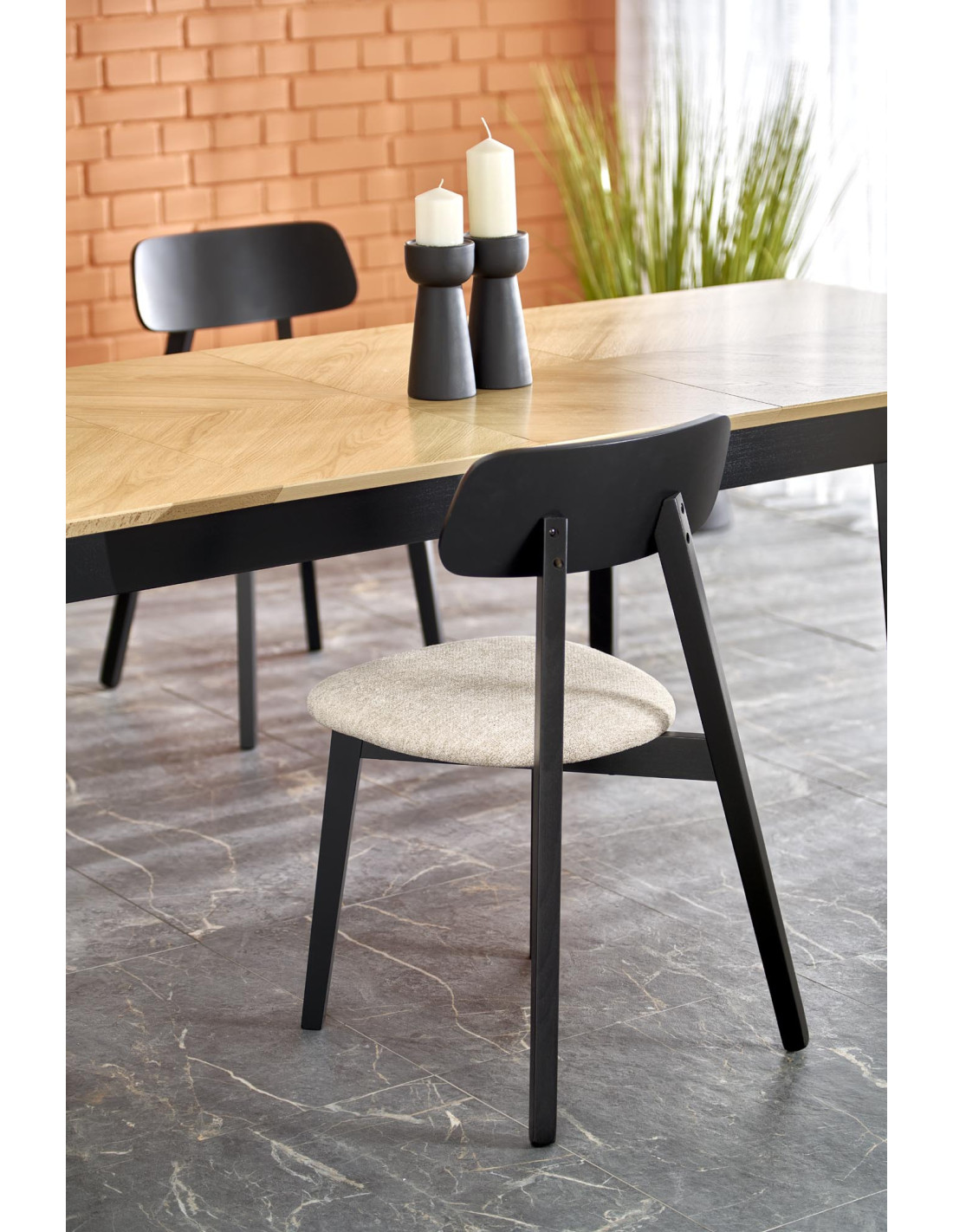 Stół EDMONDO występuje w naturalnym dębie z czarnymi nogami, co czyni go uniwersalnym meblem pasującym do wielu stylów.