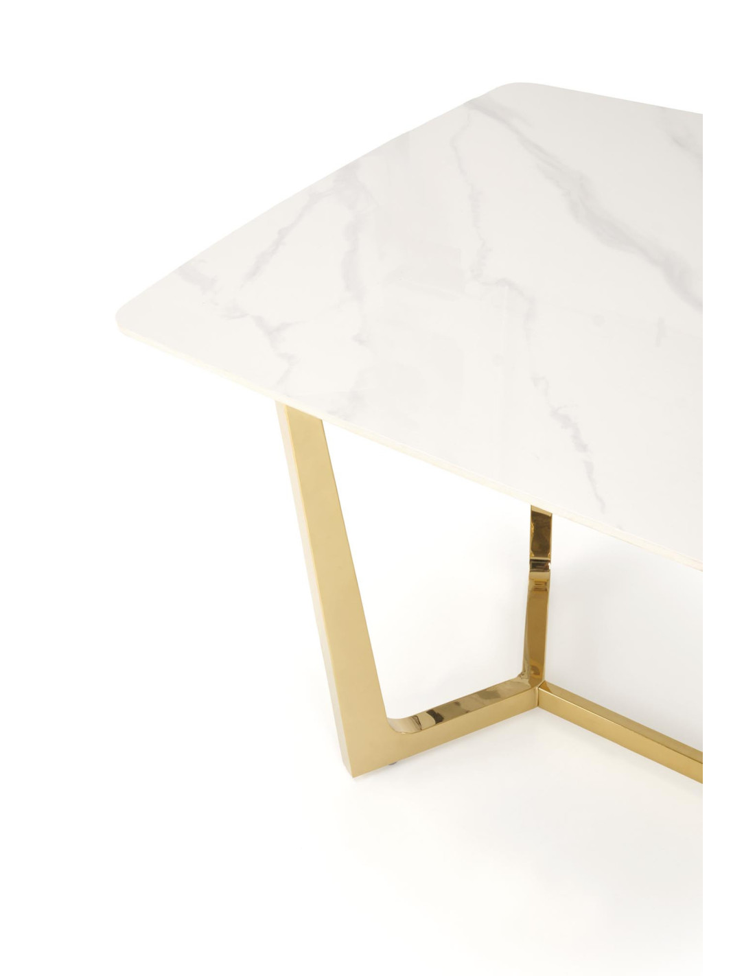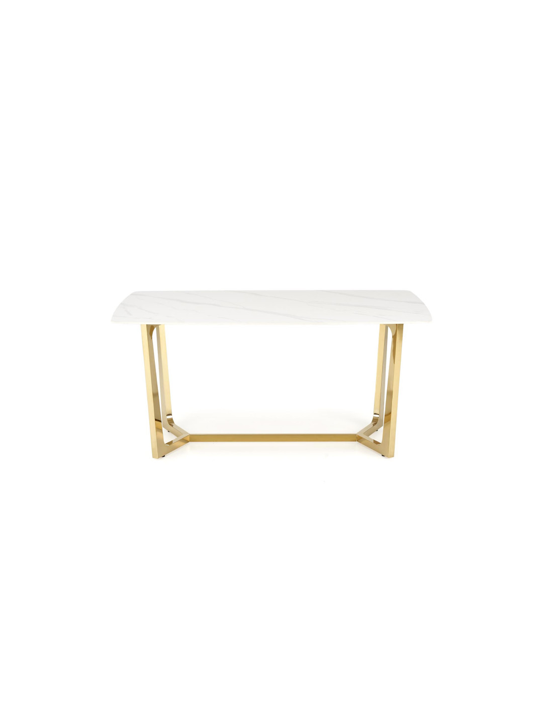 CLEMENTE Stół Glamour 160/90/76 cm Spiek Biały Marmur | Złote Nogi