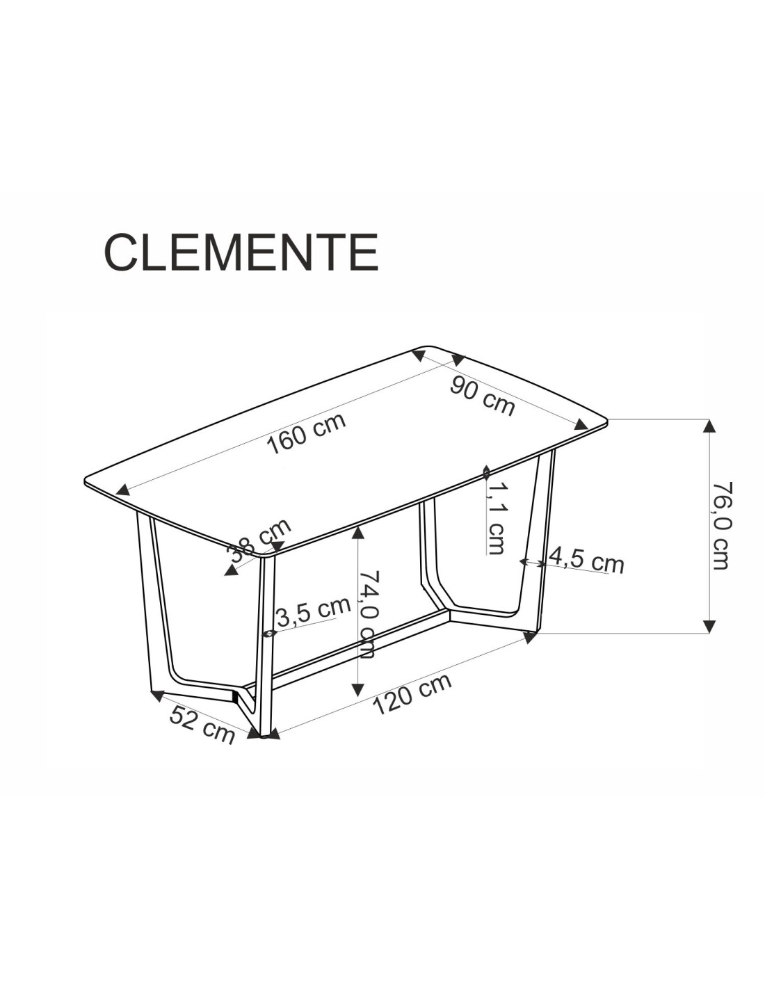 Dzięki wymiarom 160 cm szerokości, 90 cm głębokości i 76 cm wysokości, stół CLEMENTE jest doskonałym elementem do jadalni czy salonu. Jego lekka, ale stabilna konstrukcja sprawia, że jest to mebel, który przyciąga wzrok i zachęca do wspólnych posiłków oraz spotkań z bliskimi.