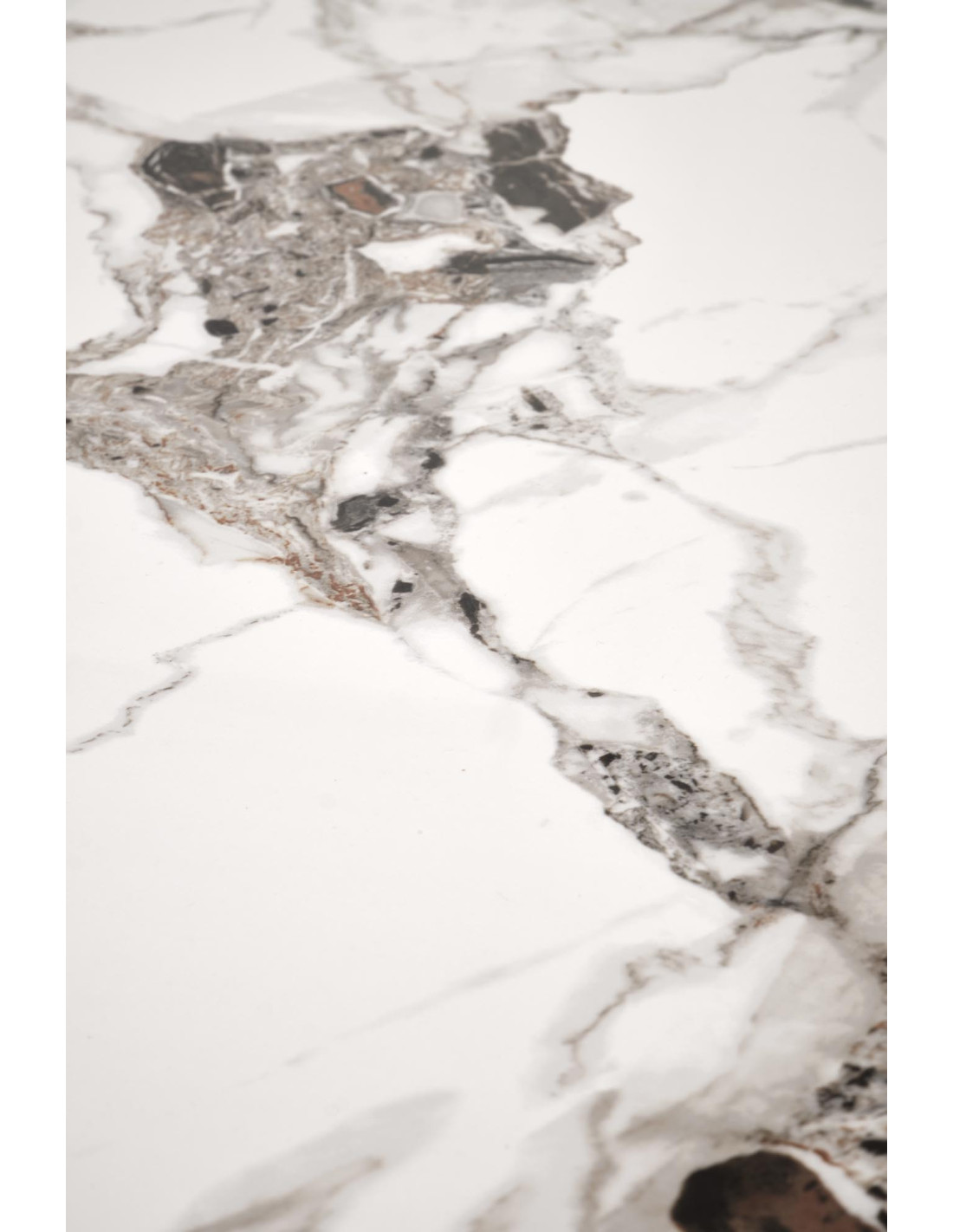 Model EMILIO dostępny jest w kolorze białego marmuru na blacie oraz czarnym na nogach.
