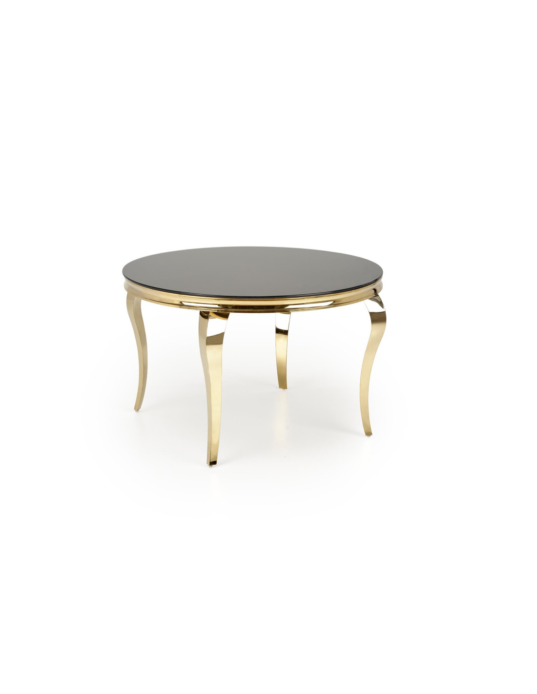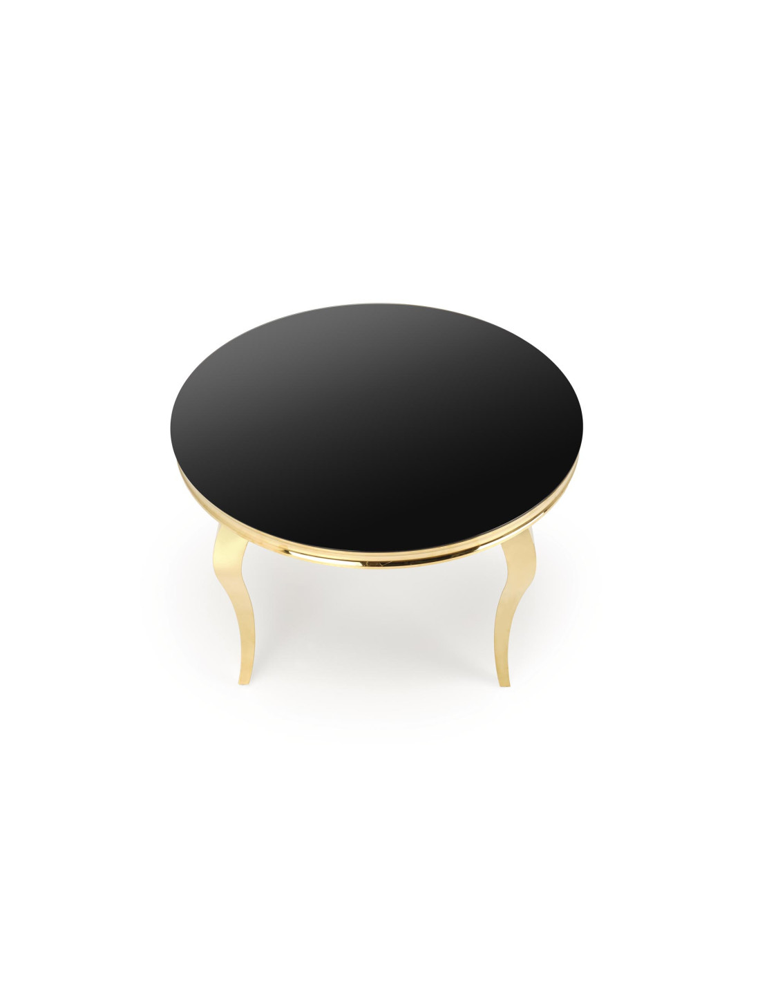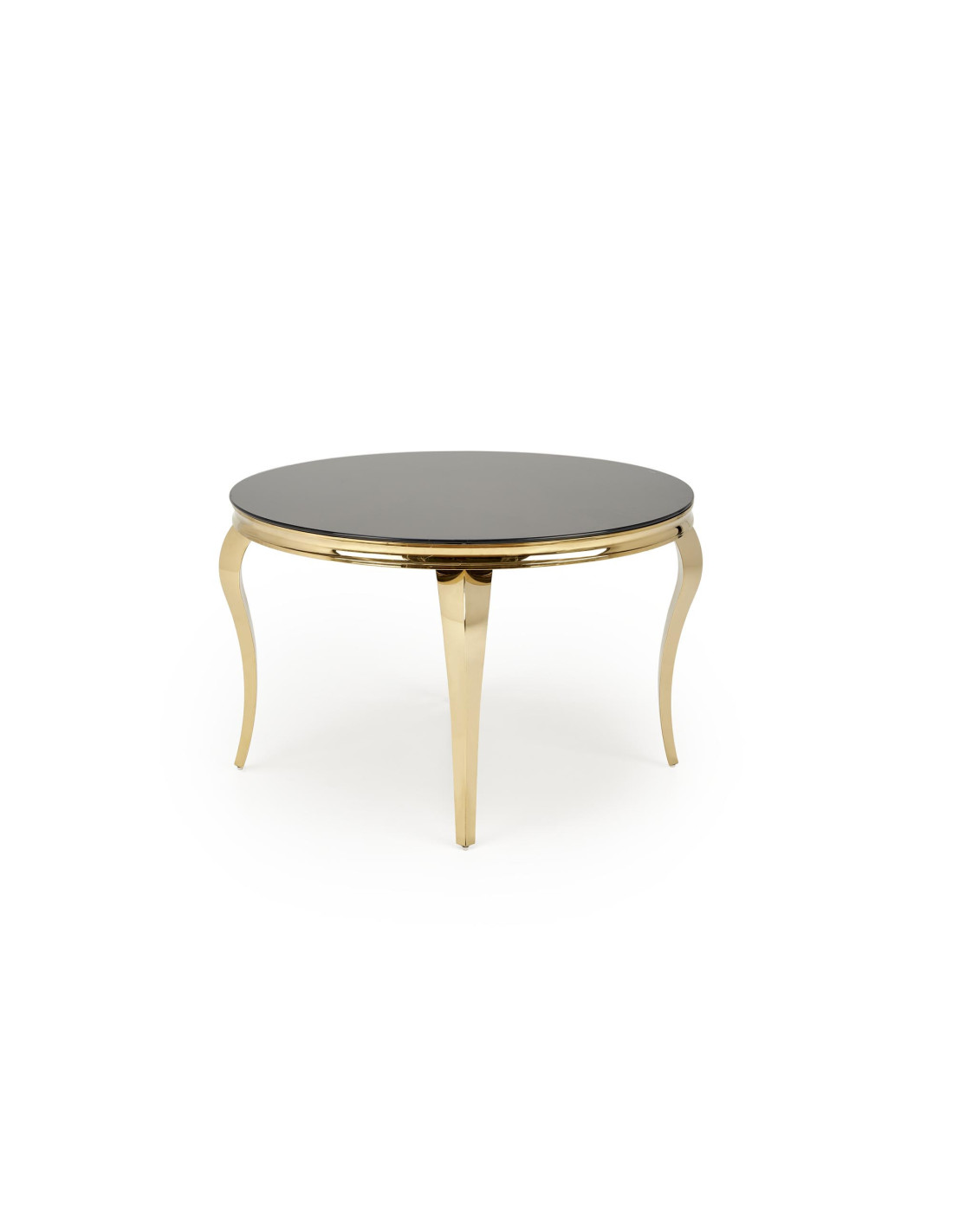 REGINALD_2 Stół Okrągły Glamour Fi120/76 cm Szkło Czarne Nogi Złote