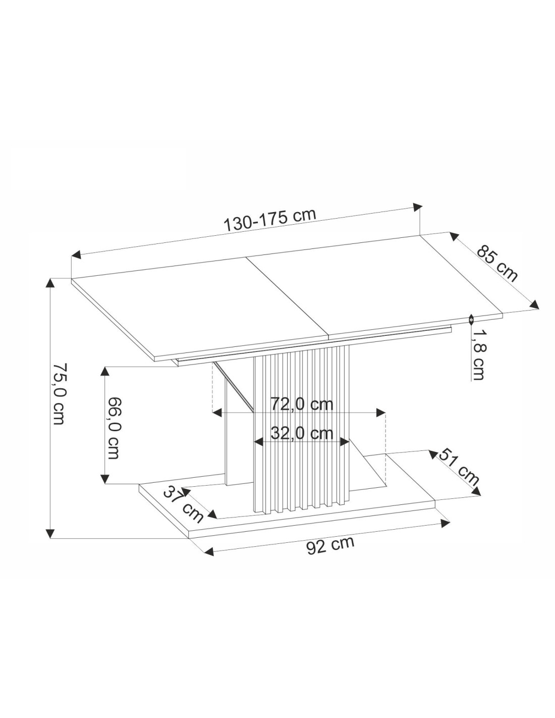 Dzięki praktycznemu mechanizmowi rozkładania, stół FABIANO ma możliwość regulacji długości od 135 cm do 175 cm. Wkładka chowana wewnątrz stołu sprawia, że jest on niezwykle elastyczny, idealny zarówno na codzienne posiłki, jak i na większe spotkania z bliskimi.
