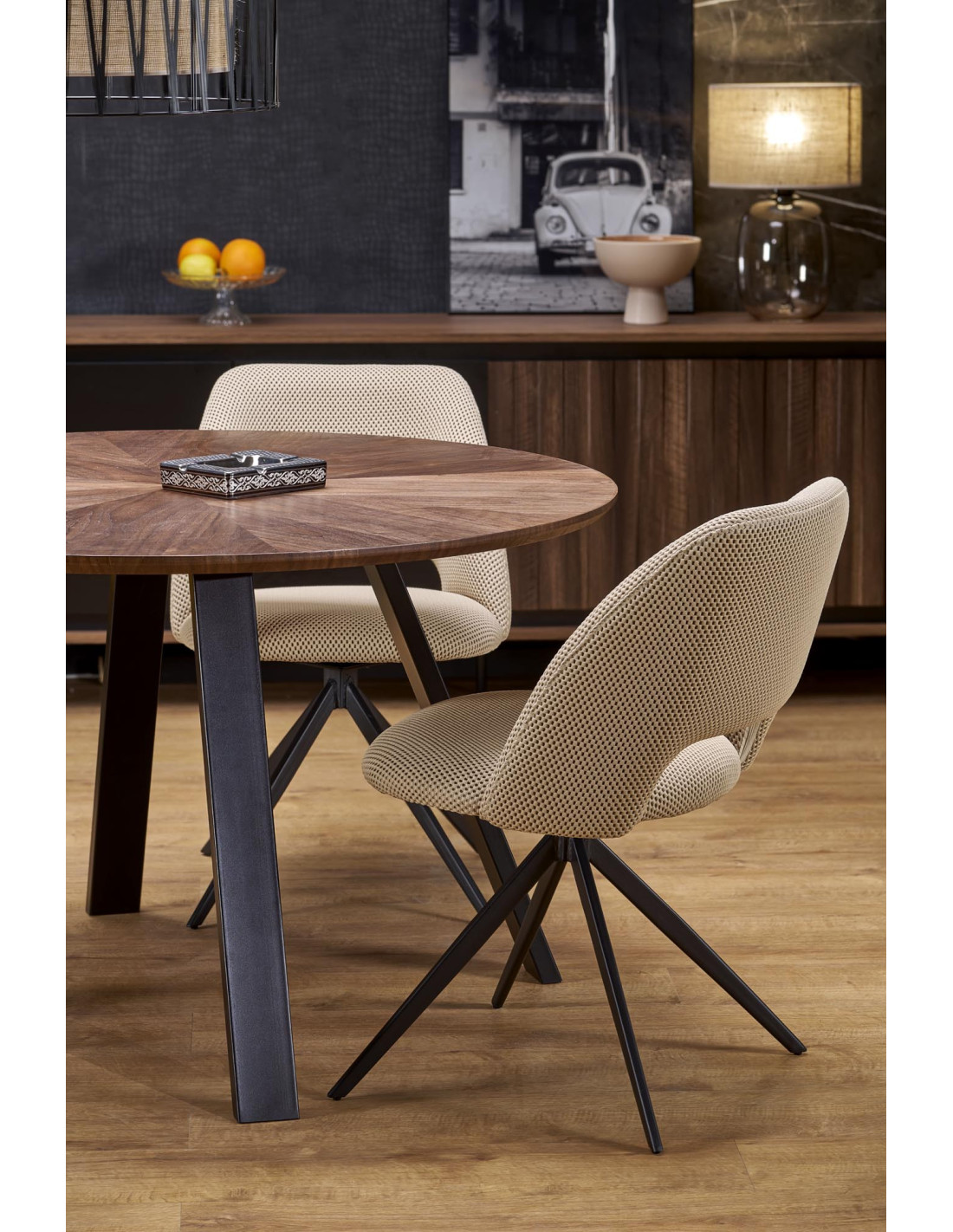 Poznaj stół okrągły DANILO, który doskonale łączy nowoczesny design z funkcjonalnością. Okrągły kształt o średnicy 120 cm sprawia, że stół idealnie wpasowuje się w każde wnętrze, tworząc przytulną atmosferę. Blat wykonany z MDF + okleina naturalna o orzechowym wykończeniu nie tylko przyciąga wzrok, ale także stanowi solidną powierzchnię do codziennych posiłków oraz spotkań z przyjaciółmi.