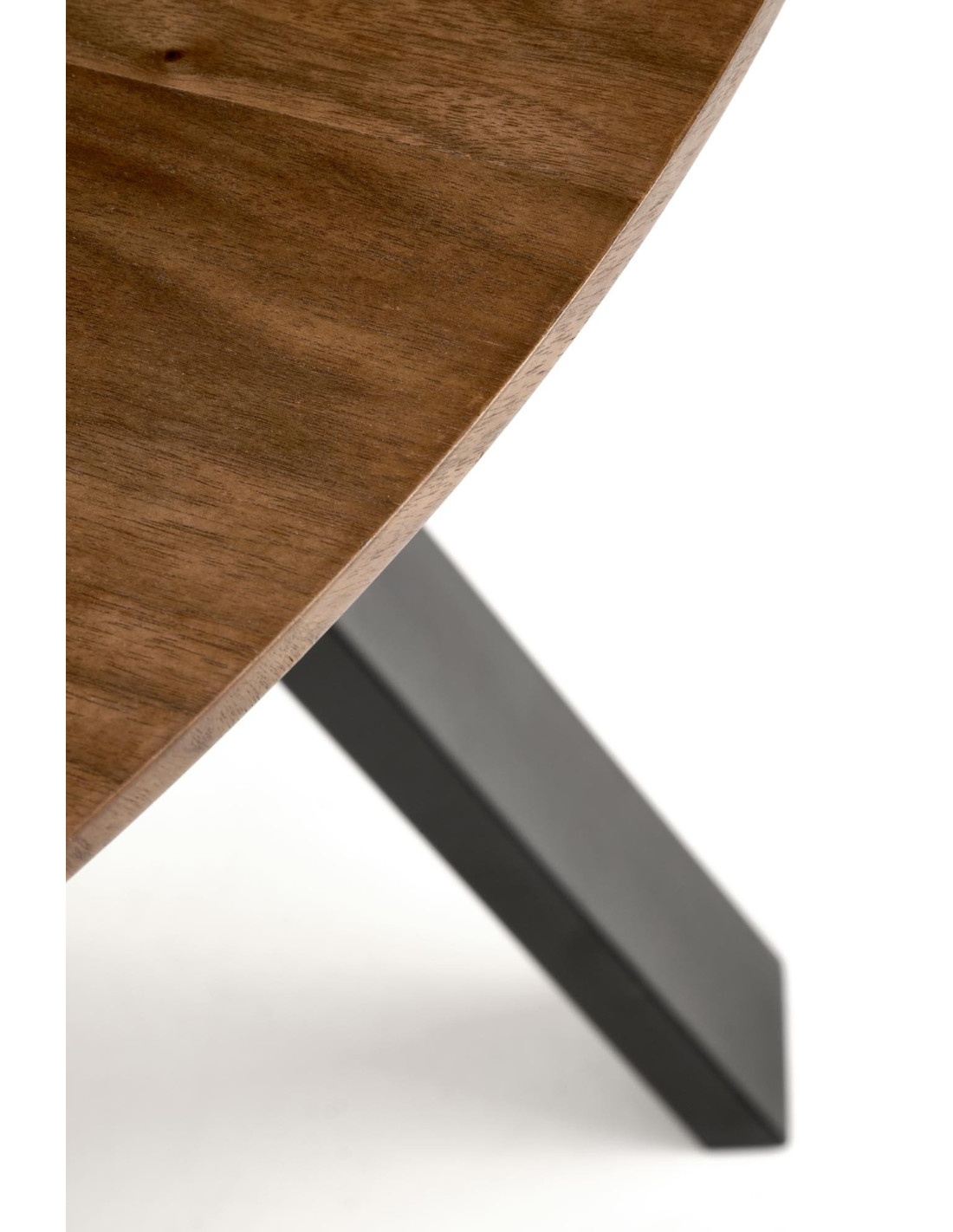 Stalowe nogi malowane proszkowo na czarno dodają stół stabilności, a ich minimalistyczny styl harmonijnie współgra z orzechowym blatem. Dzięki prostemu, ale eleganckiemu designowi, stół DANILO doskonale wpisuje się w nowoczesne wnętrza z elementami industrialnymi.