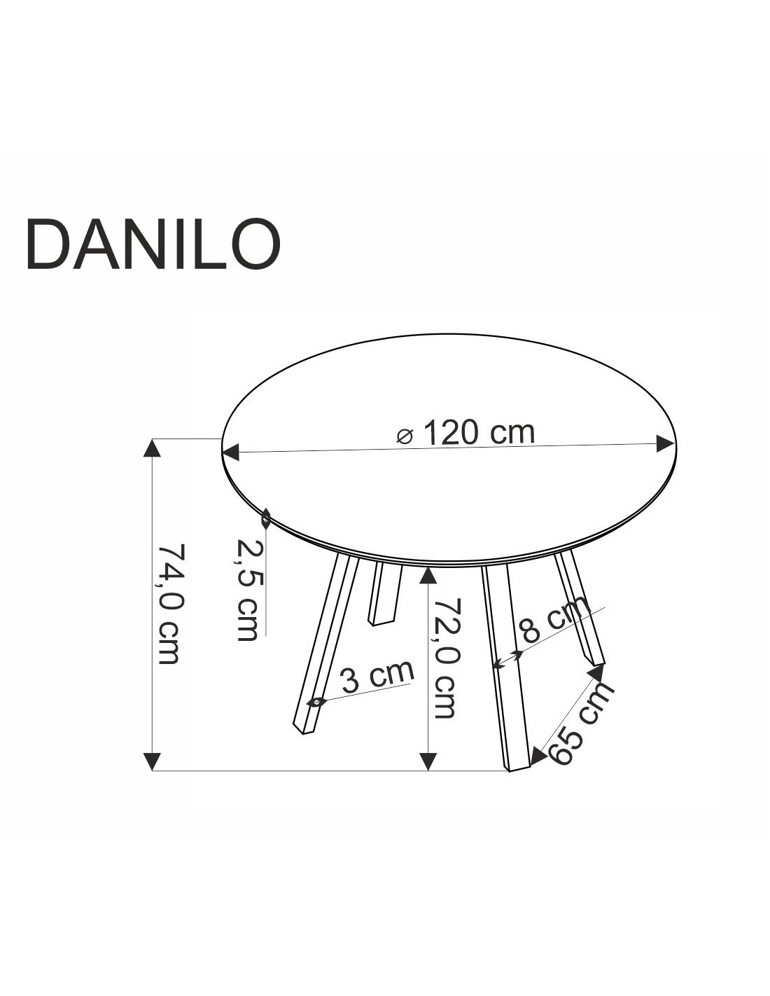 Wymiary i Specyfikacja - Stół Okrągły DANILO