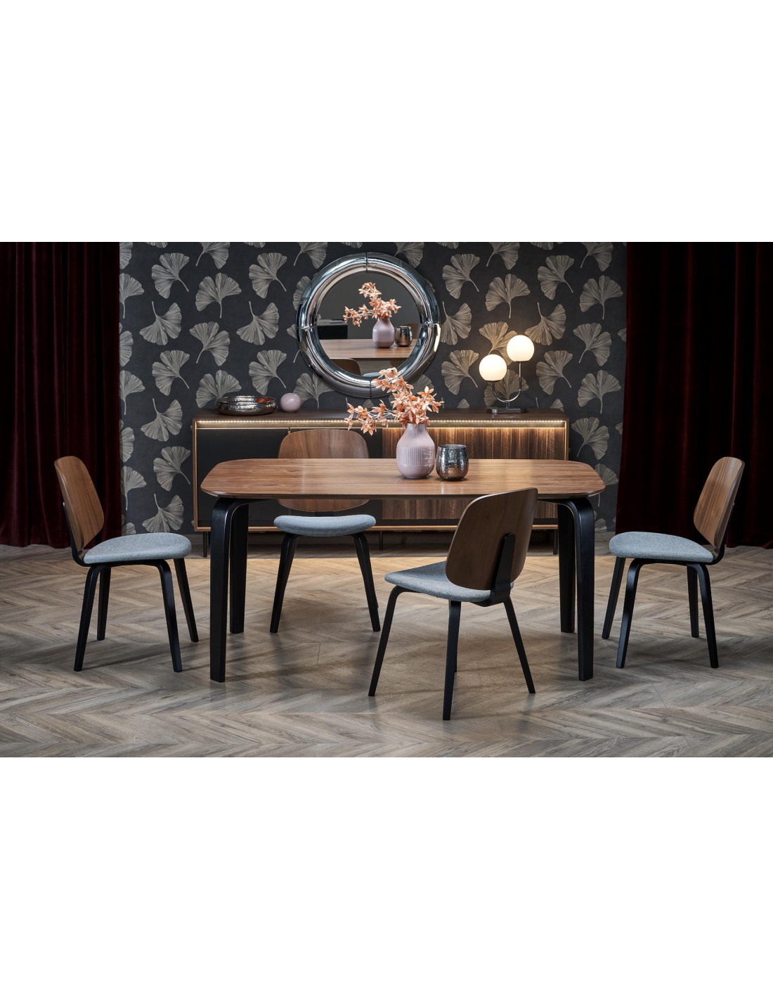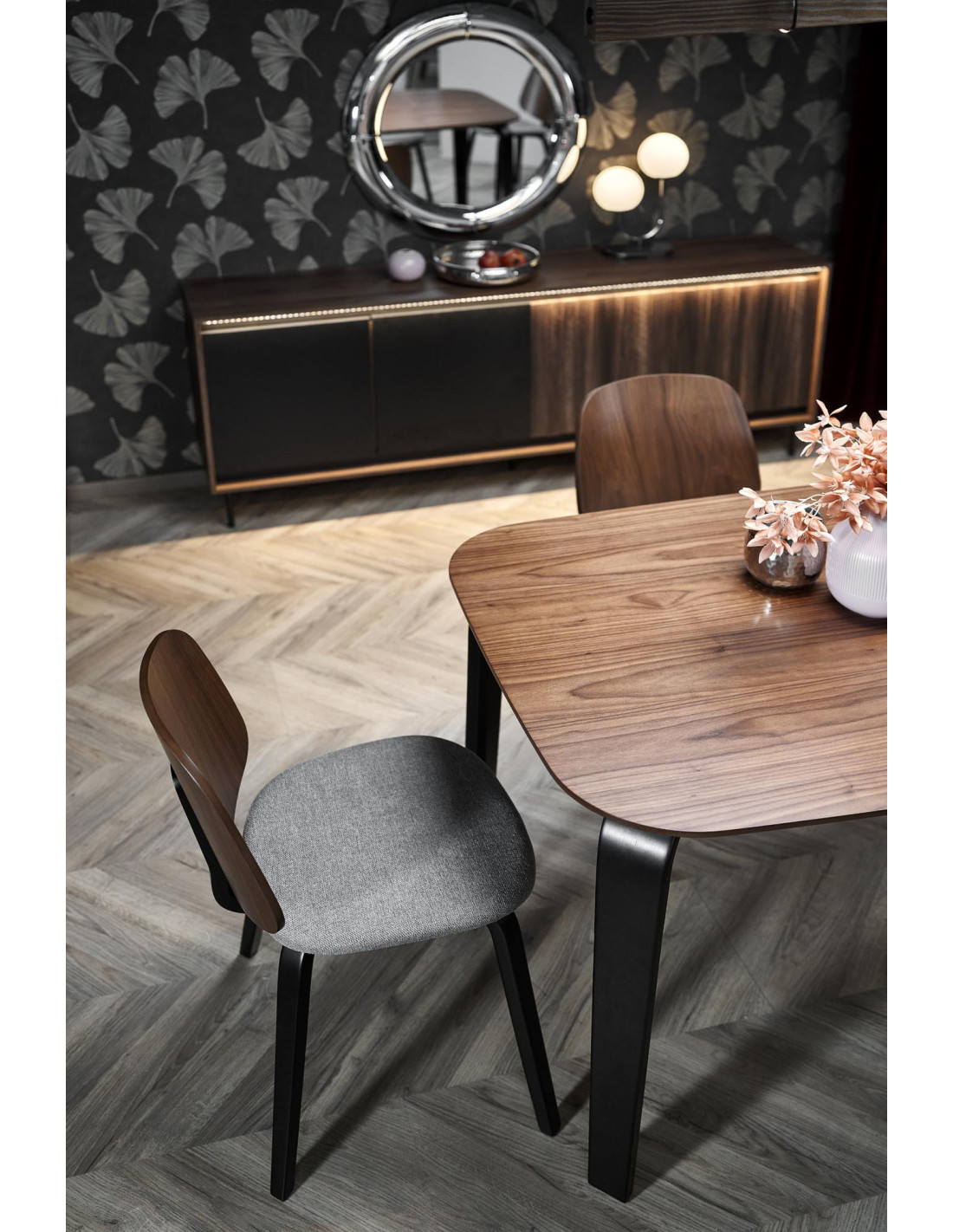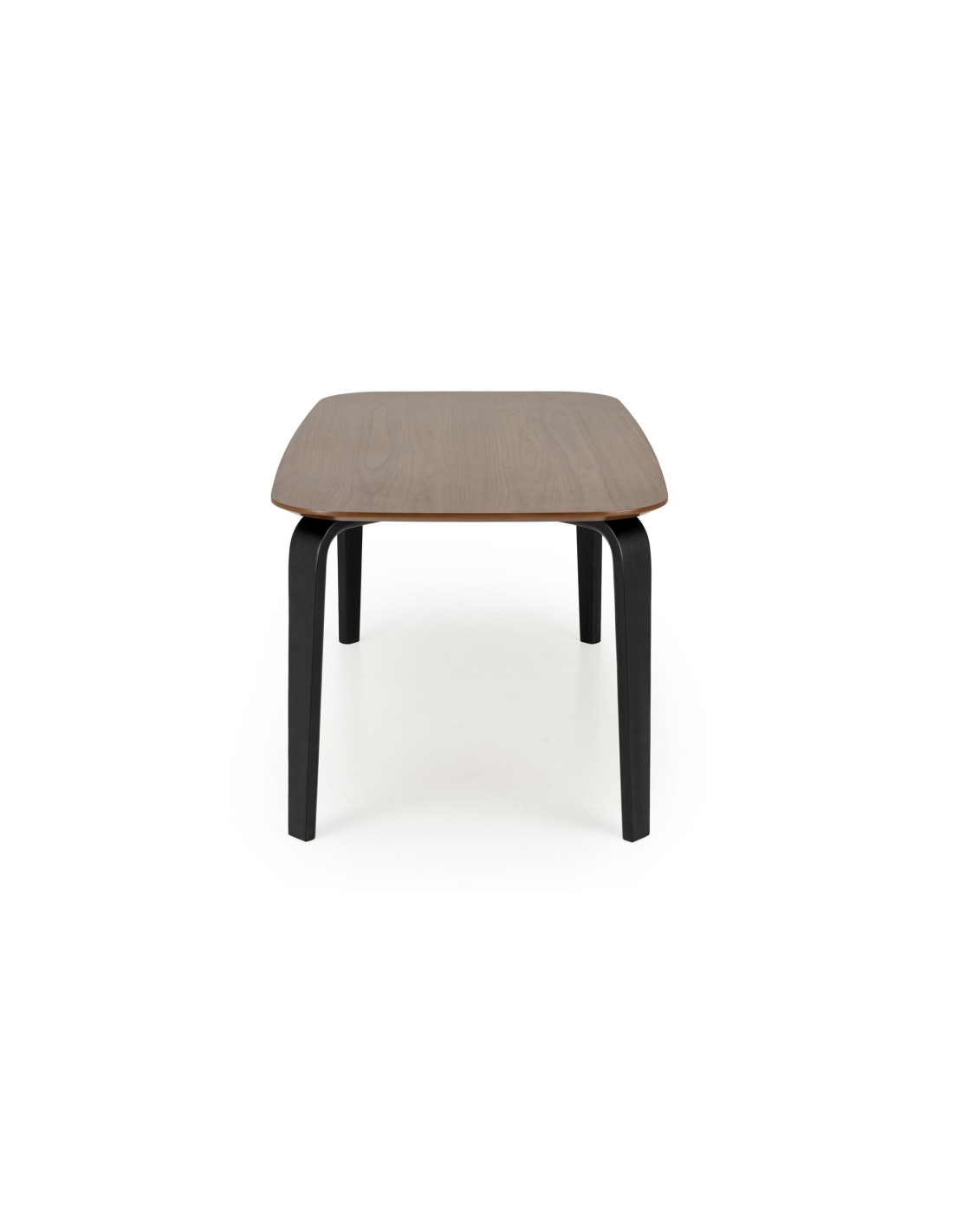 Szukasz mebla, który spełni Twoje oczekiwania? Przedstawiamy stół PEDRO, który doskonale łączy nowoczesny styl z funkcjonalnością. Prostokątny kształt ze zaokrąglonymi rogami nadaje mu delikatności, a orzechowy blat wykonany z MDF w okleinie naturalnej przyciąga wzrok i dodaje wnętrzu elegancji. Czarne, profilowane nogi z drewna kauczukowego zapewniają solidność oraz stabilność, co sprawia, że stół będzie idealnym miejscem do spotkań z rodziną i przyjaciółmi.