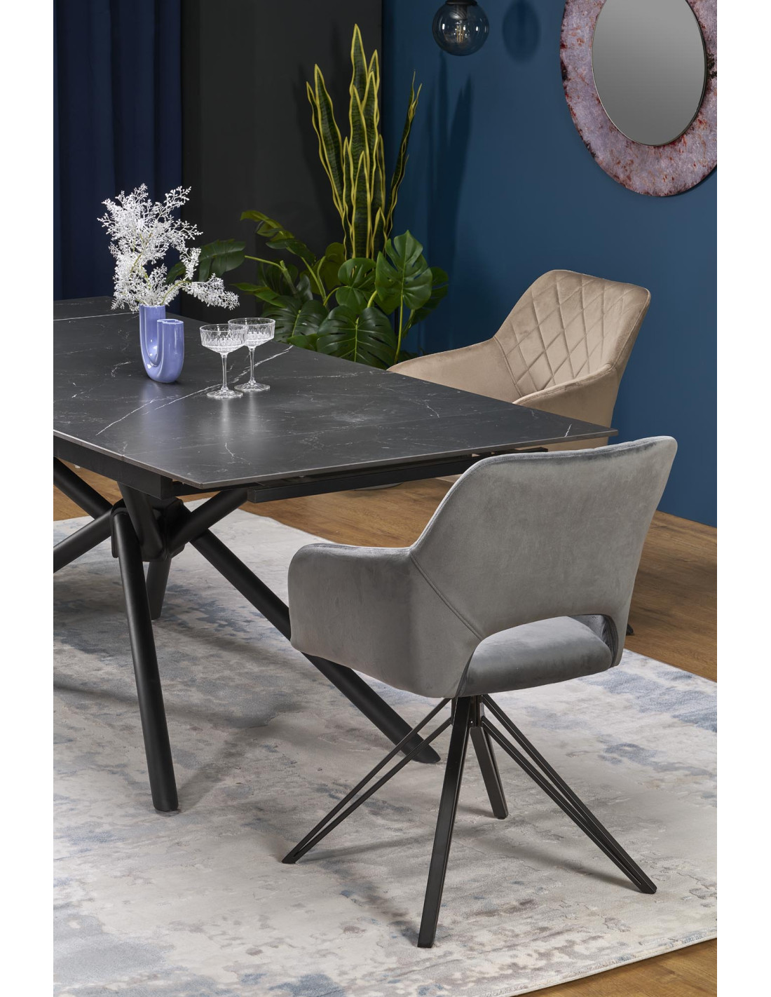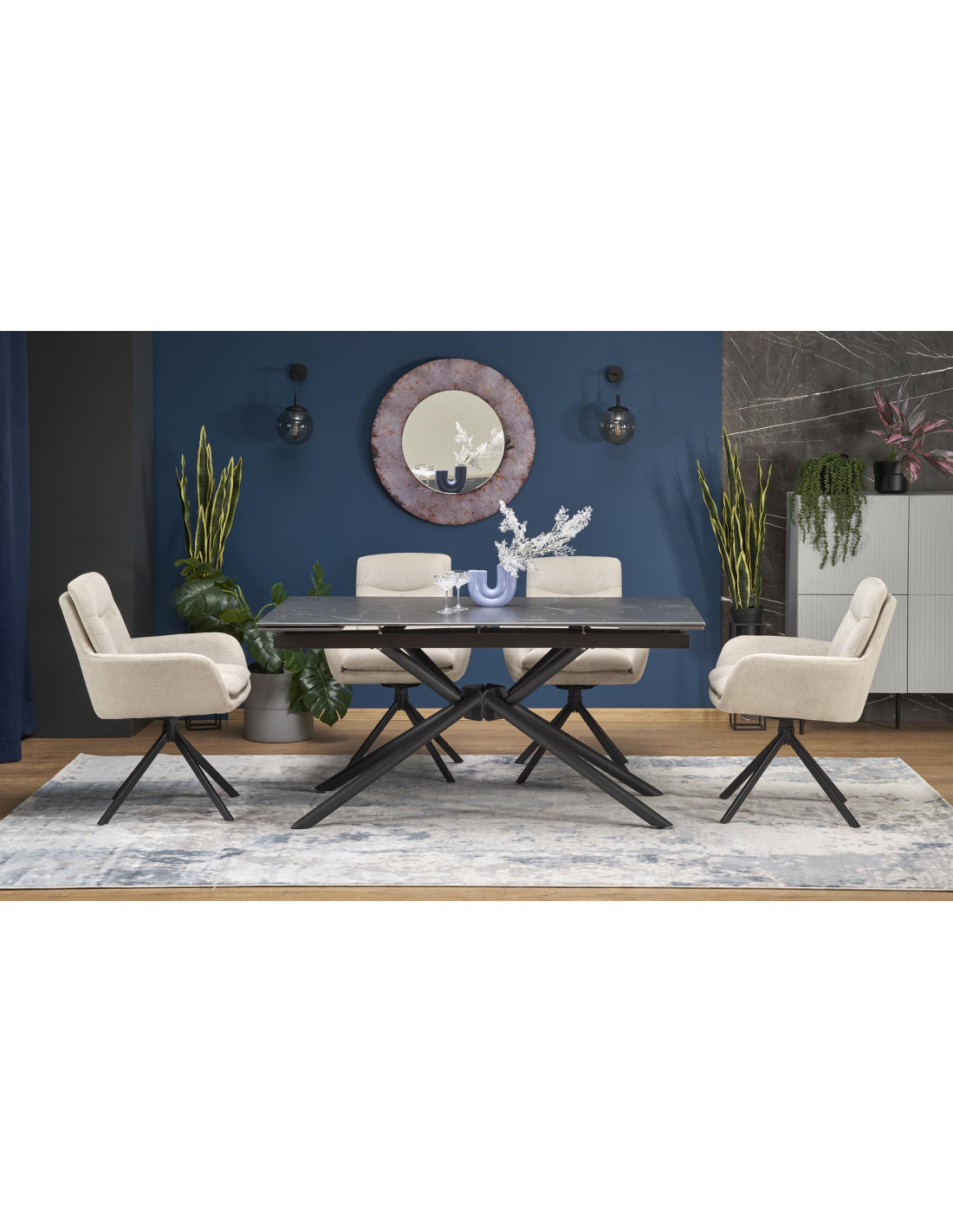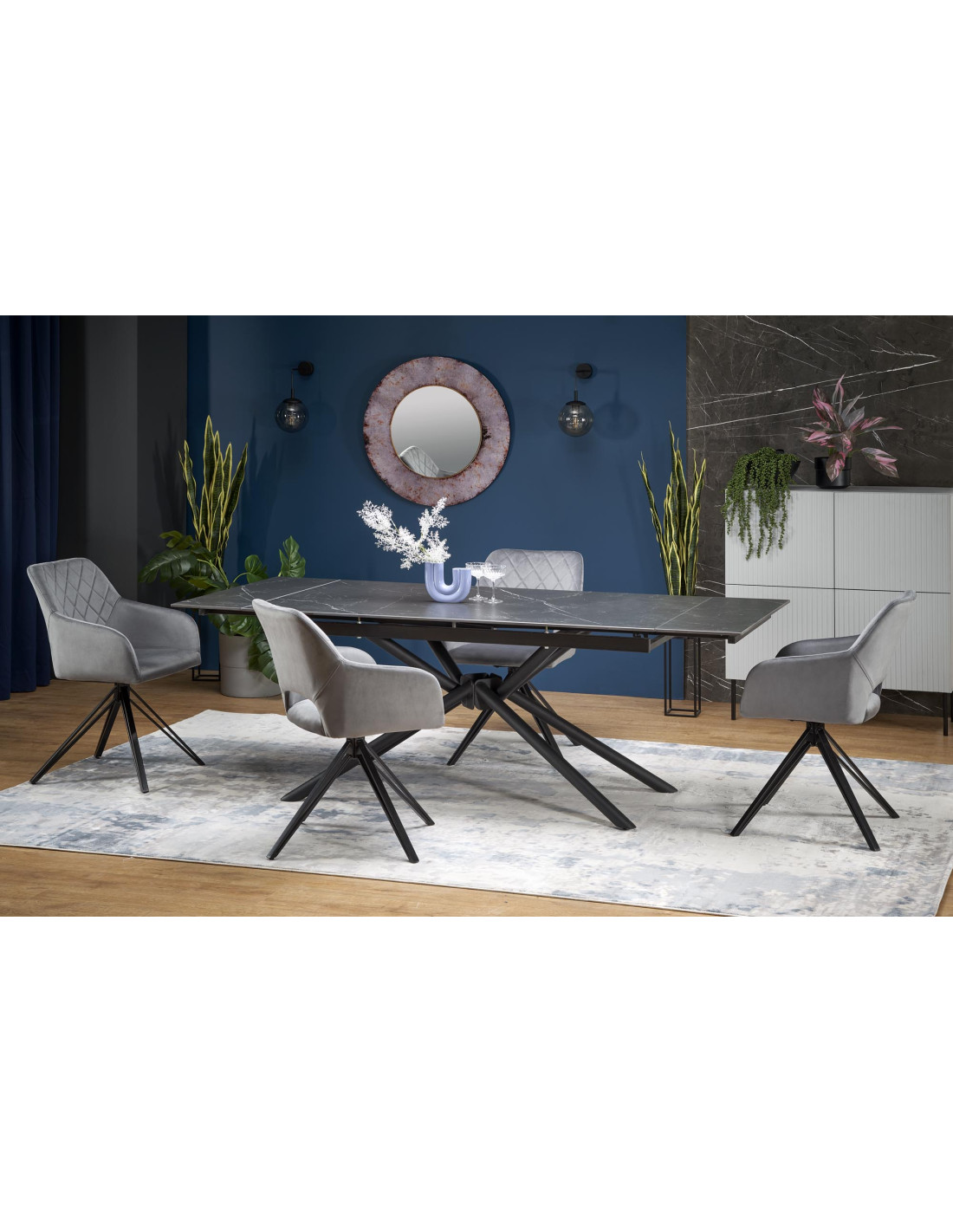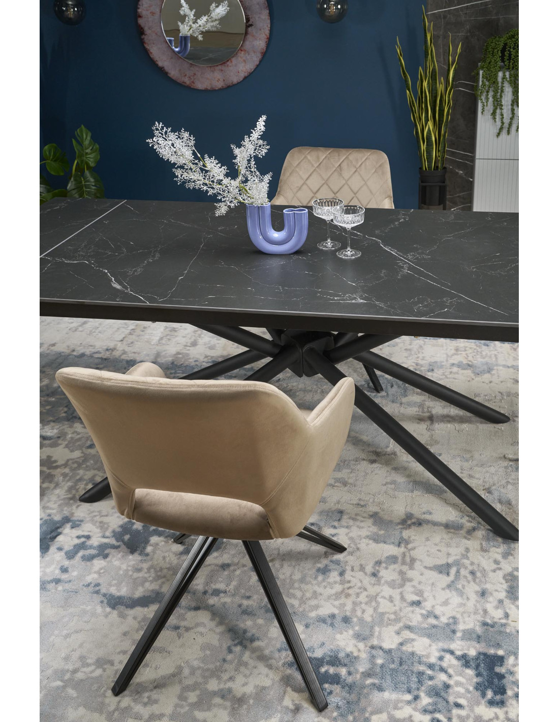 VITORINO stół rozkładany, blat - czarny marmur, nogi - czarny (2p 1szt)