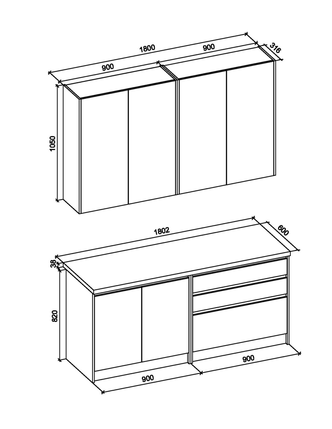 - ☑️ Głębokość szafek górnych : 31,6 cm
