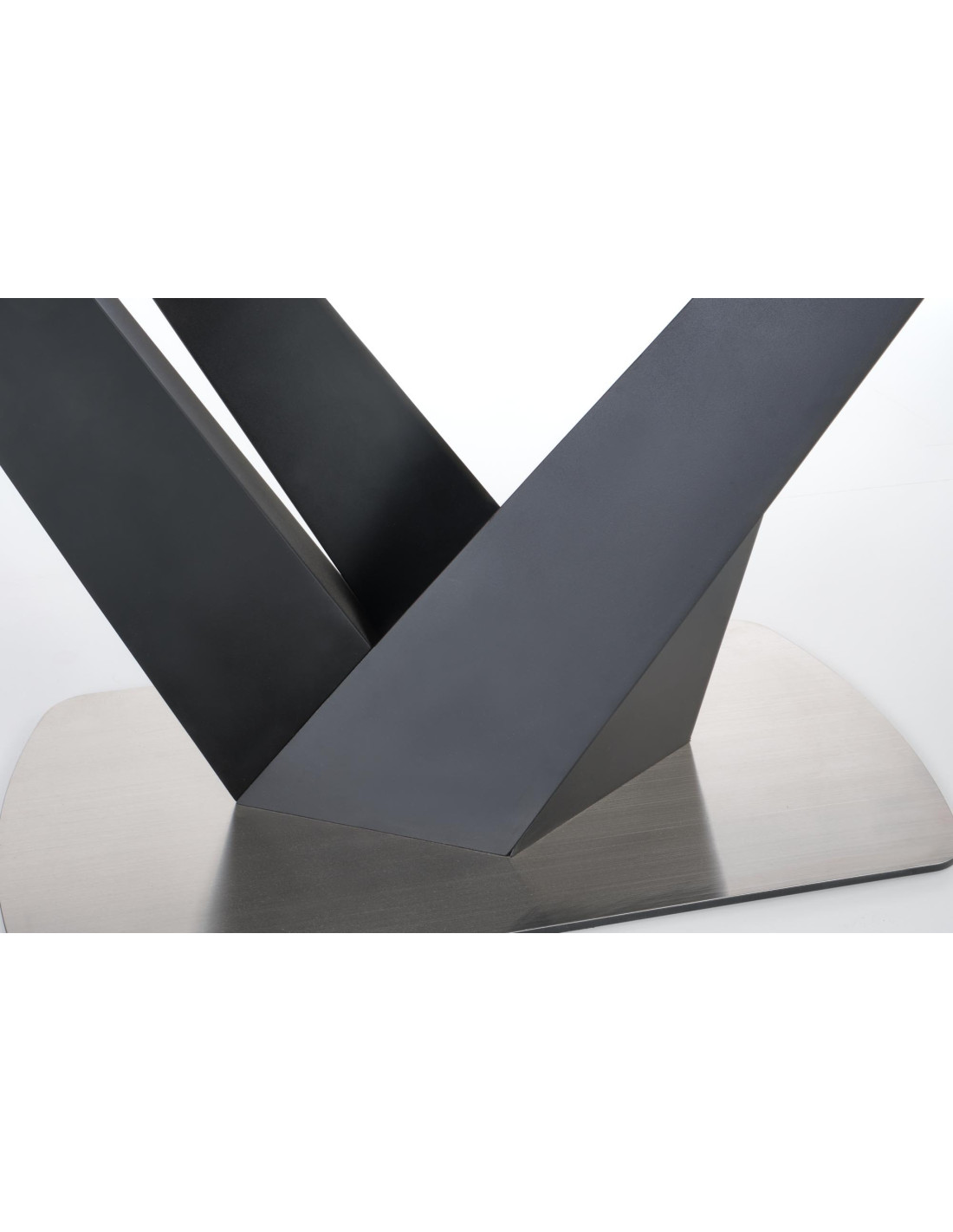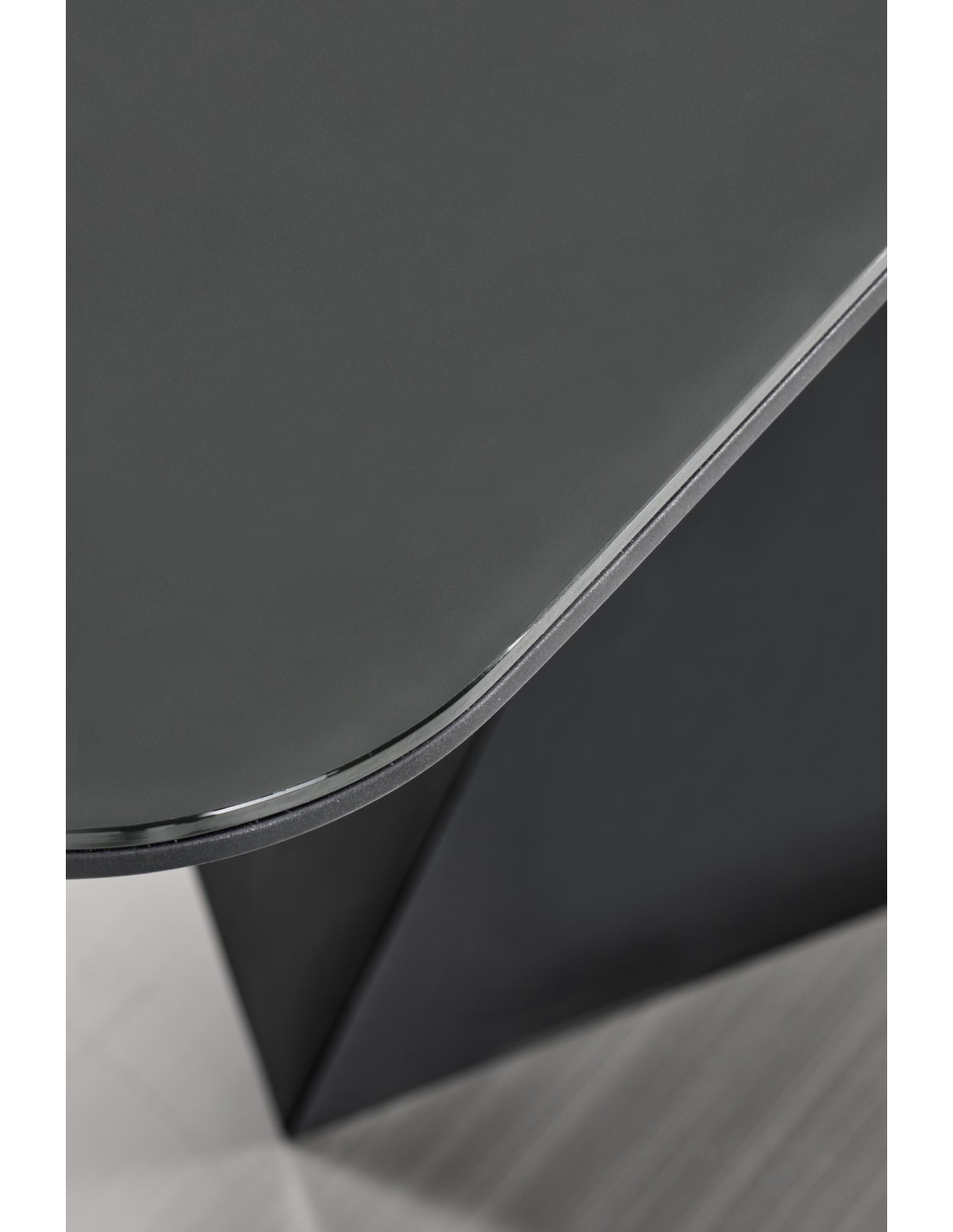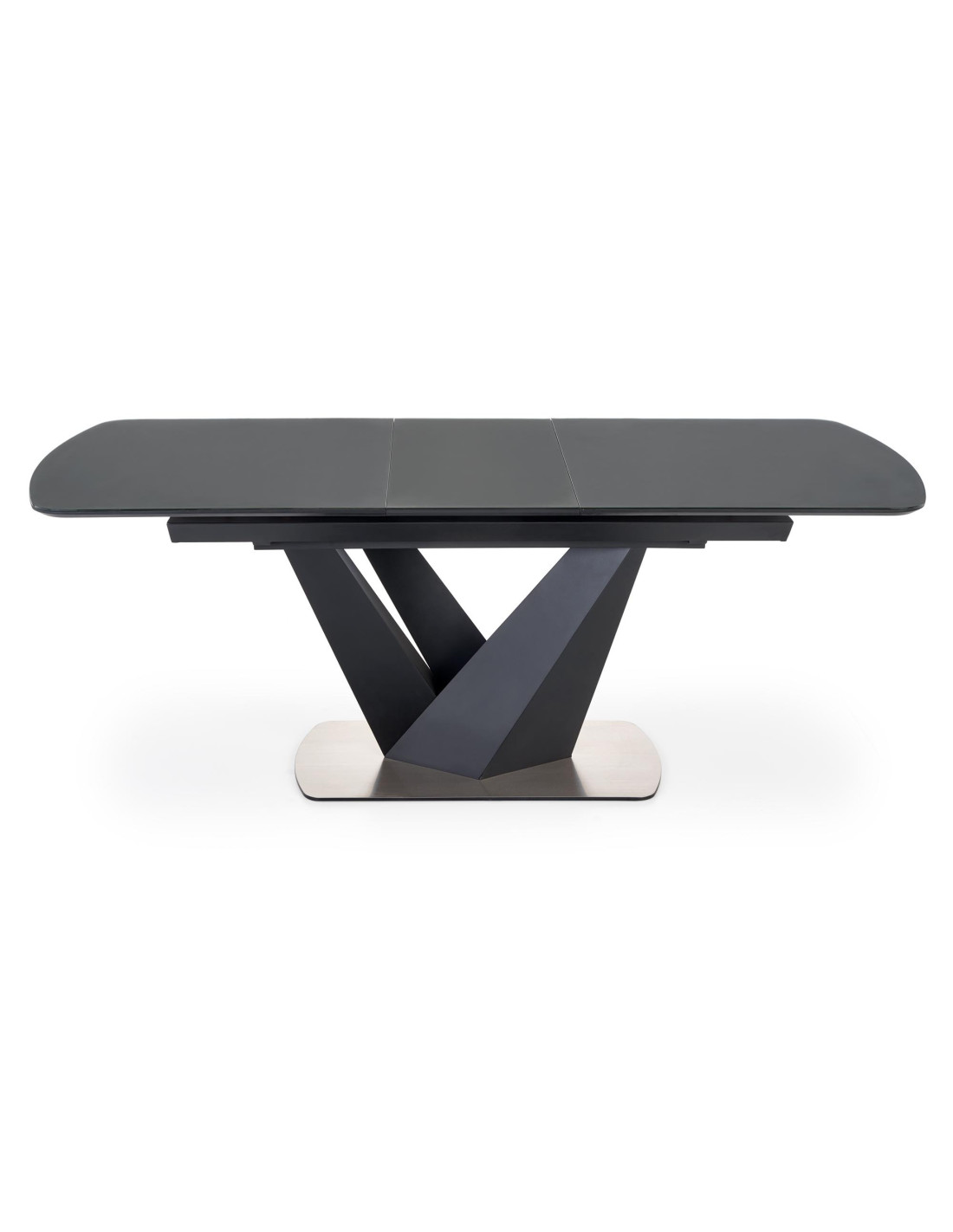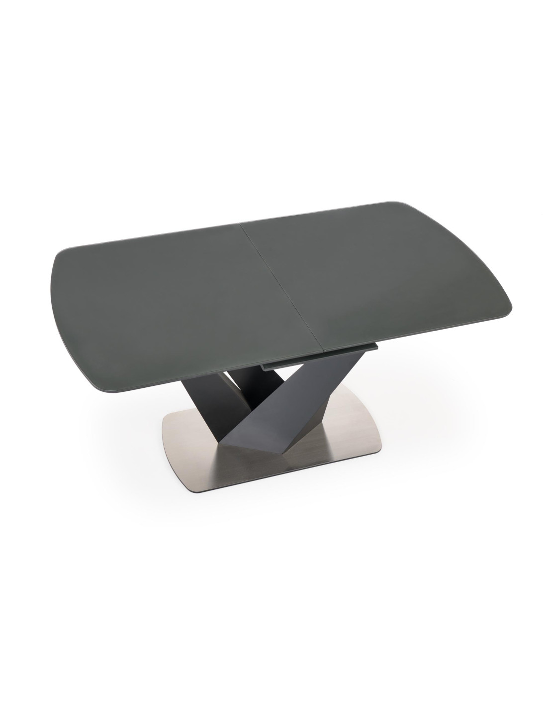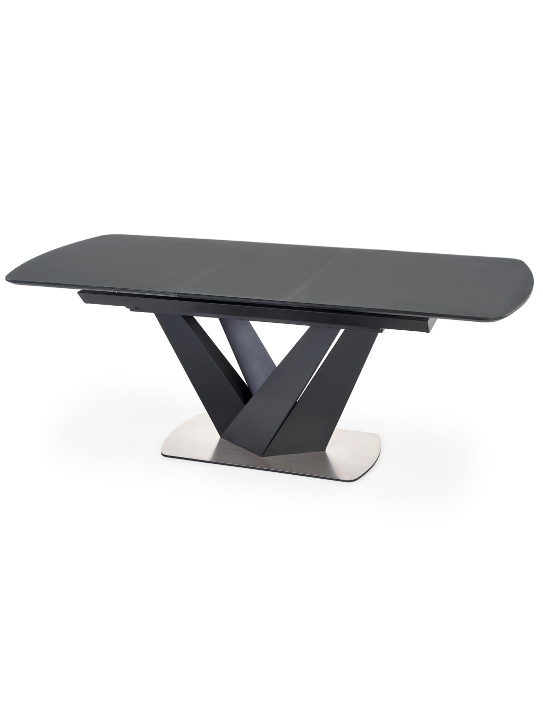 Wzbogać swoje wnętrze z rozszerzanym stołem PATRIZIO, który łączy w sobie nowoczesny styl z eleganckim wykończeniem! Ten stół o długości od 160 cm do 200 cm w kolorze ciemnego popielu z czarnymi akcentami, wykonany z wysokiej jakości szkła oraz płyty MDF, zachwyca prostokątnym blatem z zaokrąglonymi narożnikami. Jego unikalna konstrukcja z elegancką nogą w kształcie skrzyżowanych płyt MDF dodaje mu wyjątkowego charakteru, idealnie pasując do nowoczesnych i minimalistycznych aranżacji wnętrz.