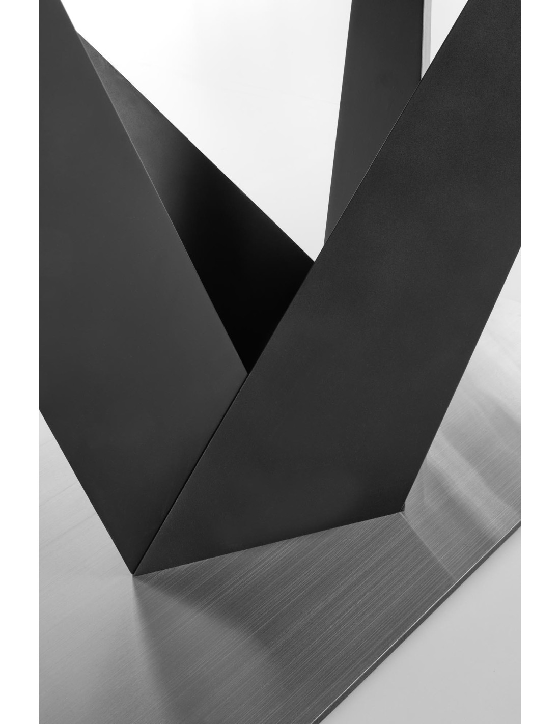 Stół PATRIZIO wykonany jest z wysokiej jakości szkła oraz płyty MDF lakierowanej, a nogi z MDF i stali nierdzewnej.