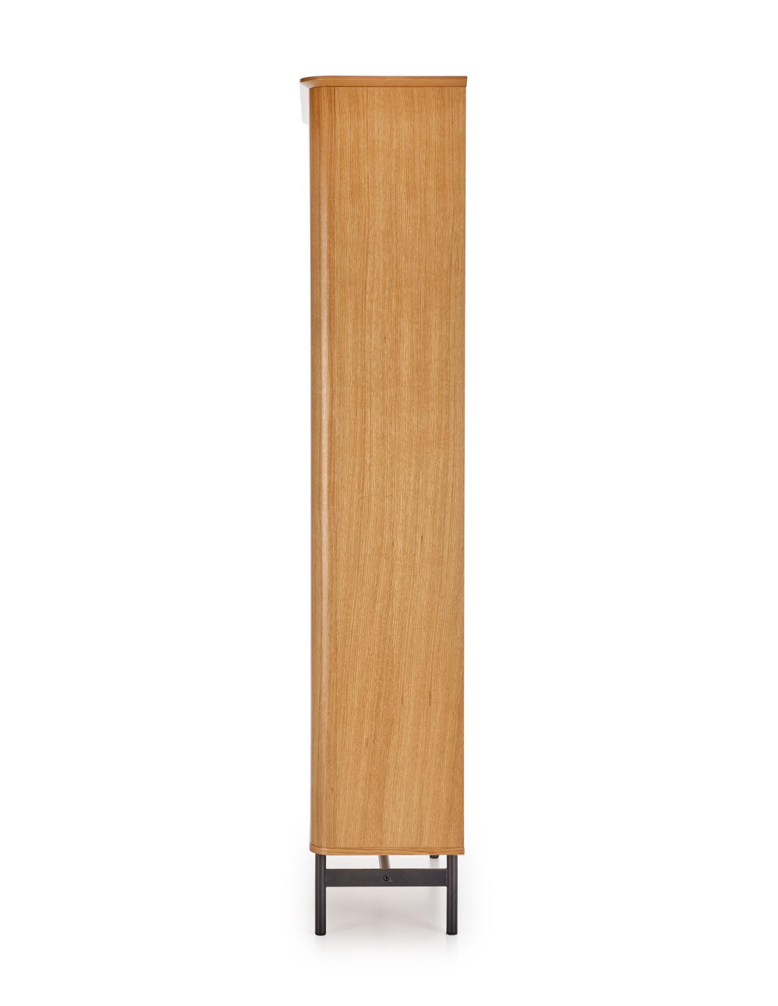 Regał SMART REG-1 wykonany jest z MDF oraz płyty meblowej w okleinie naturalnej dębowej, a jego nogi są stalowe, malowane proszkowo.