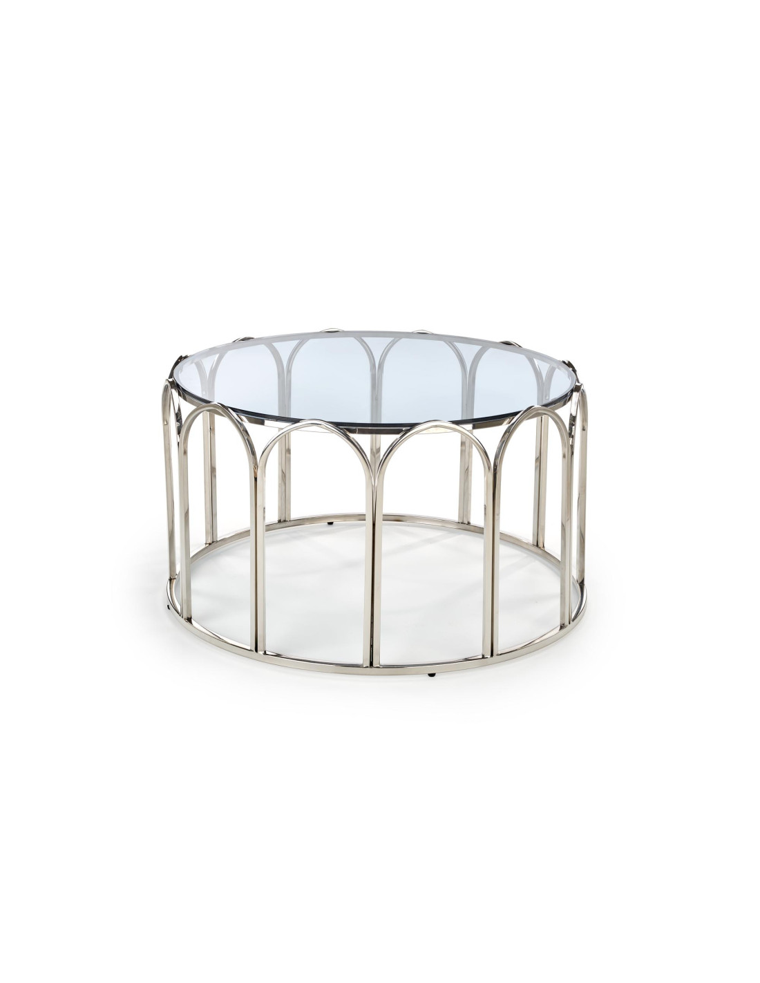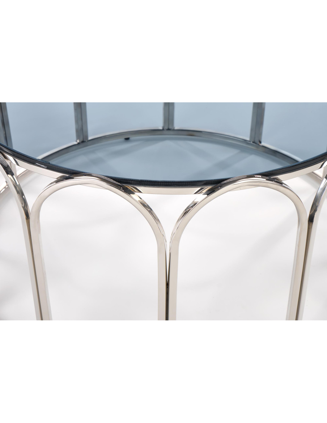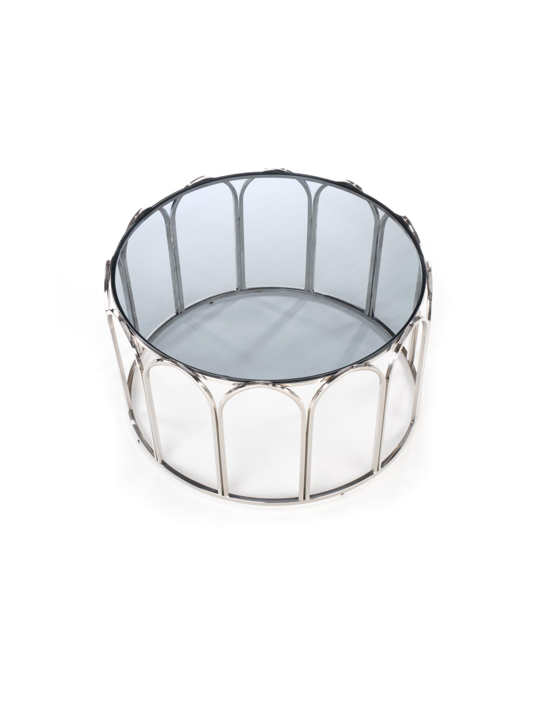 OLIVIA Ława Okrągła Fi81cm Dymione Szkło/ Stal Nierdzewna - Luksus Glamour