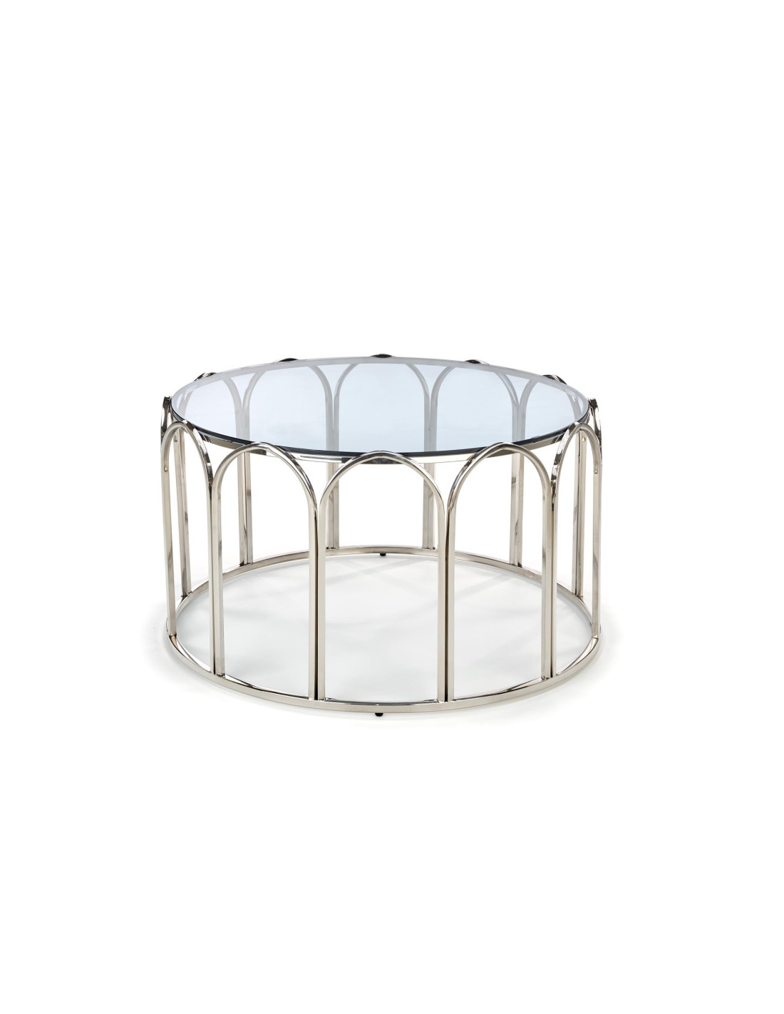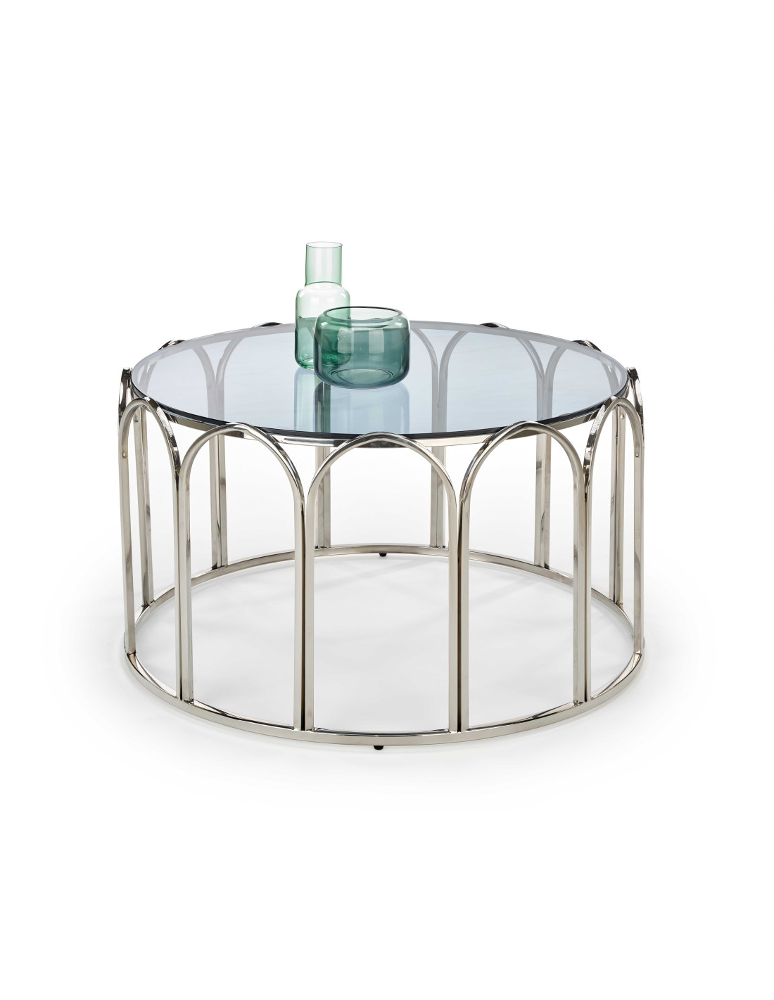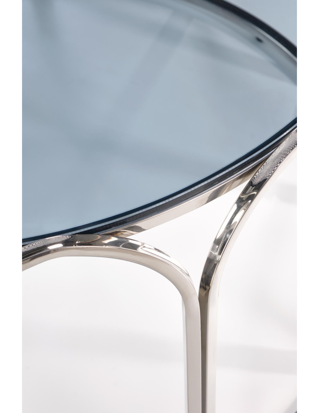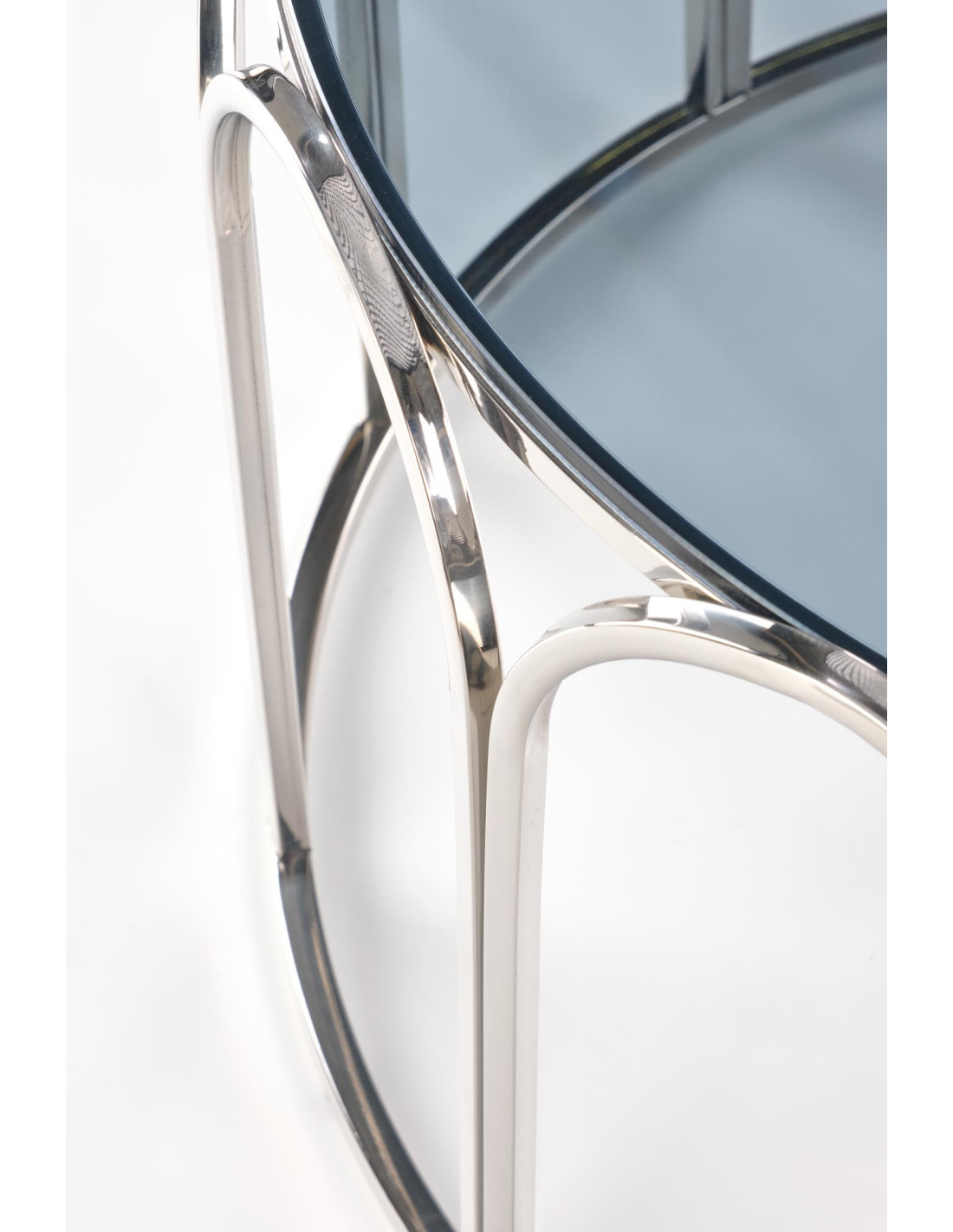 OLIVIA Ława Okrągła Fi81cm Dymione Szkło/ Stal Nierdzewna - Luksus Glamour