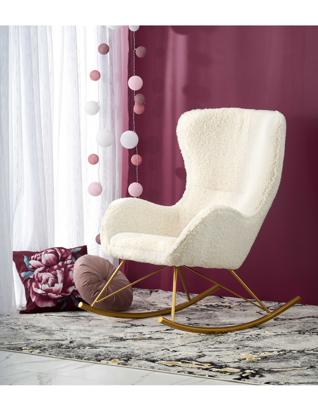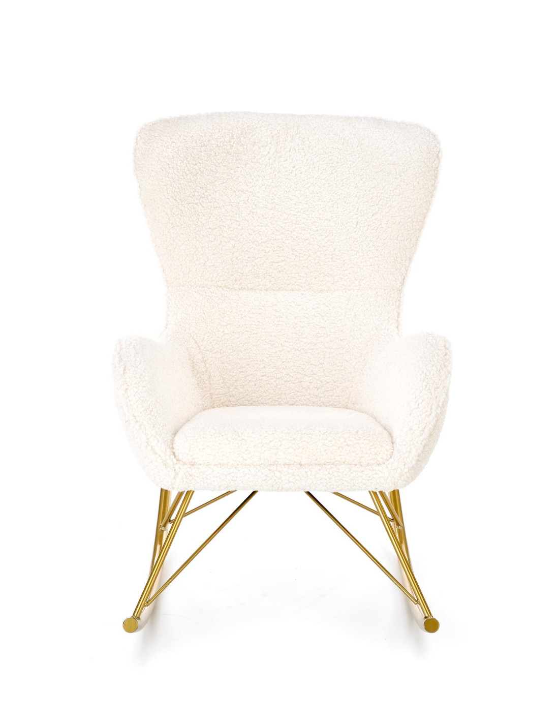 LIBERTO Fotel Bouclé Kremowy Bujany, Nogi Złote - Luksus i Elegancja