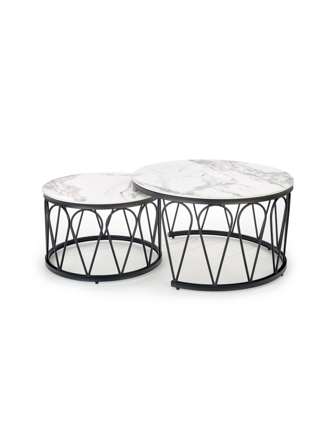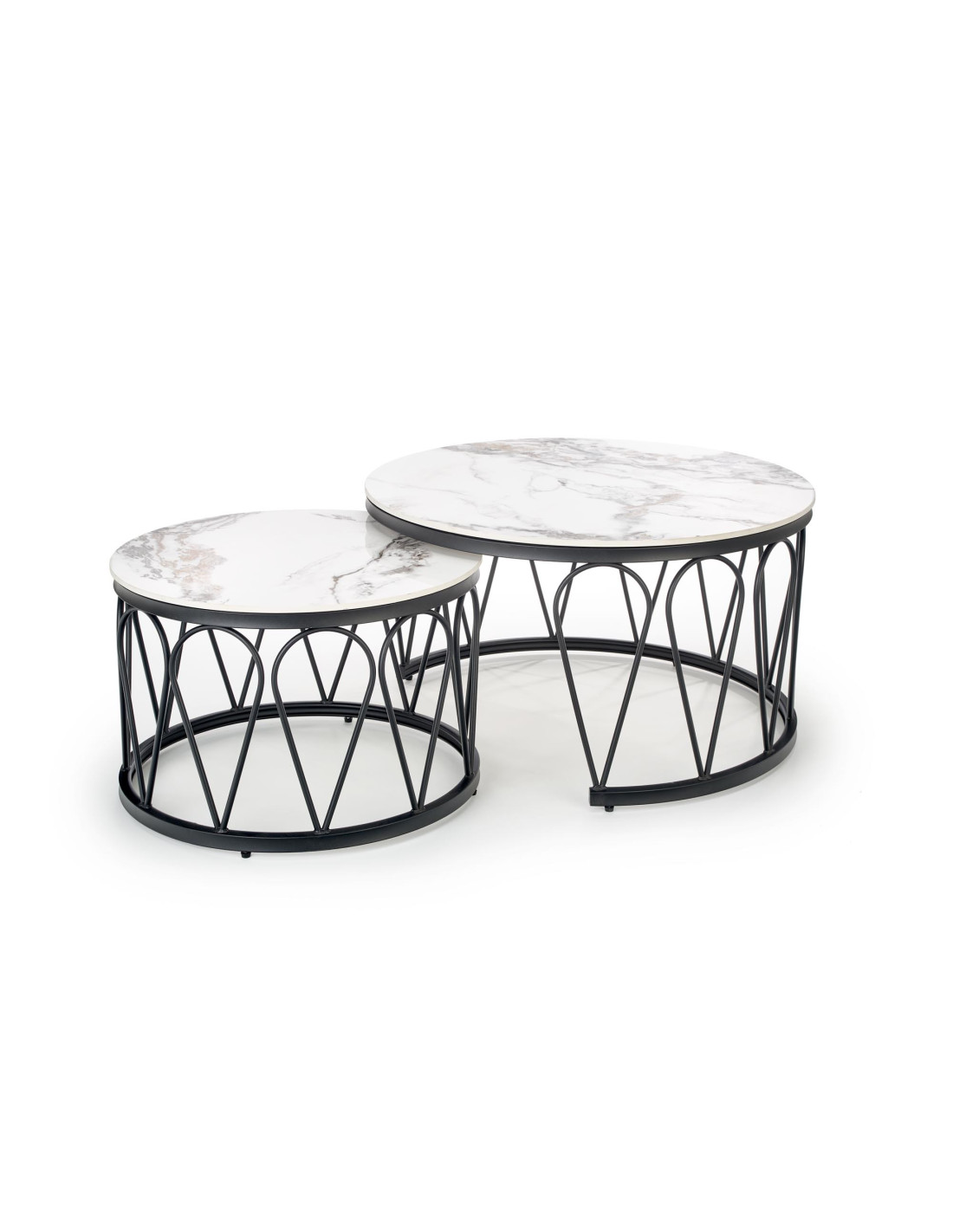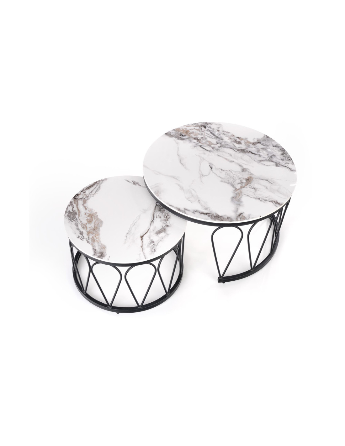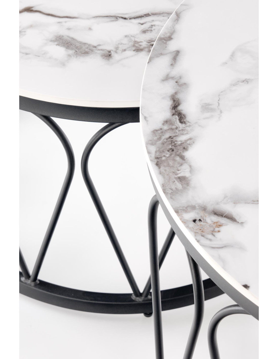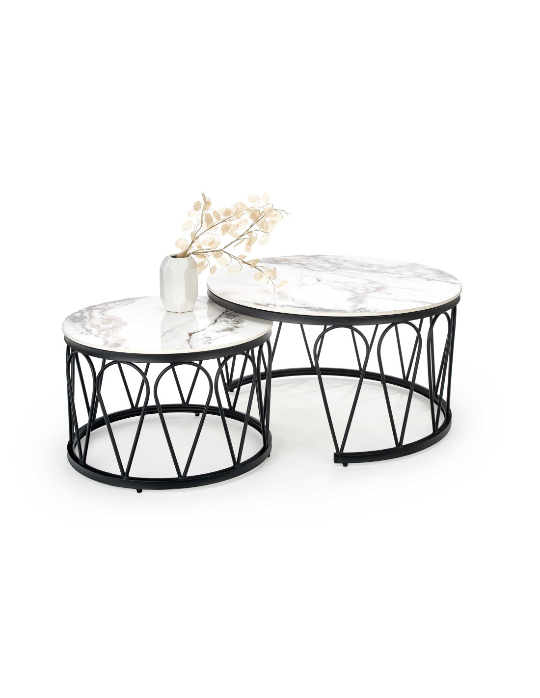 Przedstawiamy Ci Zestaw 2 ław FORMOSA, który wprowadzi do Twojego wnętrza niepowtarzalny klimat nowoczesnej elegancji z nutą glamour. Okrągłe blaty, wykonane z imitacji białego marmuru, z subtelnymi szarymi żyłkami, zachwycają swoim wyglądem, a czarne metalowe nogi z geometrycznym ażurowym wzorem dodają całości lekkości i stylu. Te ławy to nie tylko funkcjonalne meble, ale również efektowne elementy dekoracyjne, które z pewnością przyciągną uwagę każdego gościa.
