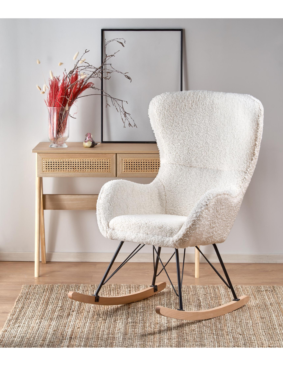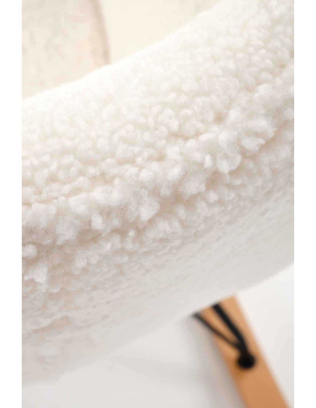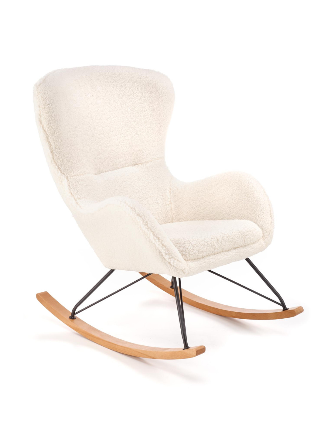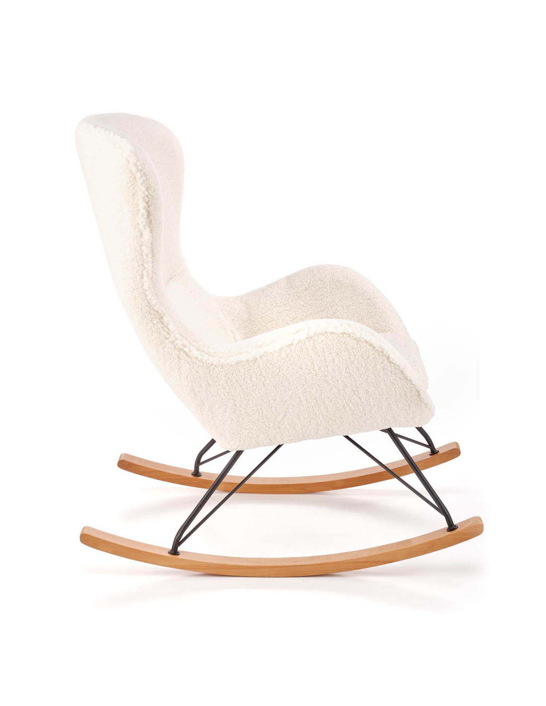 Ożyw swoją przestrzeń z fotelem bujanym LIBERTO, który łączy nowoczesny styl z niepowtarzalnym komfortem. Jego zaokrąglone kształty oraz wysokie oparcie sprawiają, że każda chwila spędzona w nim staje się relaksującym doświadczeniem. Kremowy materiał bouclé nie tylko dodaje elegancji, ale również wprowadza przytulność do każdego wnętrza, a metalowy stelaż w połączeniu z drewnianymi płozami zapewnia doskonałą stabilność i płynność ruchów.
