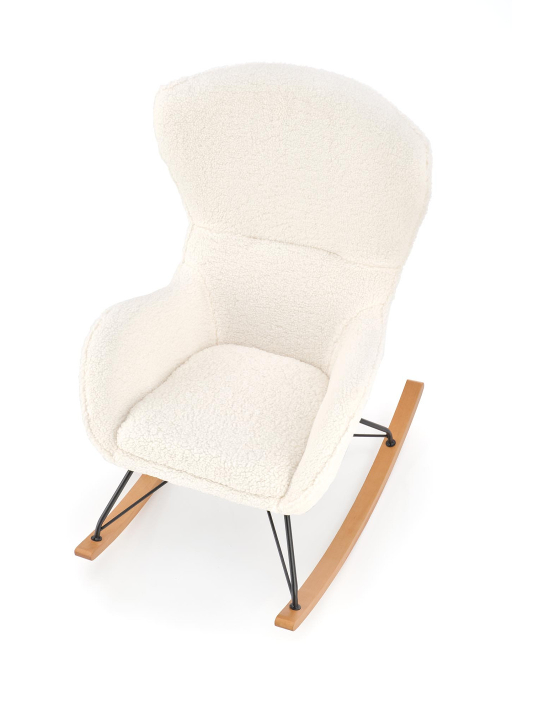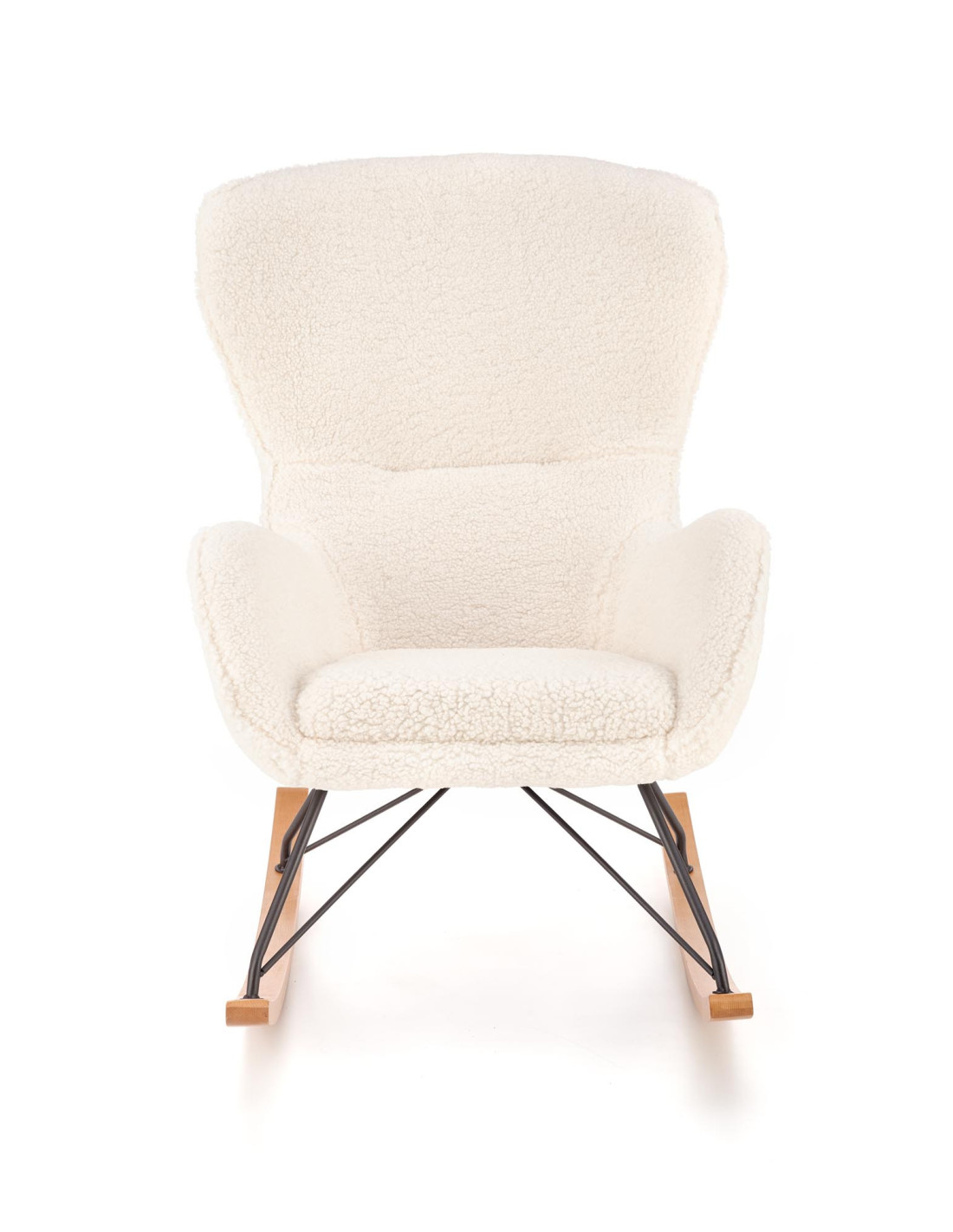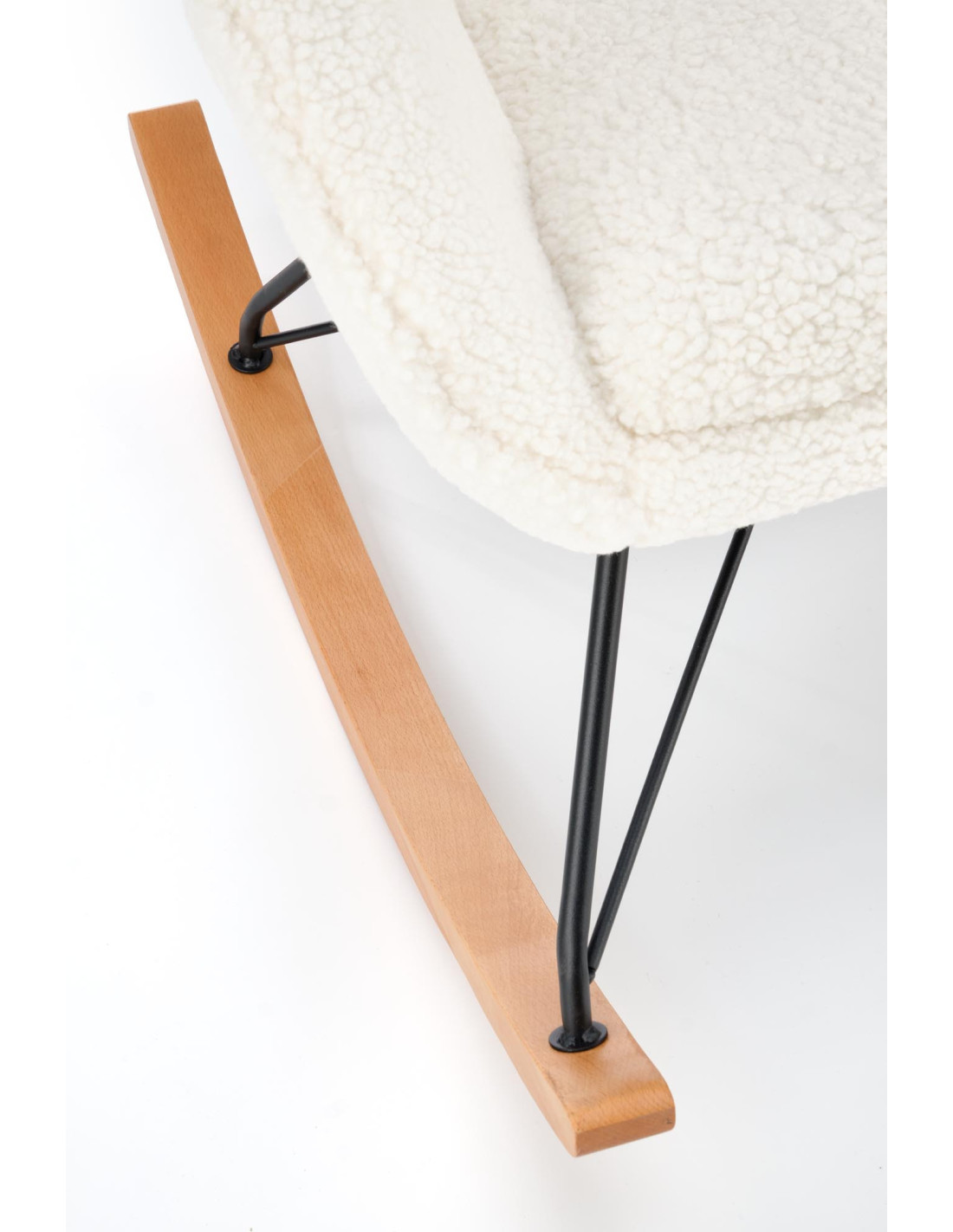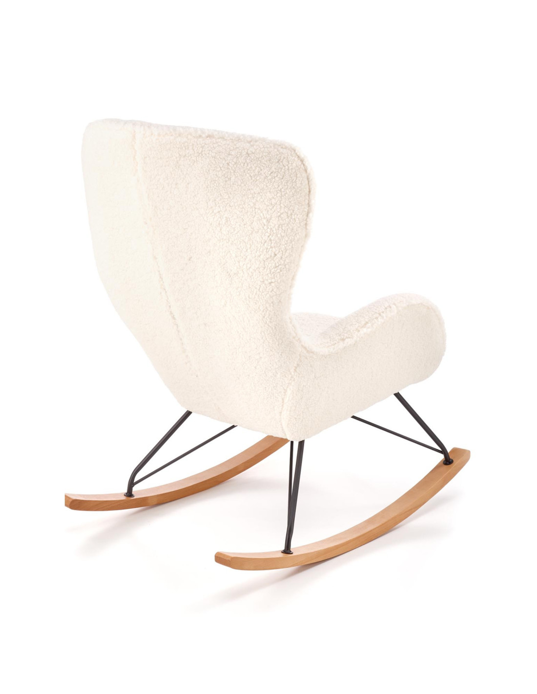 LIBERTO Fotel Bouclé Kremowy Bujany, Nogi Czarny/Naturalny - Klasa i Styl