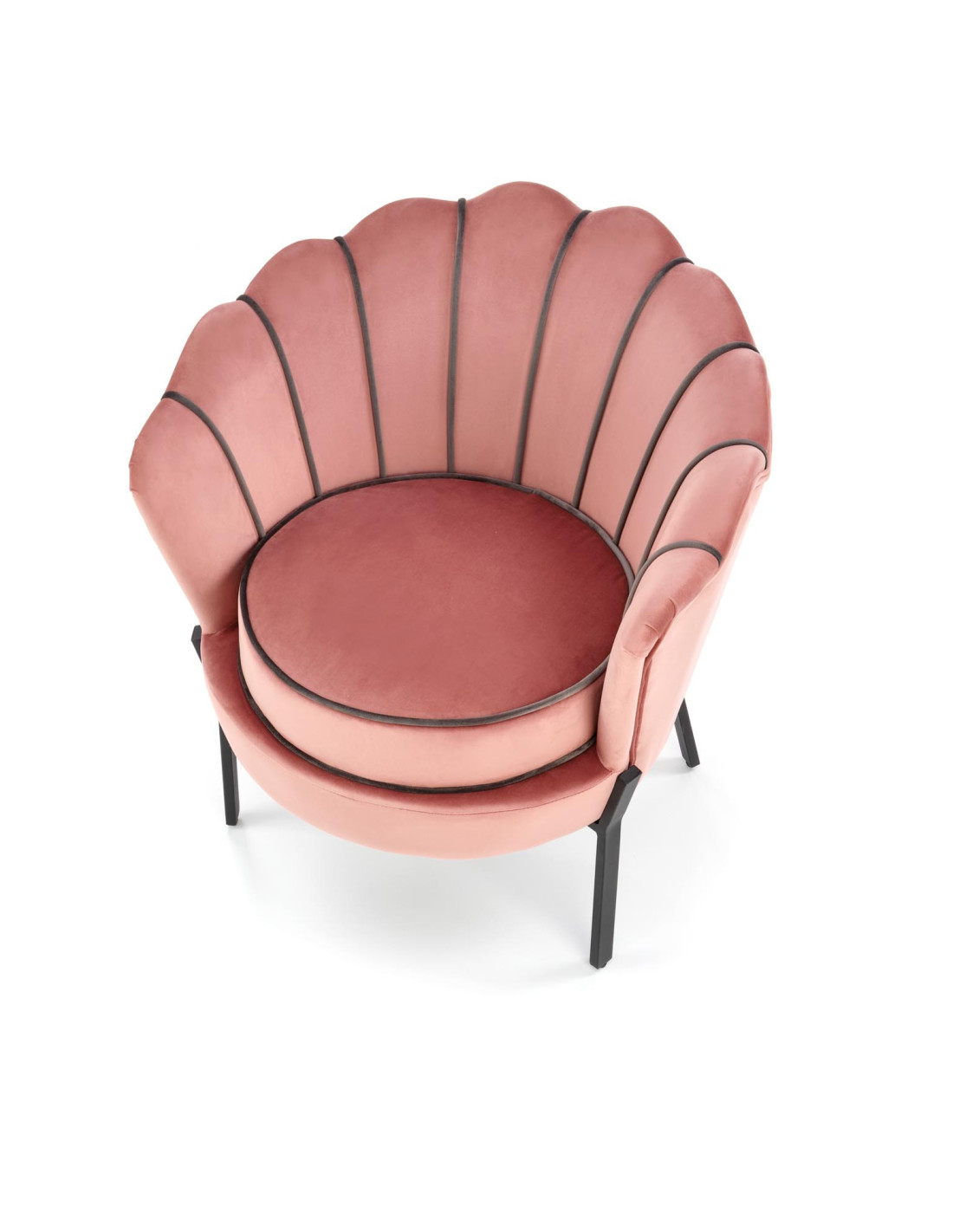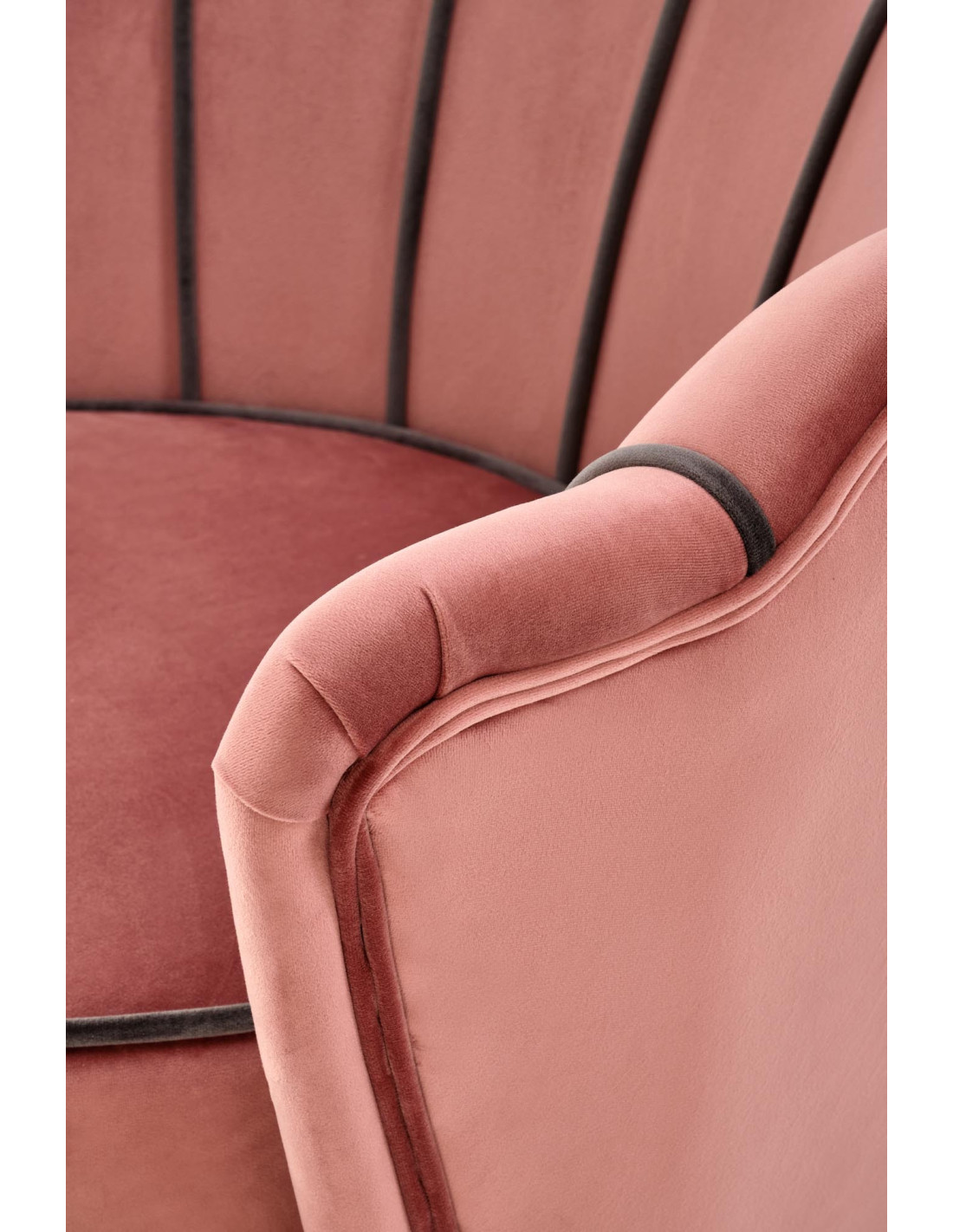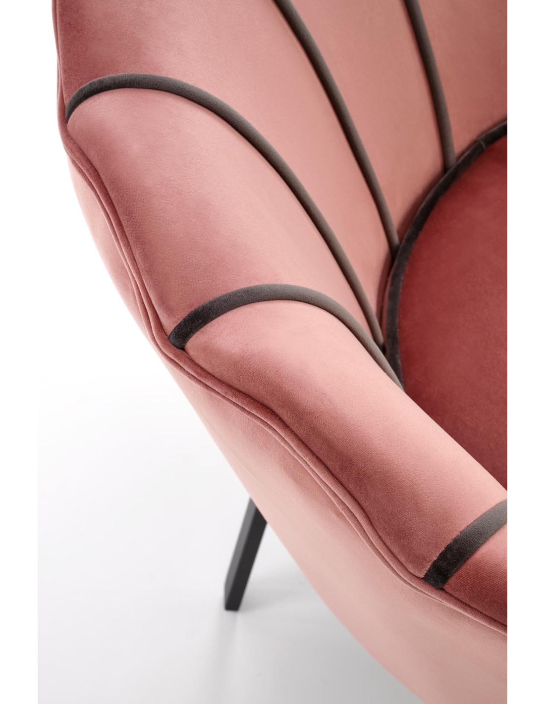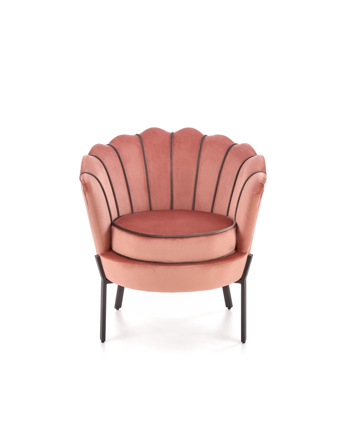 Wybierz fotel ANGELO, który przenosi komfort na zupełnie nowy poziom. Ten różowy fotel tapicerowany aksamitem (Bluvel 52) zachwyca zaokrąglonym kształtem z oparciem przypominającym muszlę, które jest pikowane i zdobione kontrastującymi, ciemniejszymi lamówkami. Dzięki cienkim, metalowym nogom w kolorze czarnym, fotel nie tylko przyciąga wzrok, ale również wprowadza elegancję do każdego wnętrza.