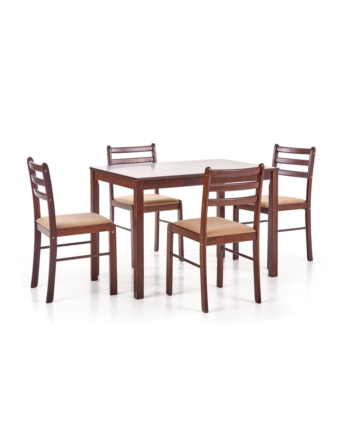 Przedstawiamy Ci zestaw mebli NEW_STARTER_2, który łączy elegancki design z funkcjonalnością. W skład zestawu wchodzi prostokątny stół oraz cztery krzesła, które wprowadzą do Twojego wnętrza harmonię i klasykę. Blat stołu wykonany z MDF z naturalną okleiną doskonale komponuje się z solidnymi, drewnianymi nogami w kolorze espresso, co nadaje całości wyjątkowego charakteru.