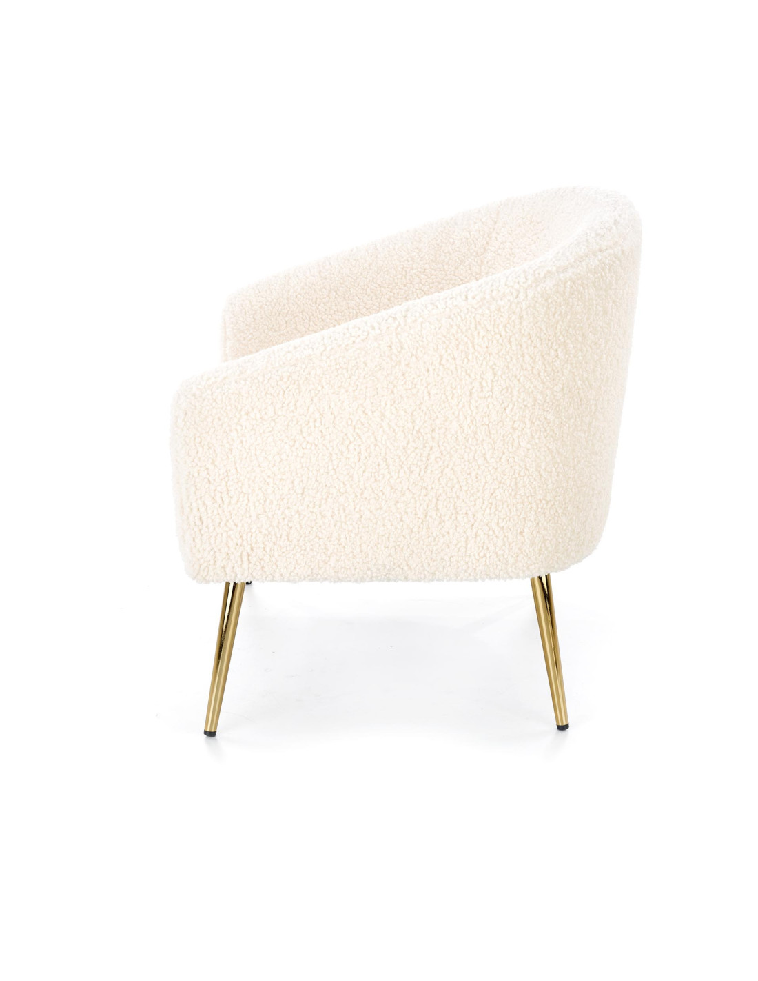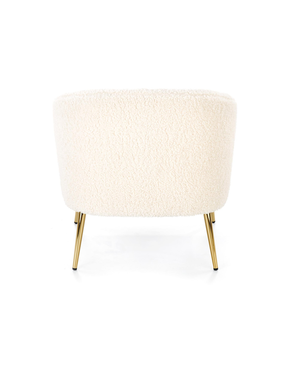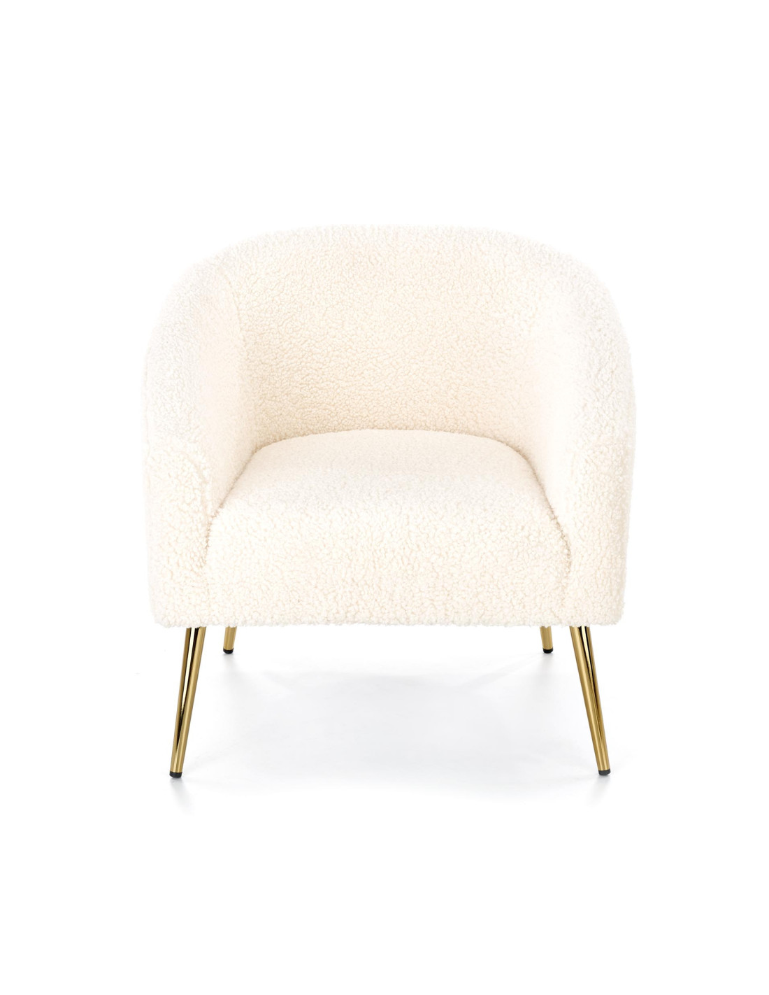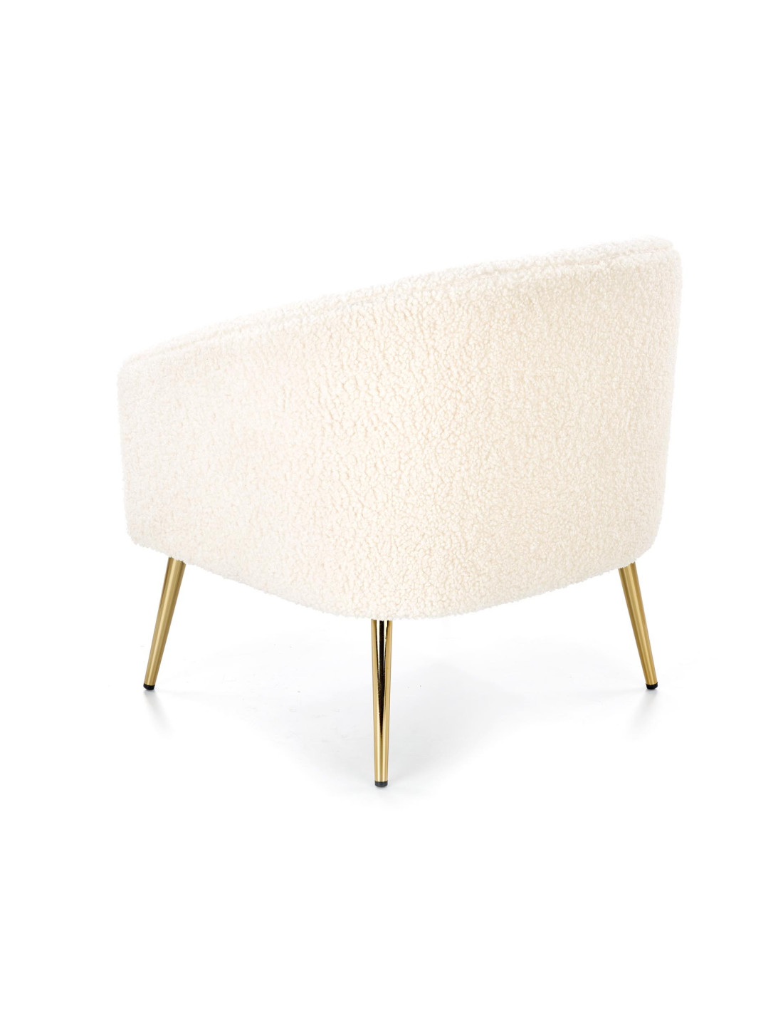 Fotel GRIFON wykonany jest z tkaniny bouclé oraz stalowych nóg w kolorze złotym.