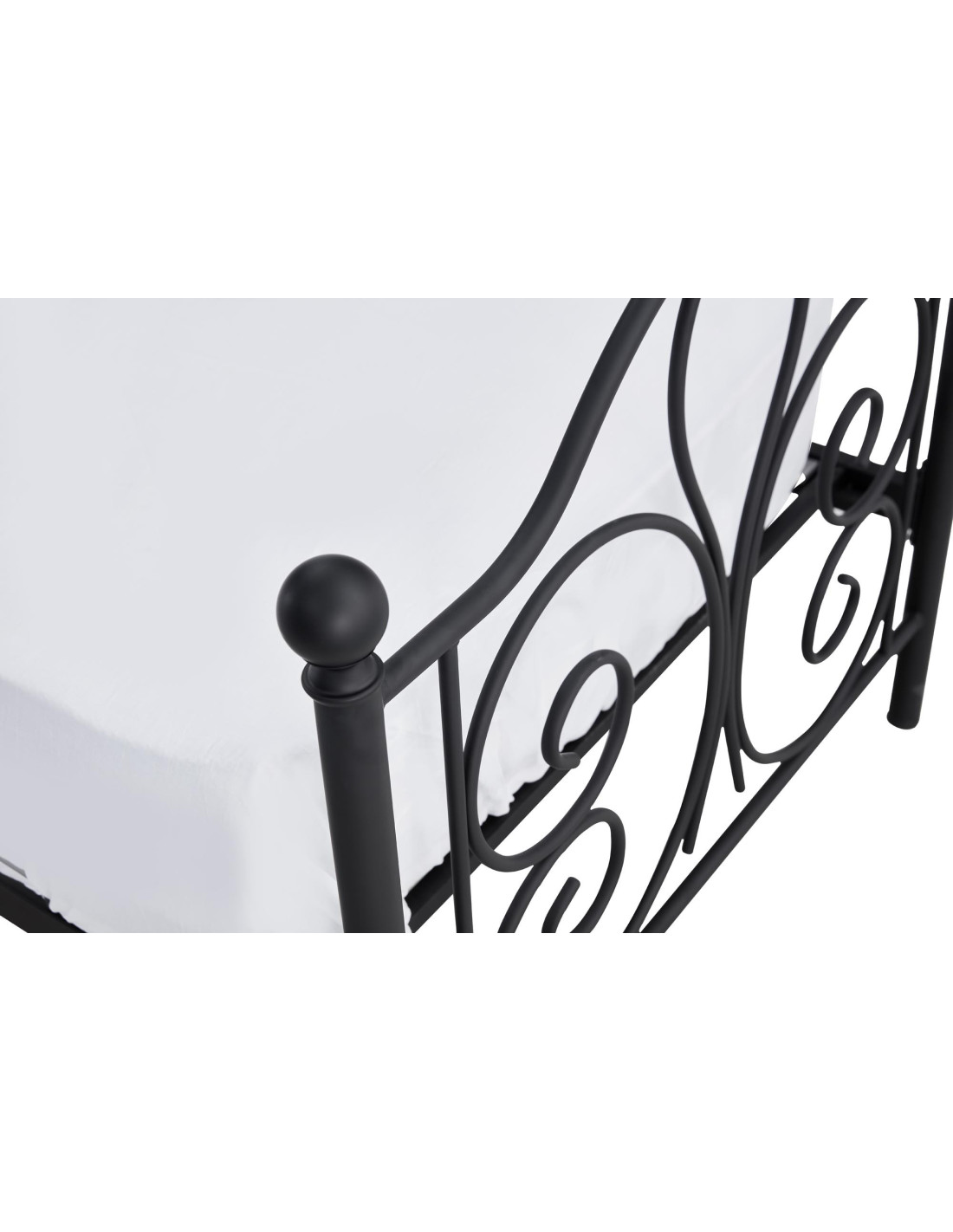 - ✅ Ozdobne metalowe zdobienia: Finezyjne, zaokrąglone wzory na zagłówku i zanóżku nadają łóżku wyjątkowego charakteru.