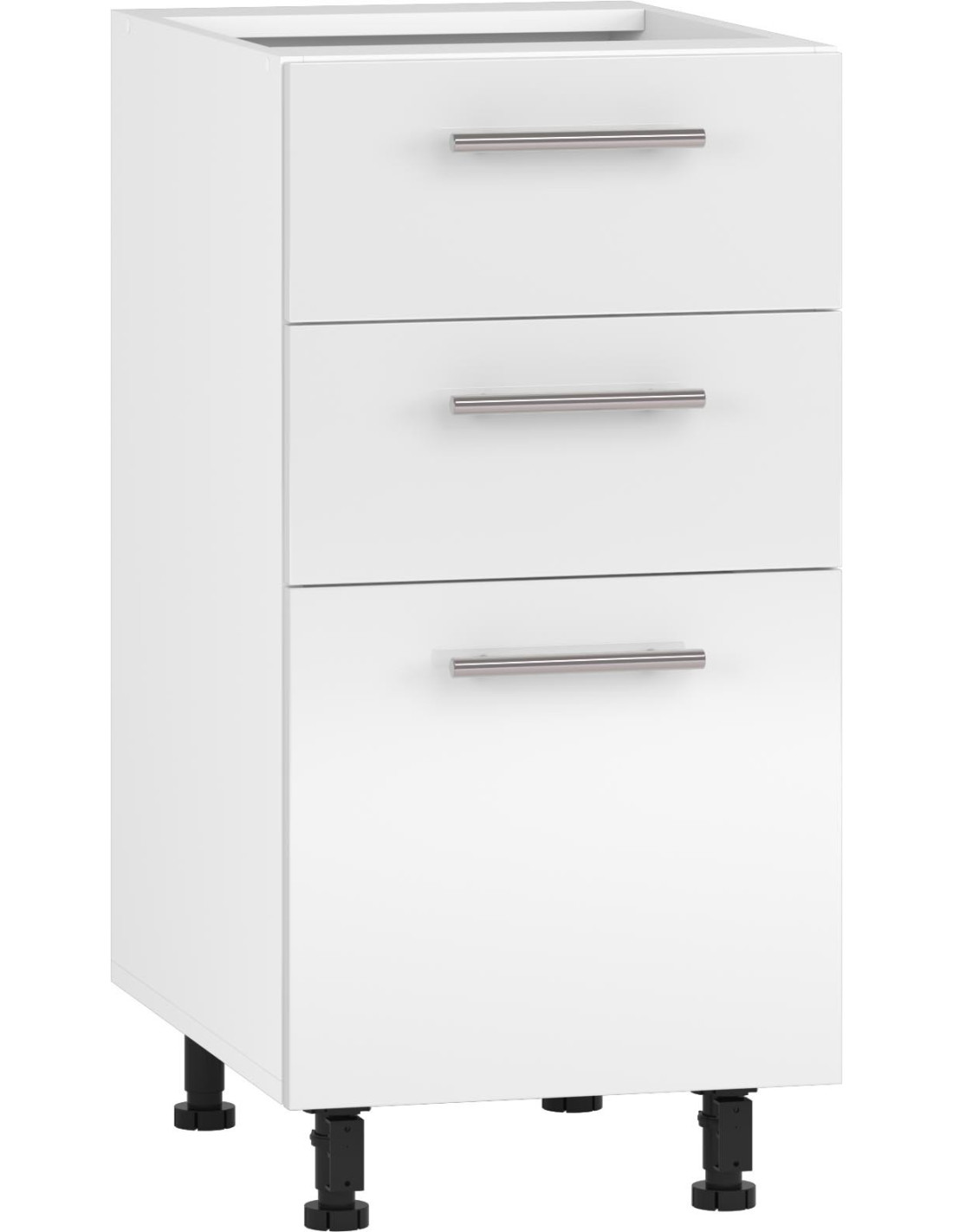 VENTO D3S 40 cm Szafka z 3 Szufladami Biały/Biały Połysk | Nowoczesny Element w Twoim Wnętrzu