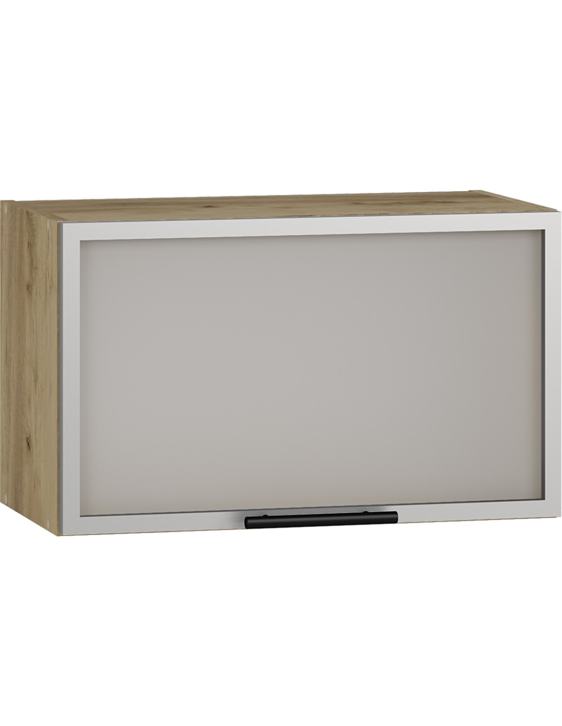 Szafka kuchenna górna o szerokości 60 cm to wyrafinowane rozwiązanie, które odmieni Twoją kuchnię! Szafka VENTO łączy w sobie nowoczesny design z praktycznością. Jej front z matowym szkłem otoczonym aluminiową ramą oraz prostokątna forma doskonale wpisują się w loftową estetykę, tworząc harmonijną przestrzeń. Korpus wykonany z płyty meblowej laminowanej w kolorze dąb craft dodaje świeżości i elegancji.