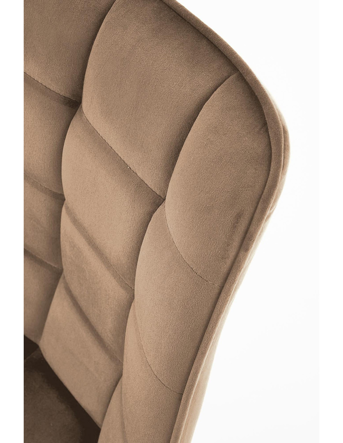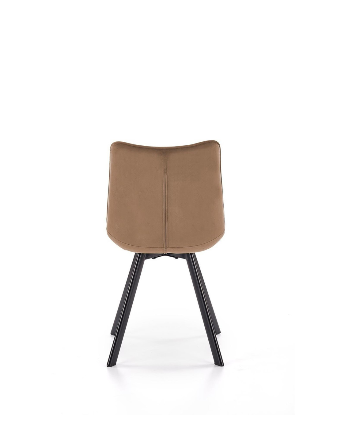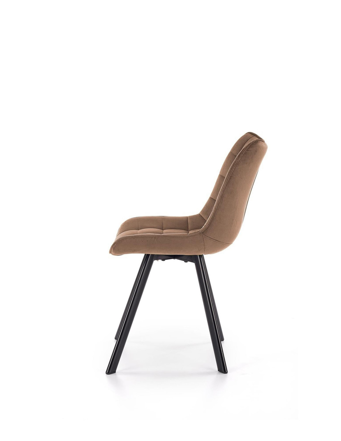 Zainspiruj się wyjątkowym designem krzesła K332, które harmonijnie łączy elegancję i praktyczność. To beżowe krzesło wykonane z weluru Bluvel 28 zachwyca swoim pikowanym wzorem na oparciu oraz siedzisku, nadając mu niepowtarzalny styl. Jego zaokrąglone krawędzie oraz czarne, metalowe nogi rozstawione pod kątem zapewniają stabilność oraz nowoczesny wygląd, co sprawia, że krzesło idealnie wpasuje się w każde wnętrze.