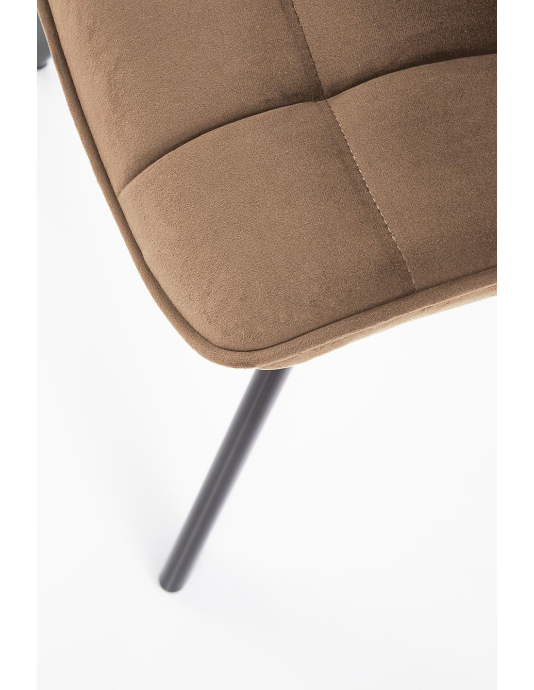 Krzesło wykonane jest z tkaniny velvet oraz stali malowanej proszkowo, co zapewnia mu estetyczny wygląd i komfort użytkowania.