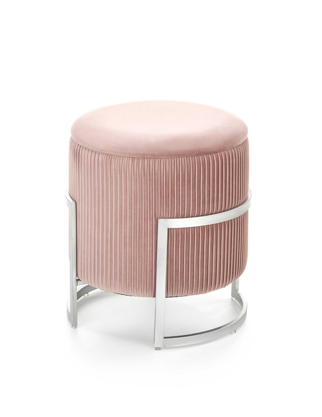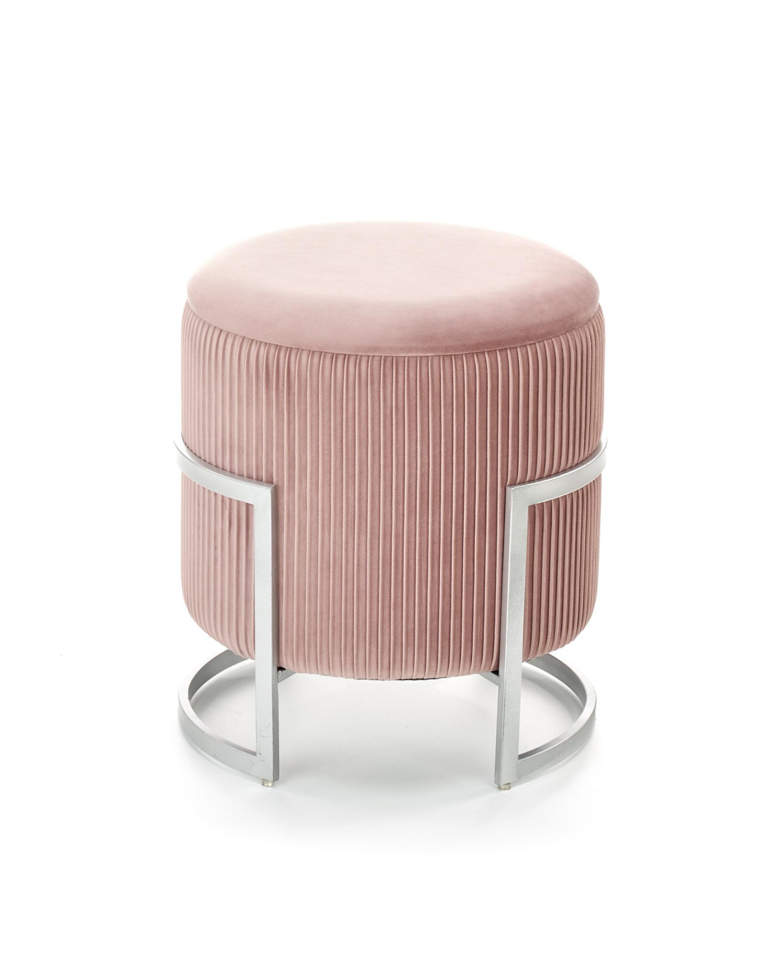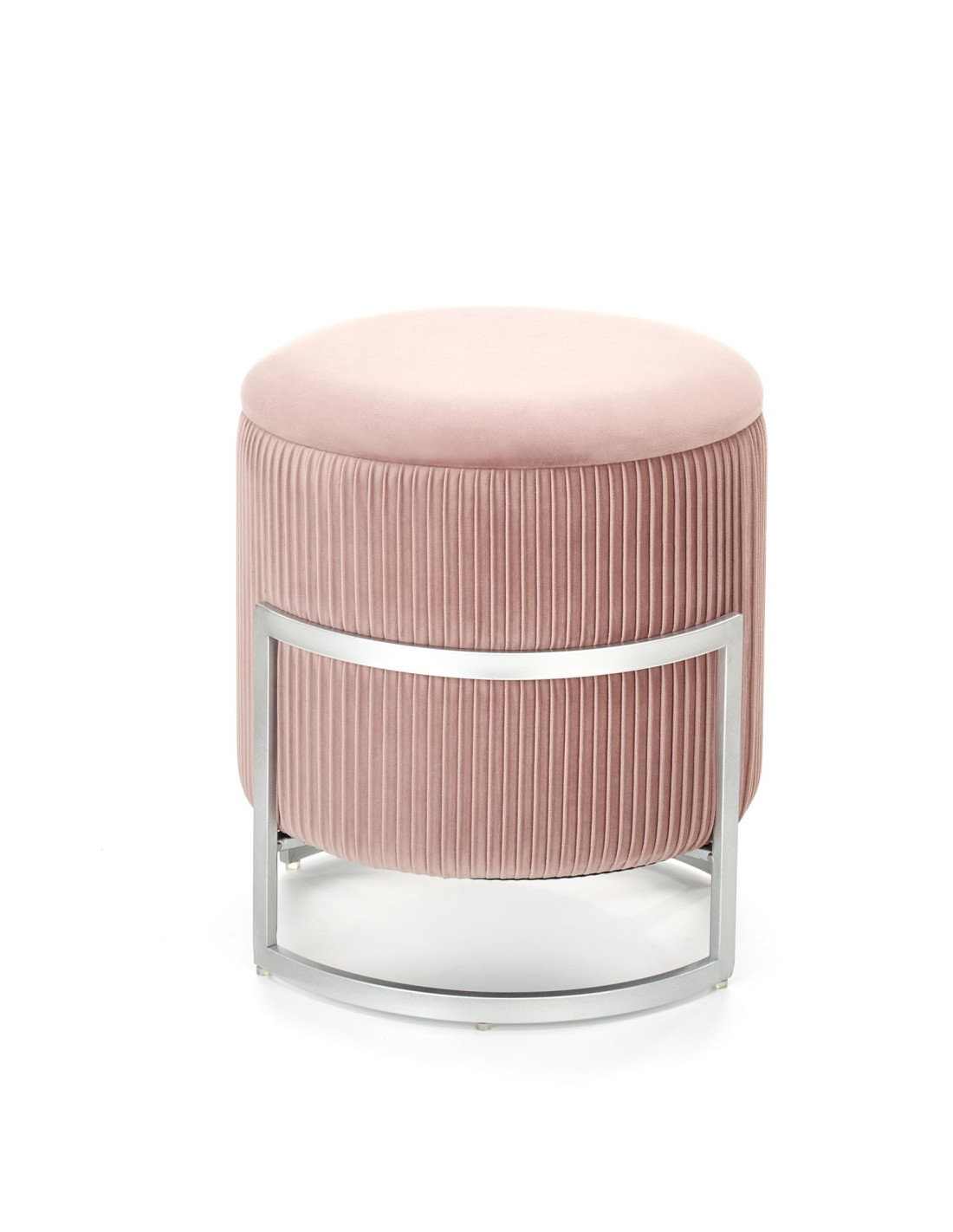 Dodaj odrobinę luksusu do swojego wnętrza z pufą CRICKET, która zachwyca swoim nowoczesnym designem i praktycznością. Okrągły kształt oraz gładkie siedzisko sprawiają, że jest to nie tylko funkcjonalny mebel, ale również stylowy dodatek do każdego pomieszczenia. Plisowane boki i metalowa, srebrna rama o geometrycznym kształcie dodają jej elegancji, a jasnoróżowy kolor wprowadza subtelny akcent glamour.