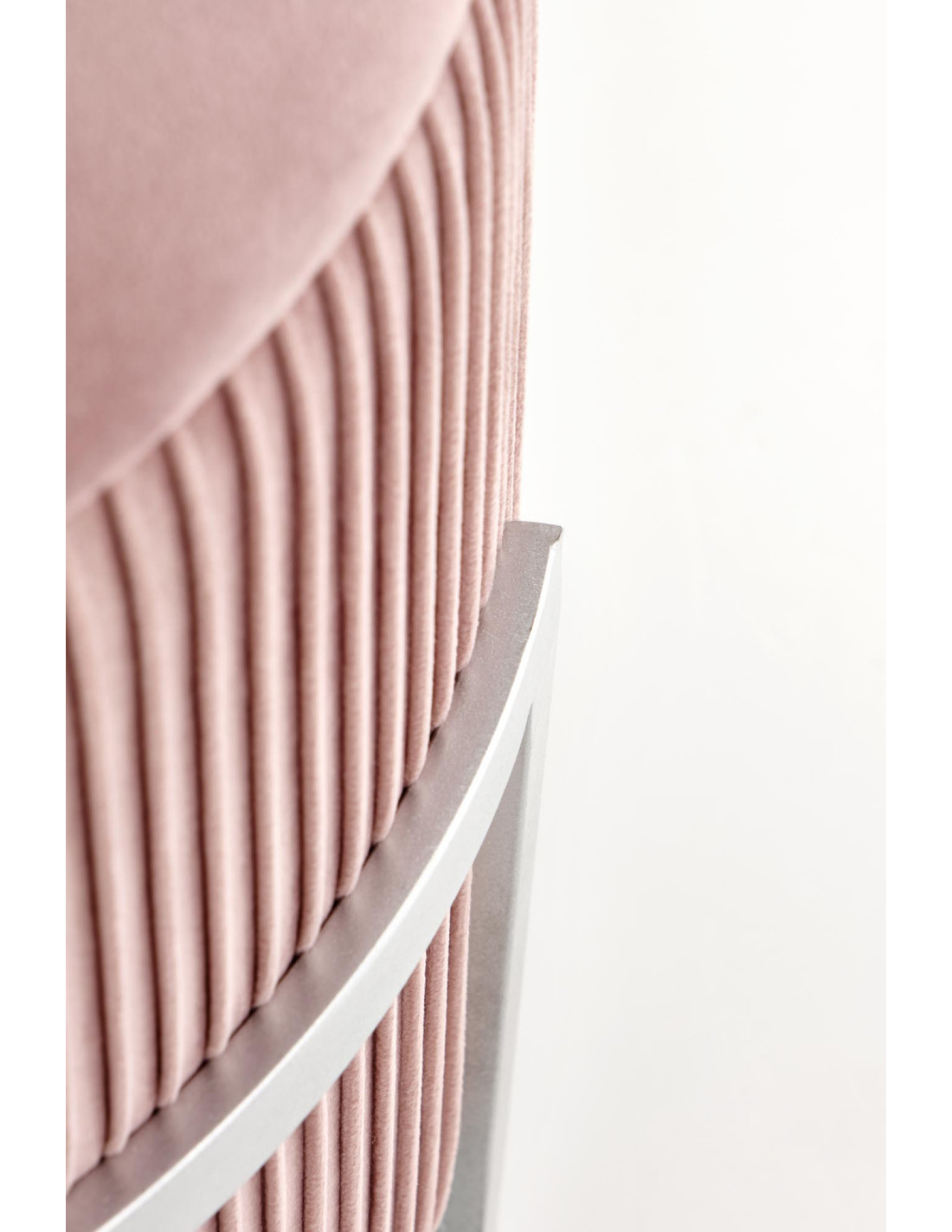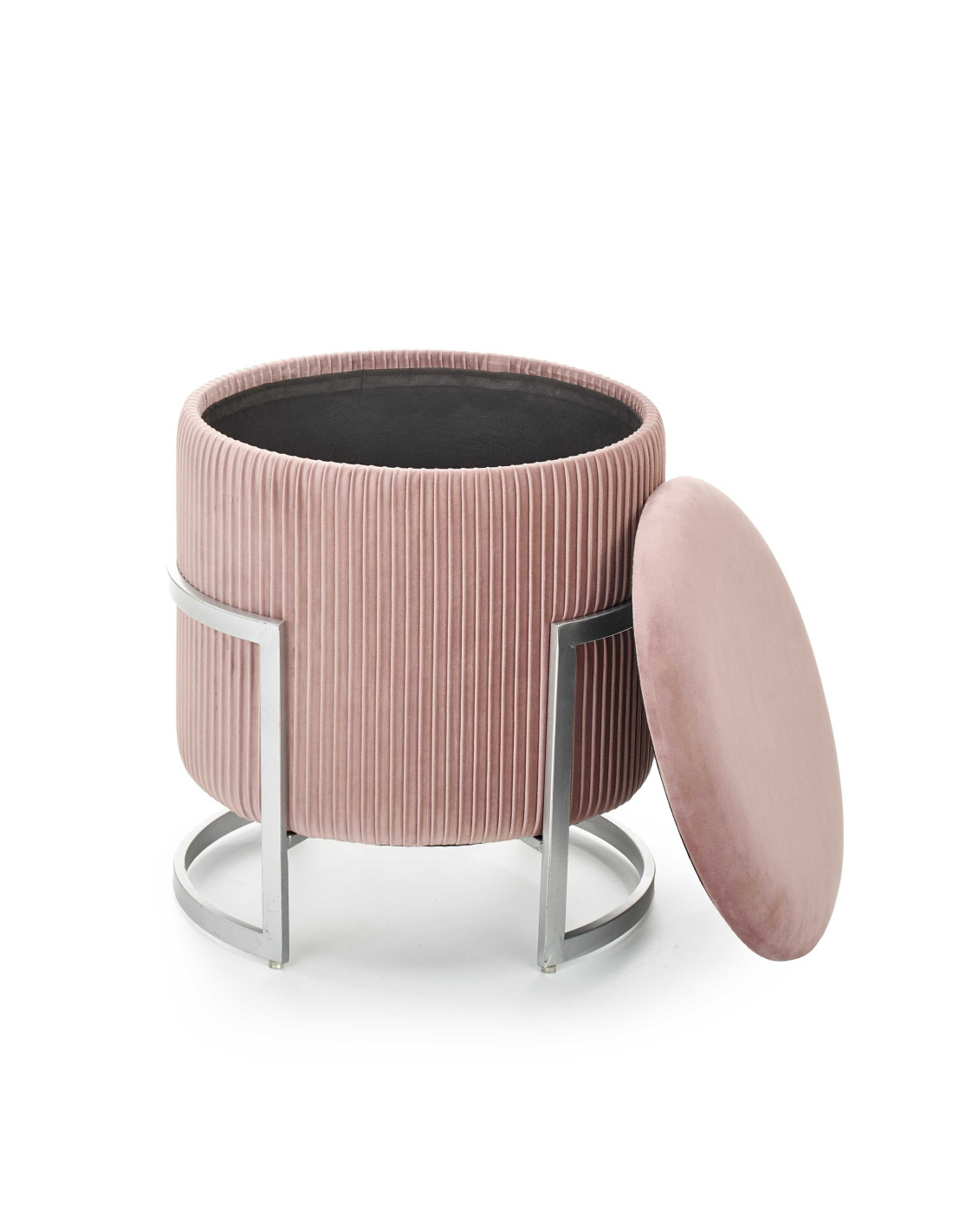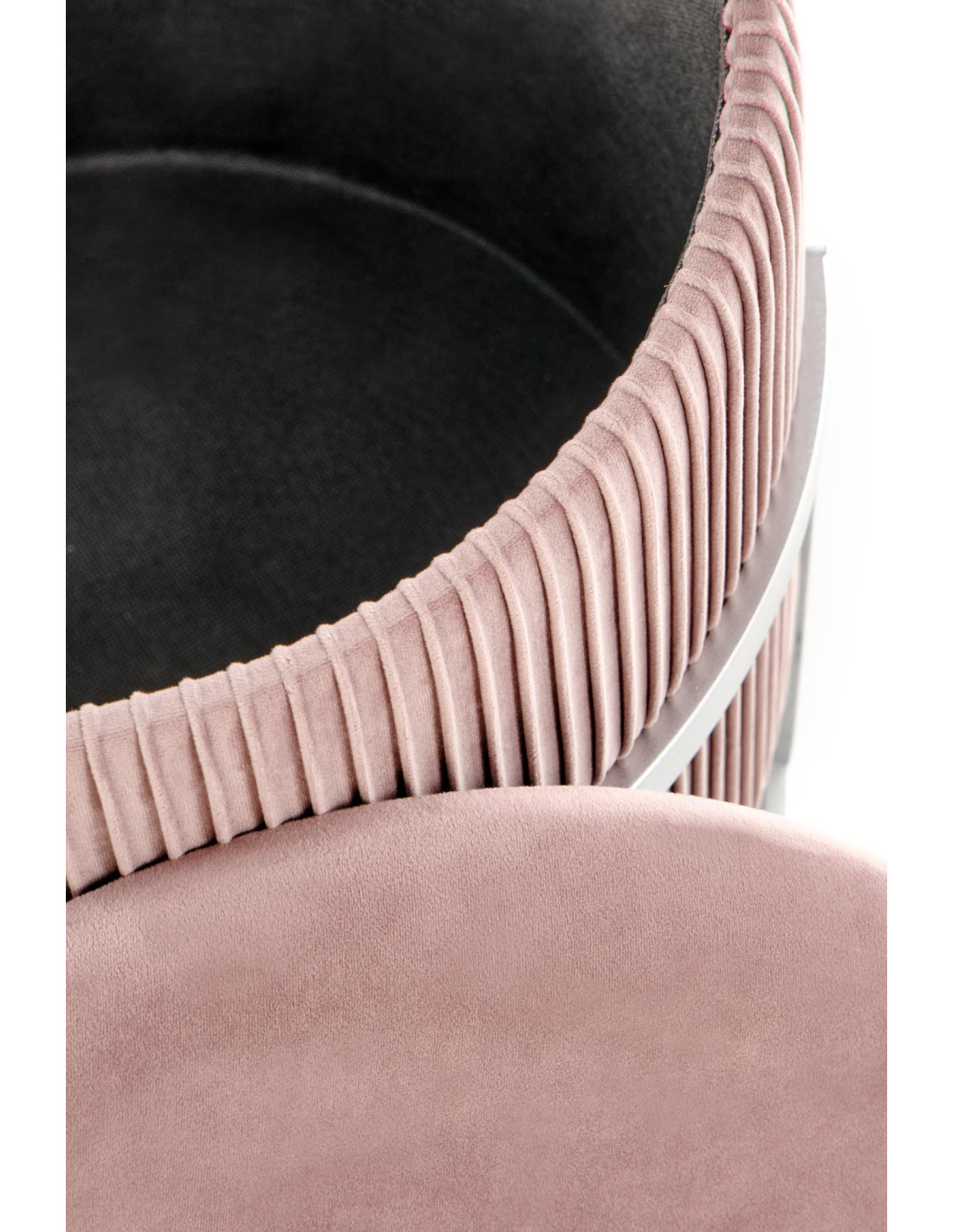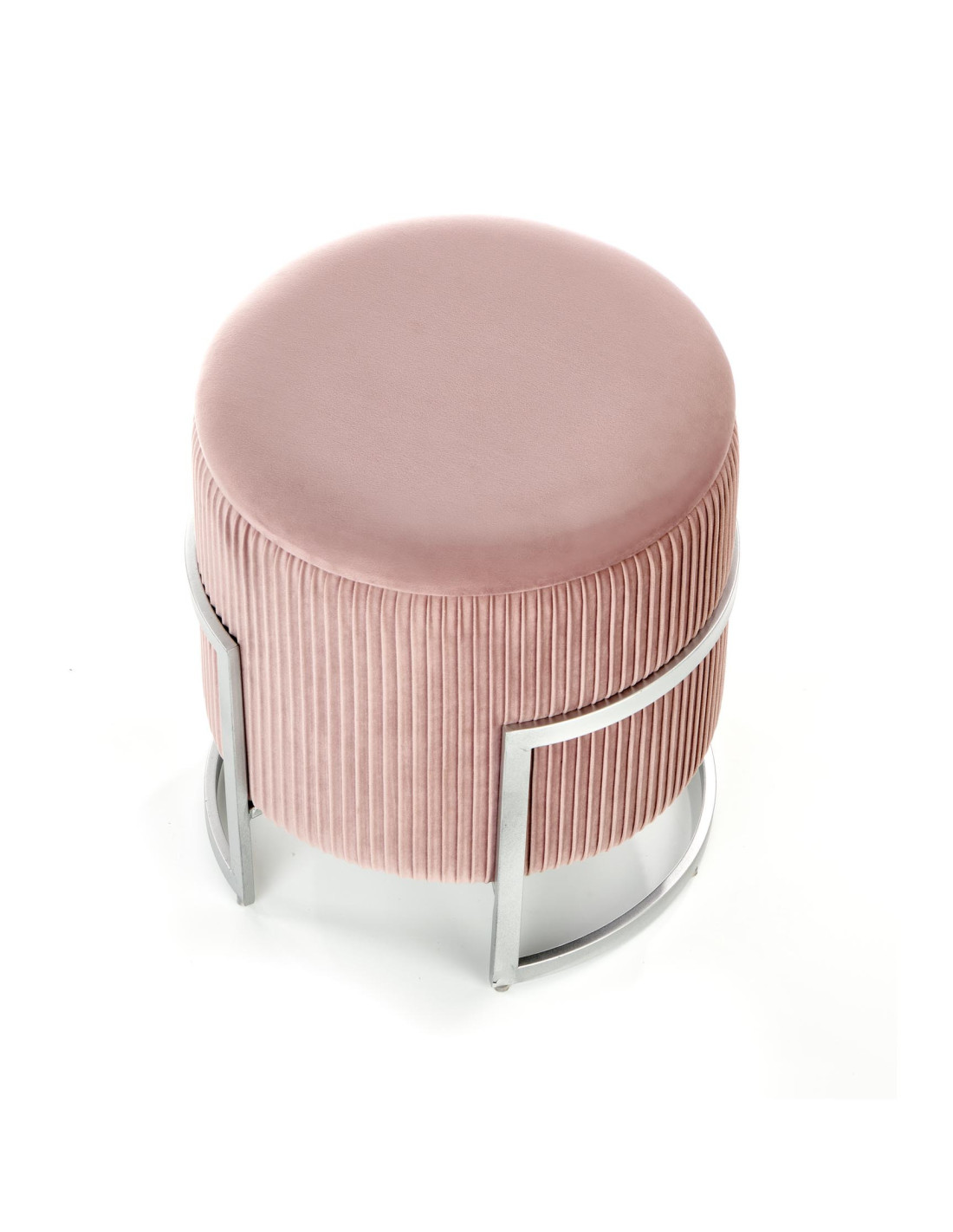 Dodaj odrobinę luksusu do swojego wnętrza z pufą CRICKET, która zachwyca swoim nowoczesnym designem i praktycznością. Okrągły kształt oraz gładkie siedzisko sprawiają, że jest to nie tylko funkcjonalny mebel, ale również stylowy dodatek do każdego pomieszczenia. Plisowane boki i metalowa, srebrna rama o geometrycznym kształcie dodają jej elegancji, a jasnoróżowy kolor wprowadza subtelny akcent glamour.