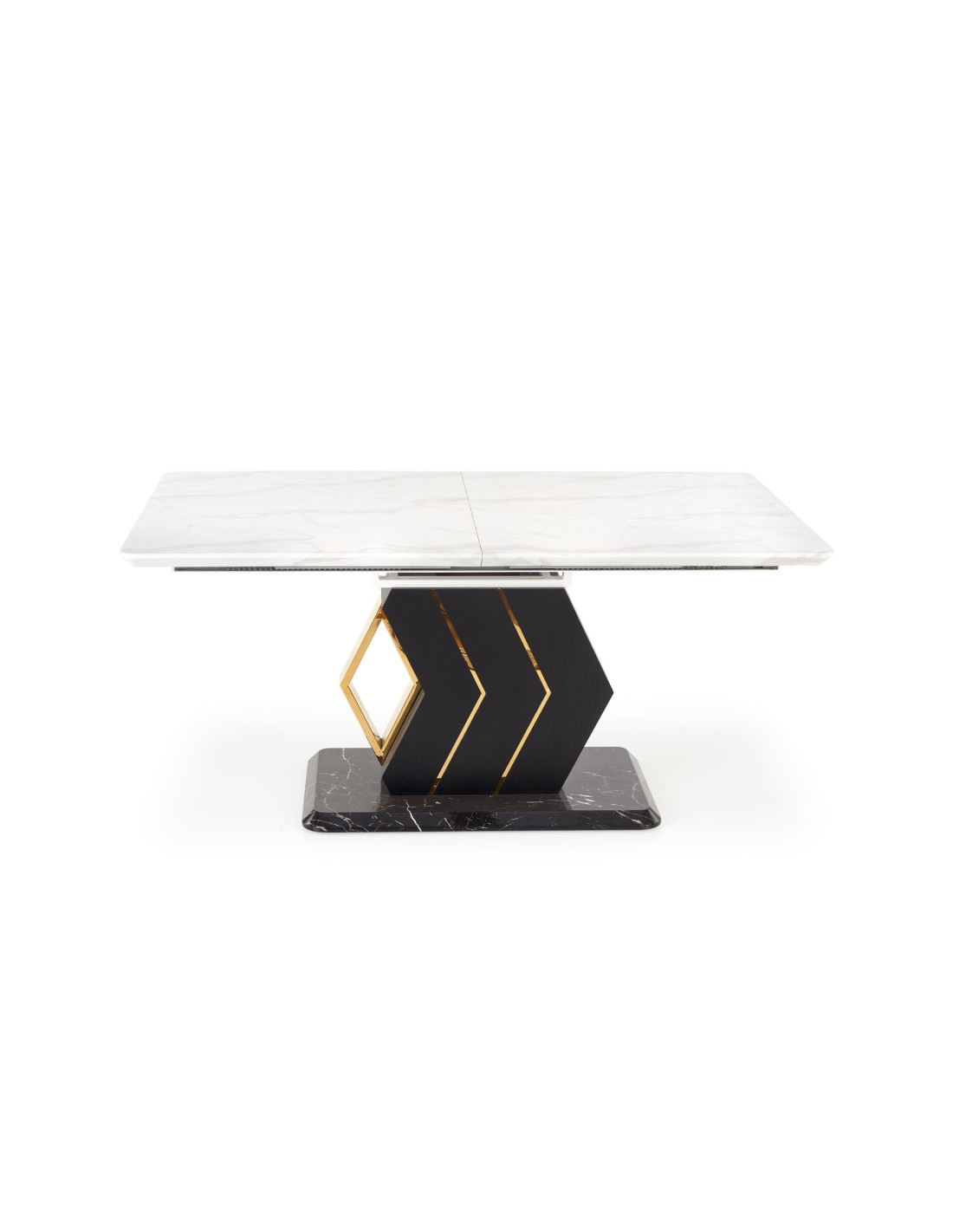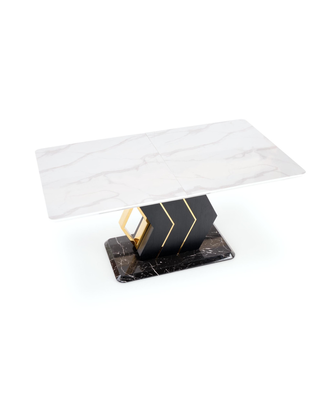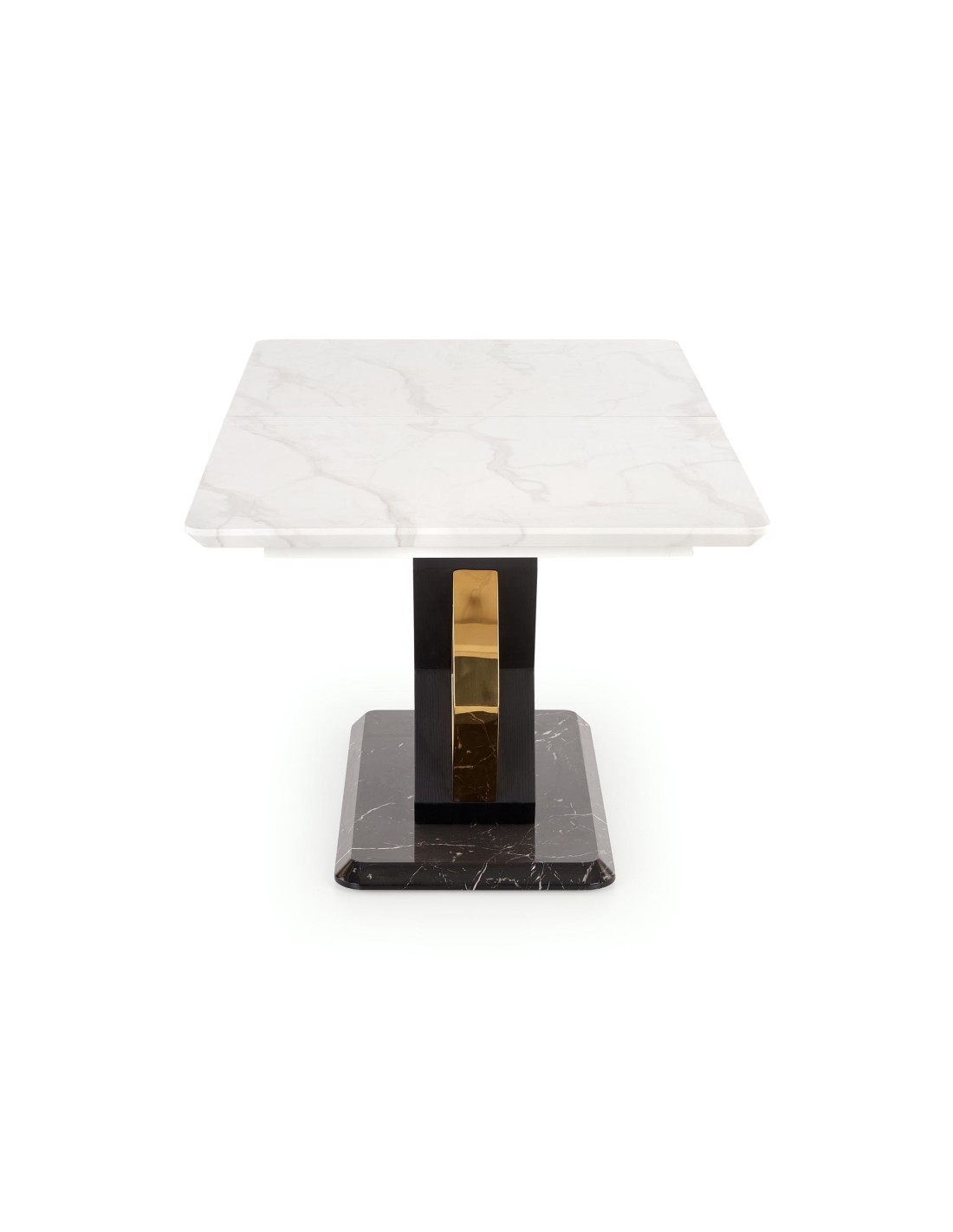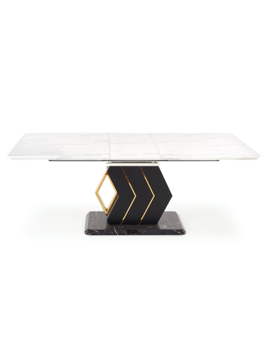 VINCENZO Stół Rozkładany 160-200cm Biały Marmur/Czarny/Złote Akcenty