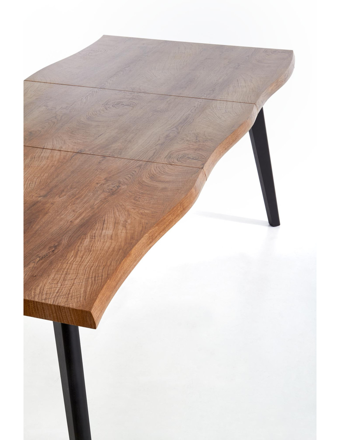 Poznaj rozszerzany stół DICKSON, który łączy w sobie nowoczesny design z funkcjonalnością! Blat w kolorze naturalnego dębu, z falowanymi krawędziami, przyciąga wzrok i nadaje Twojemu wnętrzu unikalny charakter. Dzięki starannie dobranym materiałom, DICKSON to mebel, który wzbogaci każdą jadalnię o odrobinę elegancji.