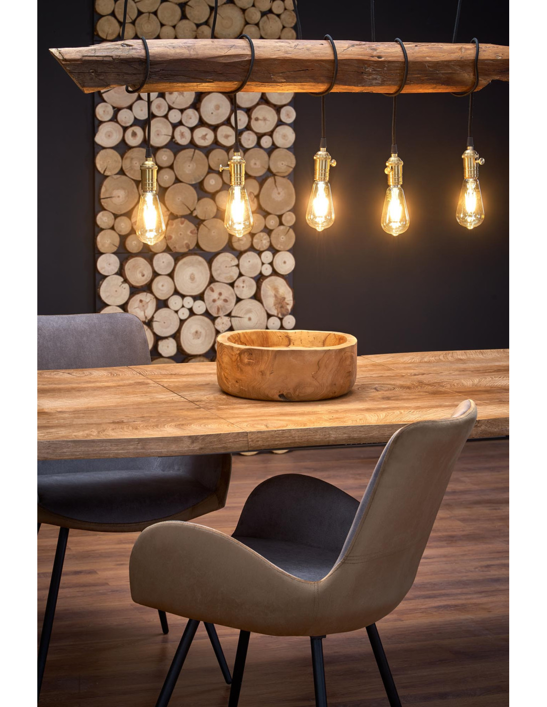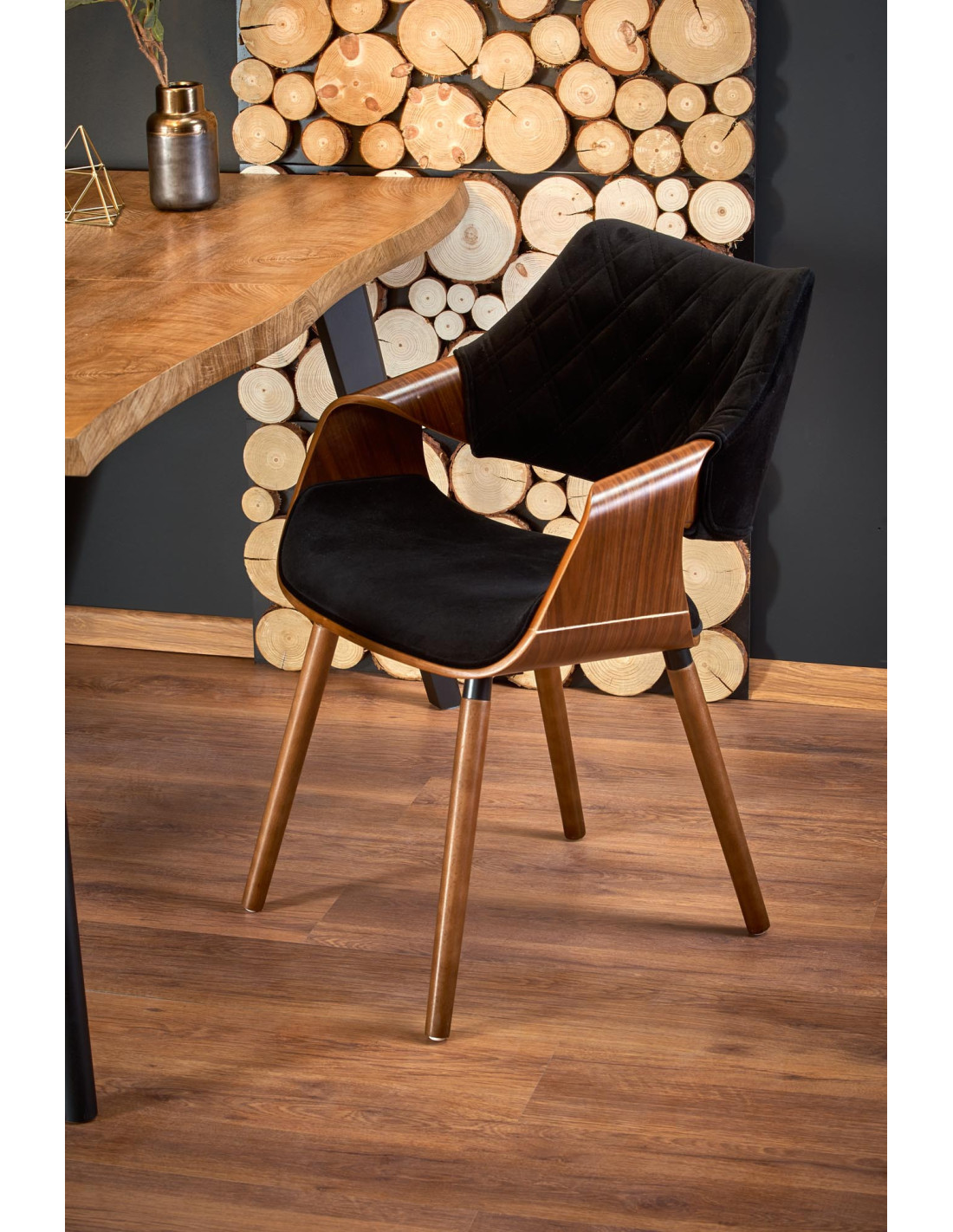 Stół DICKSON wyróżnia się falowanym blatem z naturalnym usłojeniem oraz nowoczesnymi, zwężanymi nogami, co sprawia, że jest to mebel o wyjątkowym stylu.